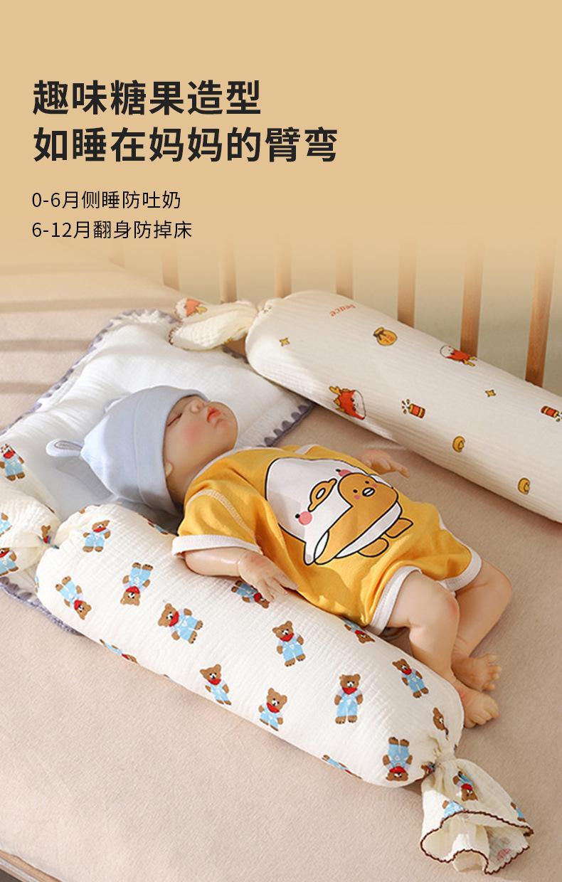 Almohada de Caramelo Almohada de Apoyo para Dormir de Lado para Bebé Almohada Reconfortante para Bebé Recién Nacido Almohada para Ayudar a Dormir Removible Lavable Anti-Sobresalto Almohada Larga