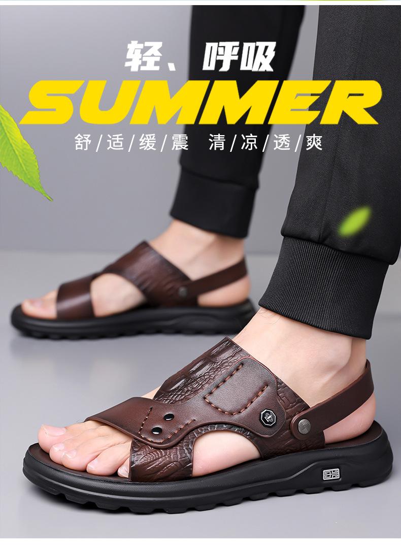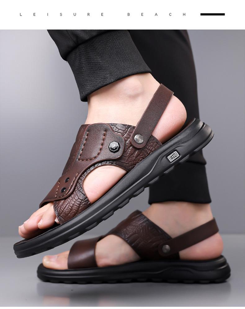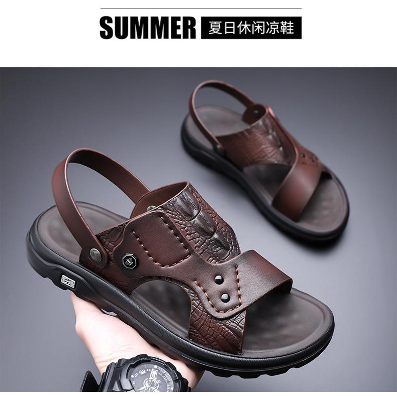 Sandalias para Hombre 2025 Nuevo Estilo Cuero Genuino Piel de Vaca Casual Antideslizantes Sandalias para Hombre Suela Suave Zapatos para Conducir Playa