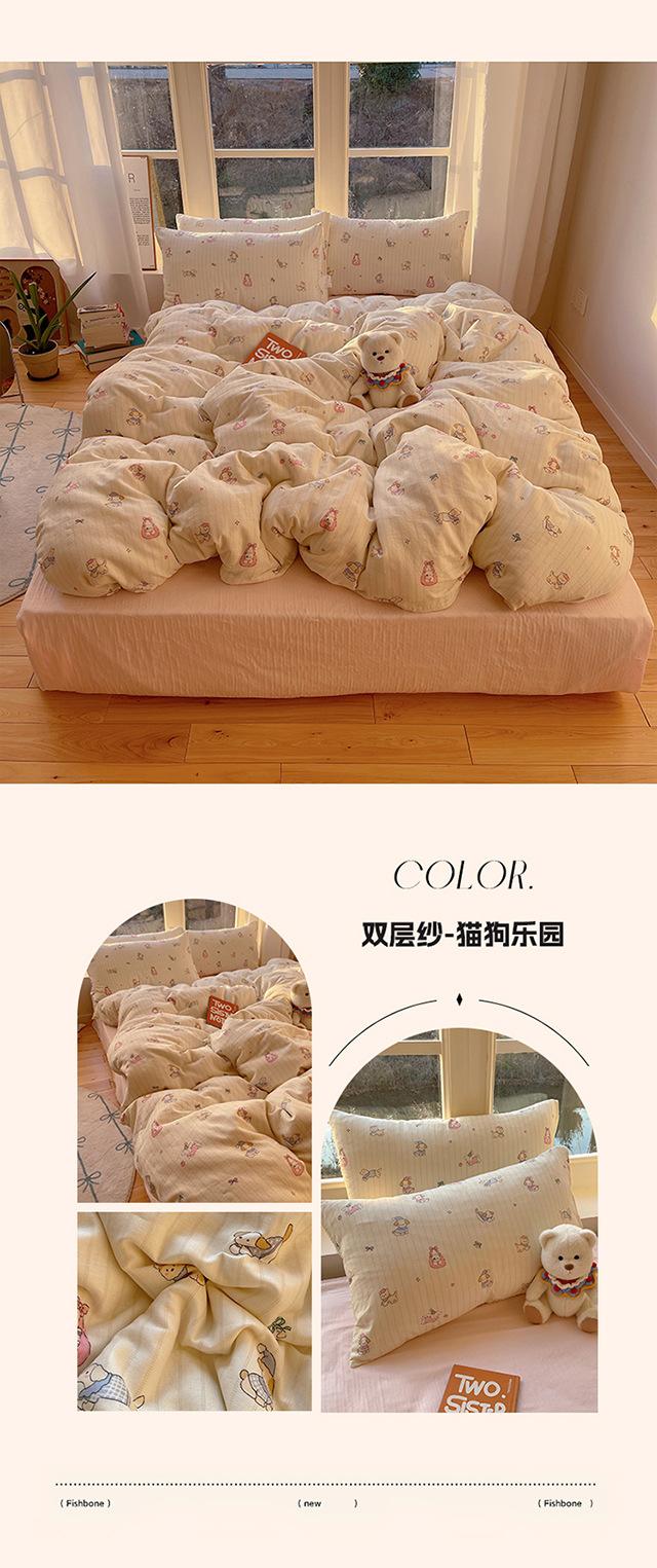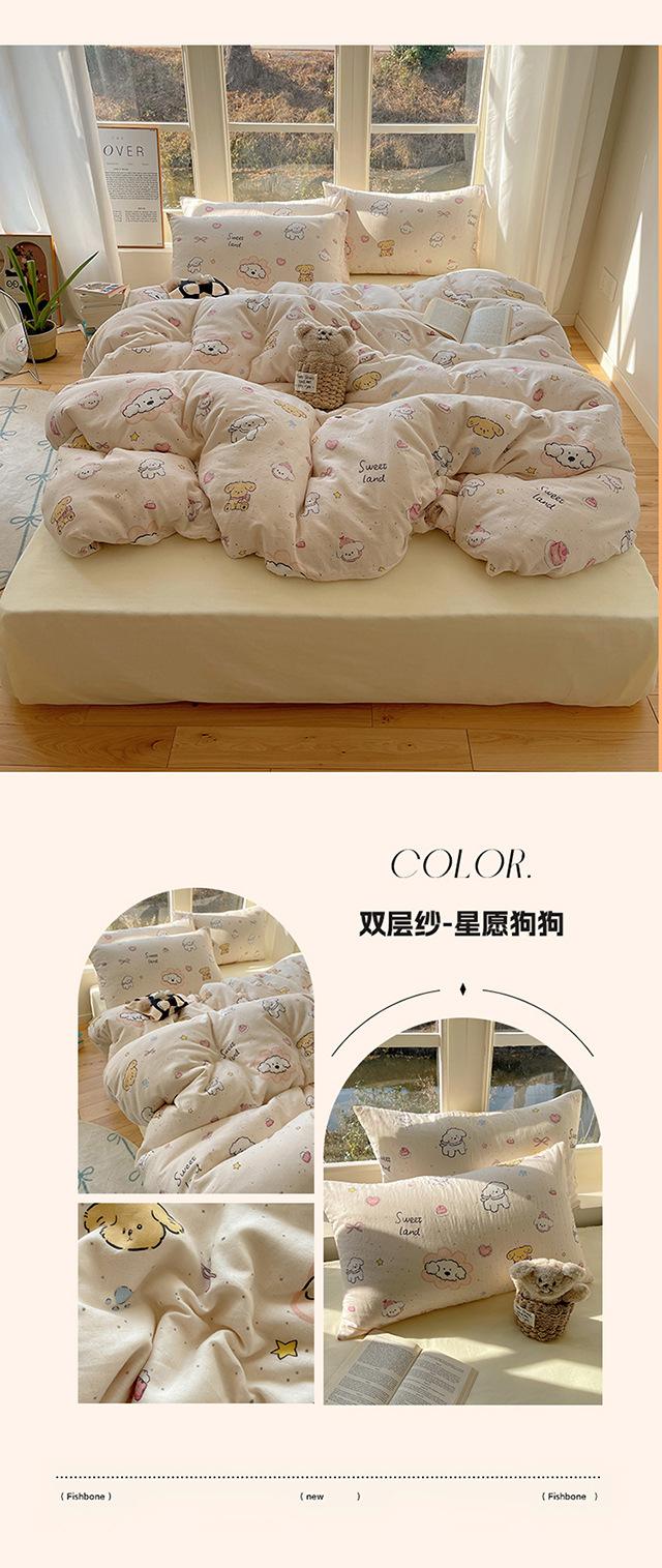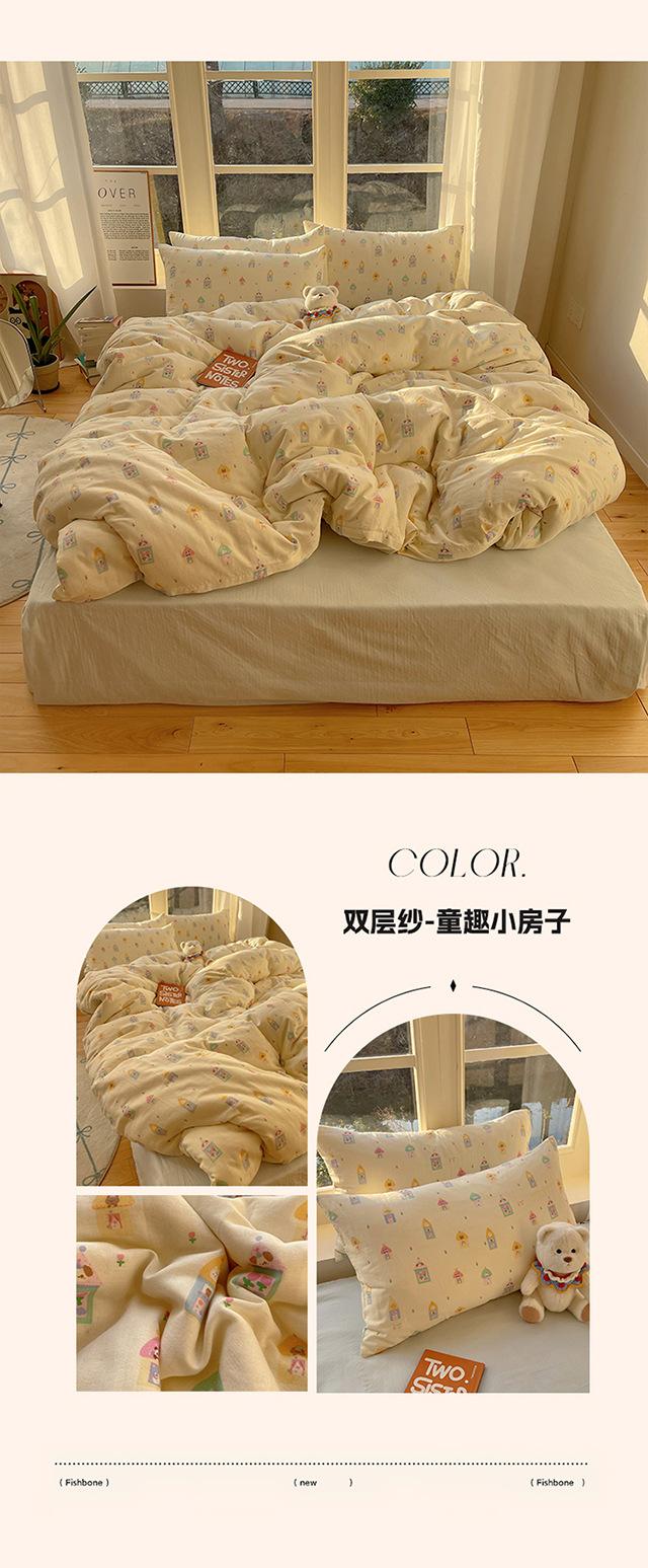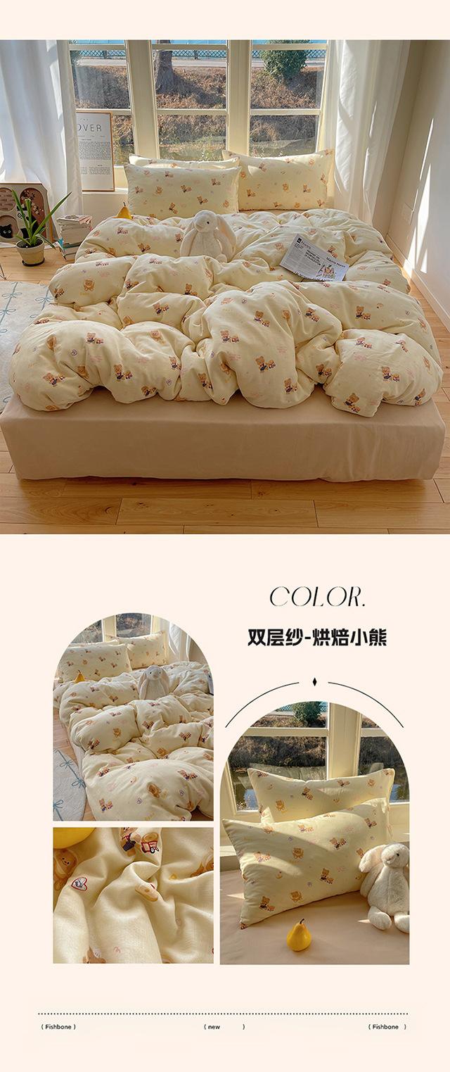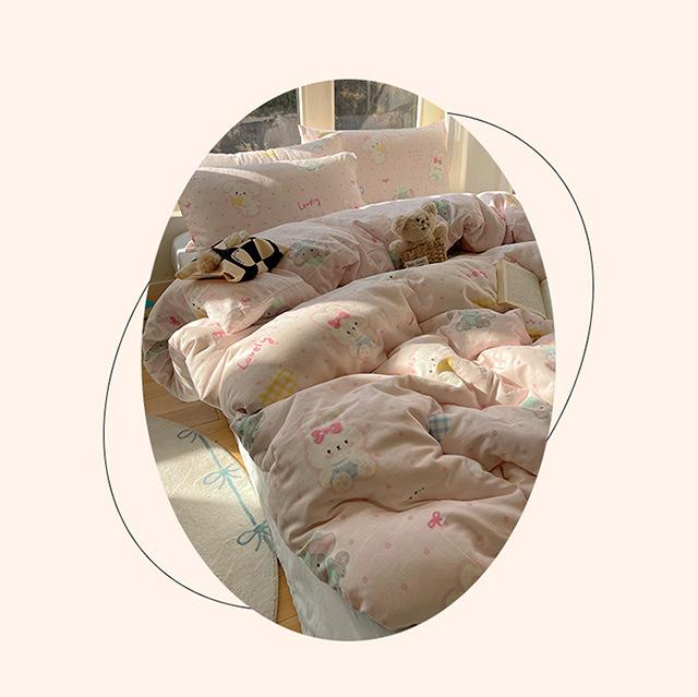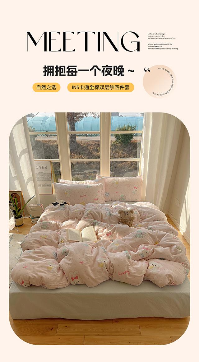 Categoría a Grado Materno e Infantil Algodón Puro Hilo de Doble Capa Juego de Cuatro Piezas Lindo Ins Dibujos Animados Algodón Funda Nórdica Sábanas Sábanas de Estudiante de Dormitorio