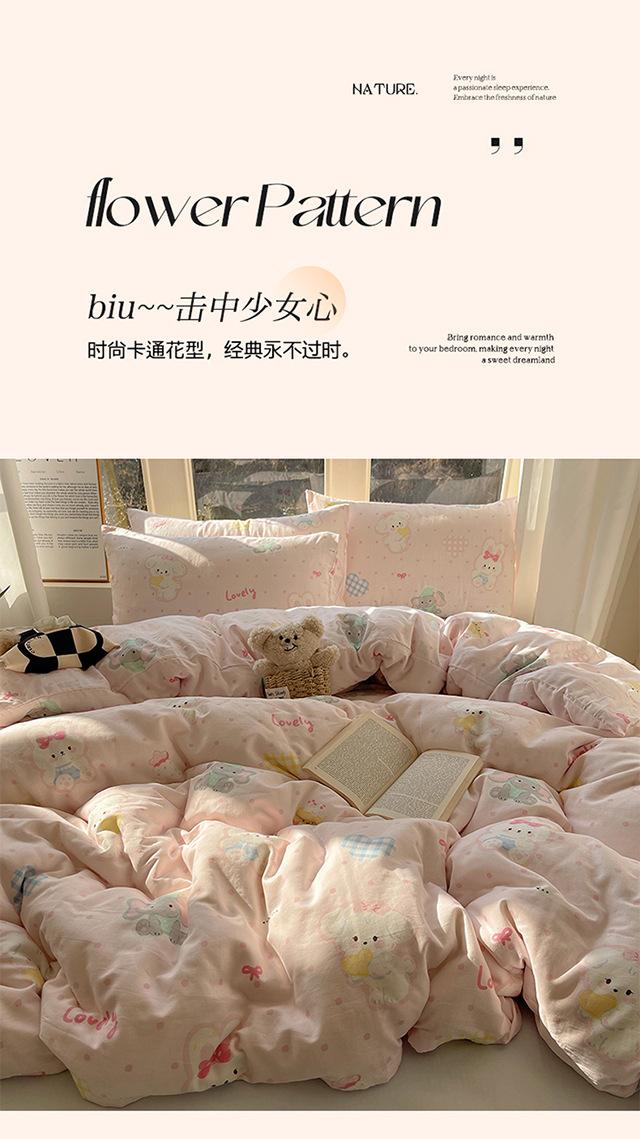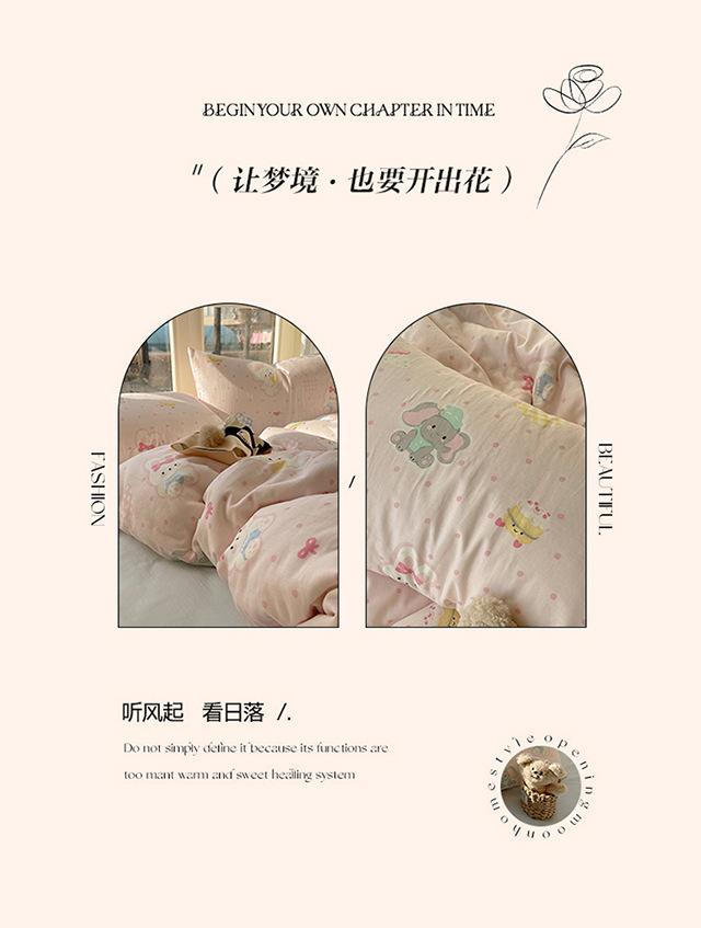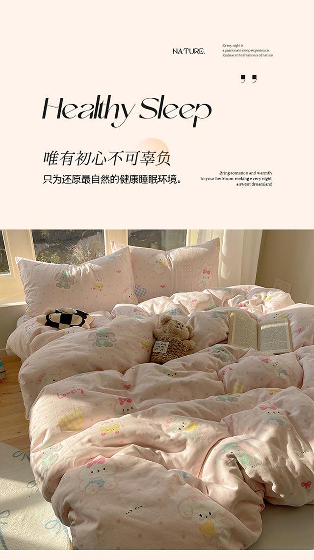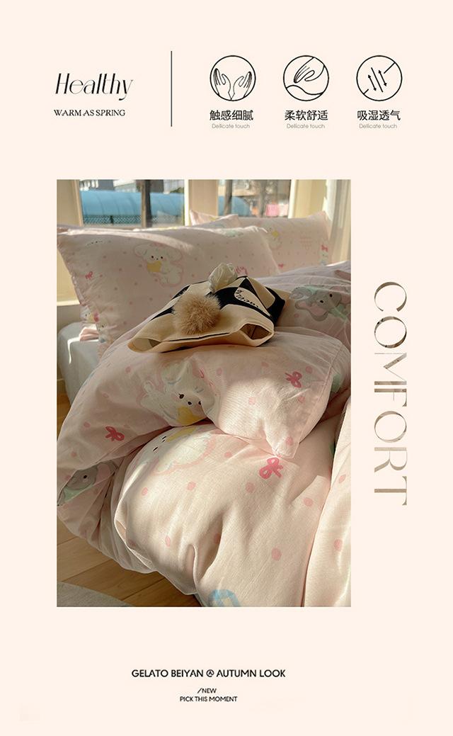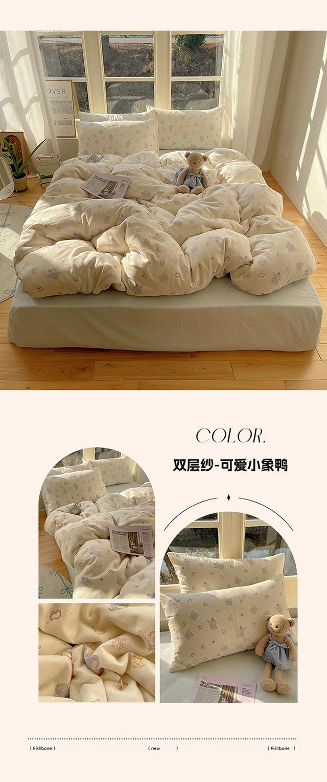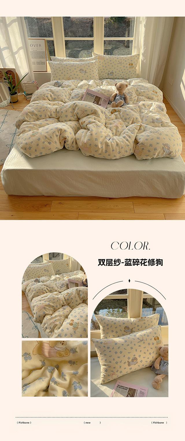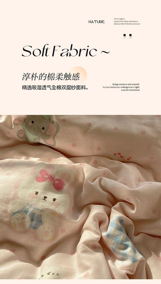 Categoría a Grado Materno e Infantil Algodón Puro Hilo de Doble Capa Juego de Cuatro Piezas Lindo Ins Dibujos Animados Algodón Funda Nórdica Sábanas Sábanas de Estudiante de Dormitorio