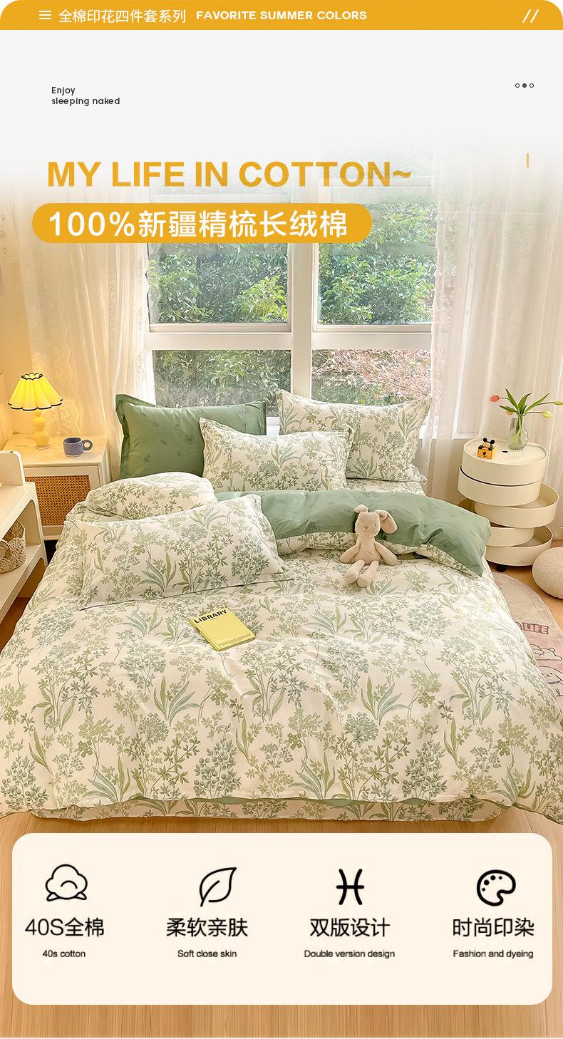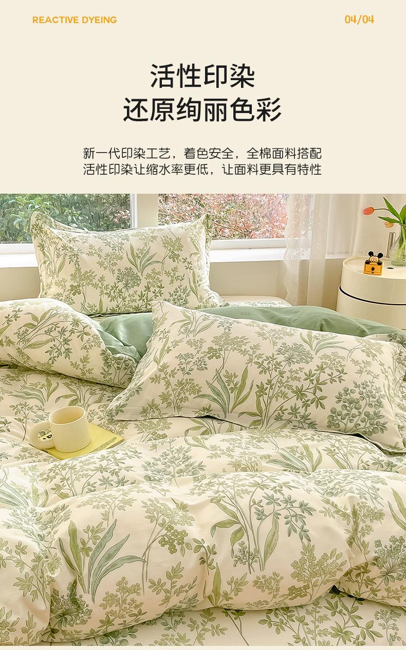 Juego de Cuatro Piezas de Algodón Puro Ins Nantong Cama Sábanas Funda de Edredón Juego de Cama de Tres Piezas de Algodón Puro Grado Materno e Infantil Sábanas de Cama de Alta Gama