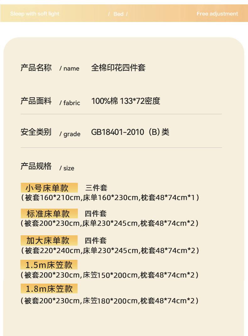 1.5m bed [sheet set of four] - suitable for 200*230cm quilt core, sheets 230*245cm