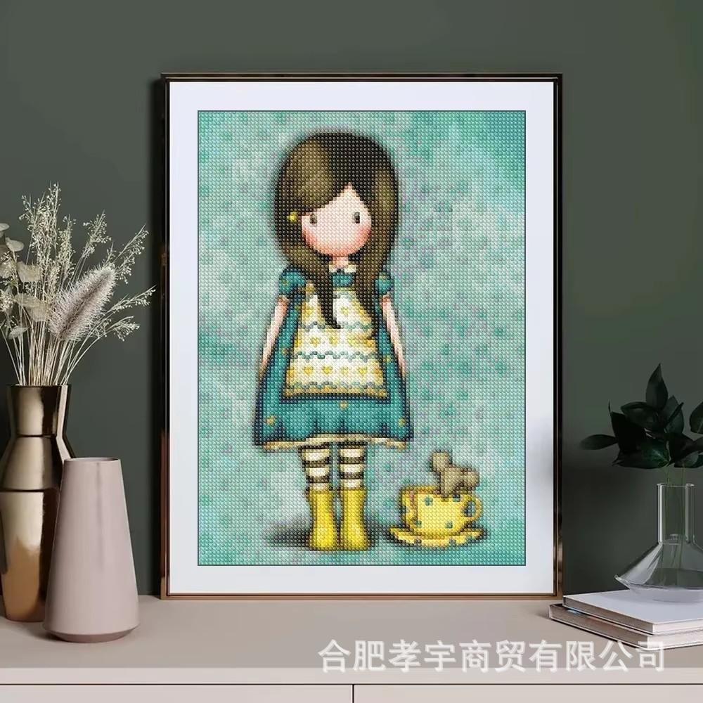 Nuevo Pintura Diamante 5D Transfronteriza Taladro Completo Dibujos Animados Niñita Bordado Diamante DIY Punto de Cruz Hecho a Mano Pegar Pintura Diamante Hogar