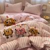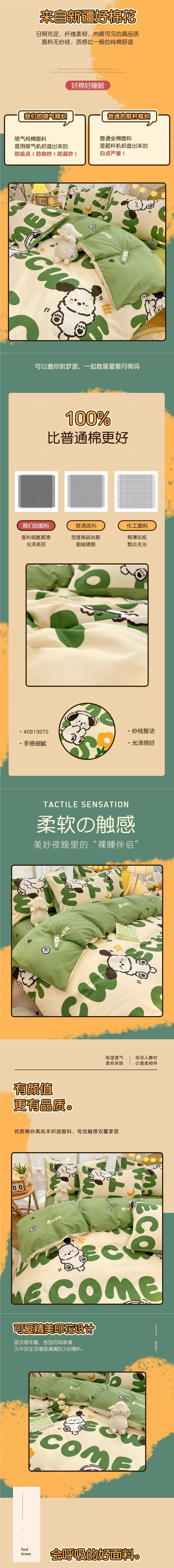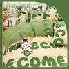 Juego de Cama de Dibujos Animados de Algodón Puro de Cuatro Piezas 100 Ropa de Cama Infantil Juego de Tres Piezas Niño Verde Funda de Edredón Sábana Bajera 4
