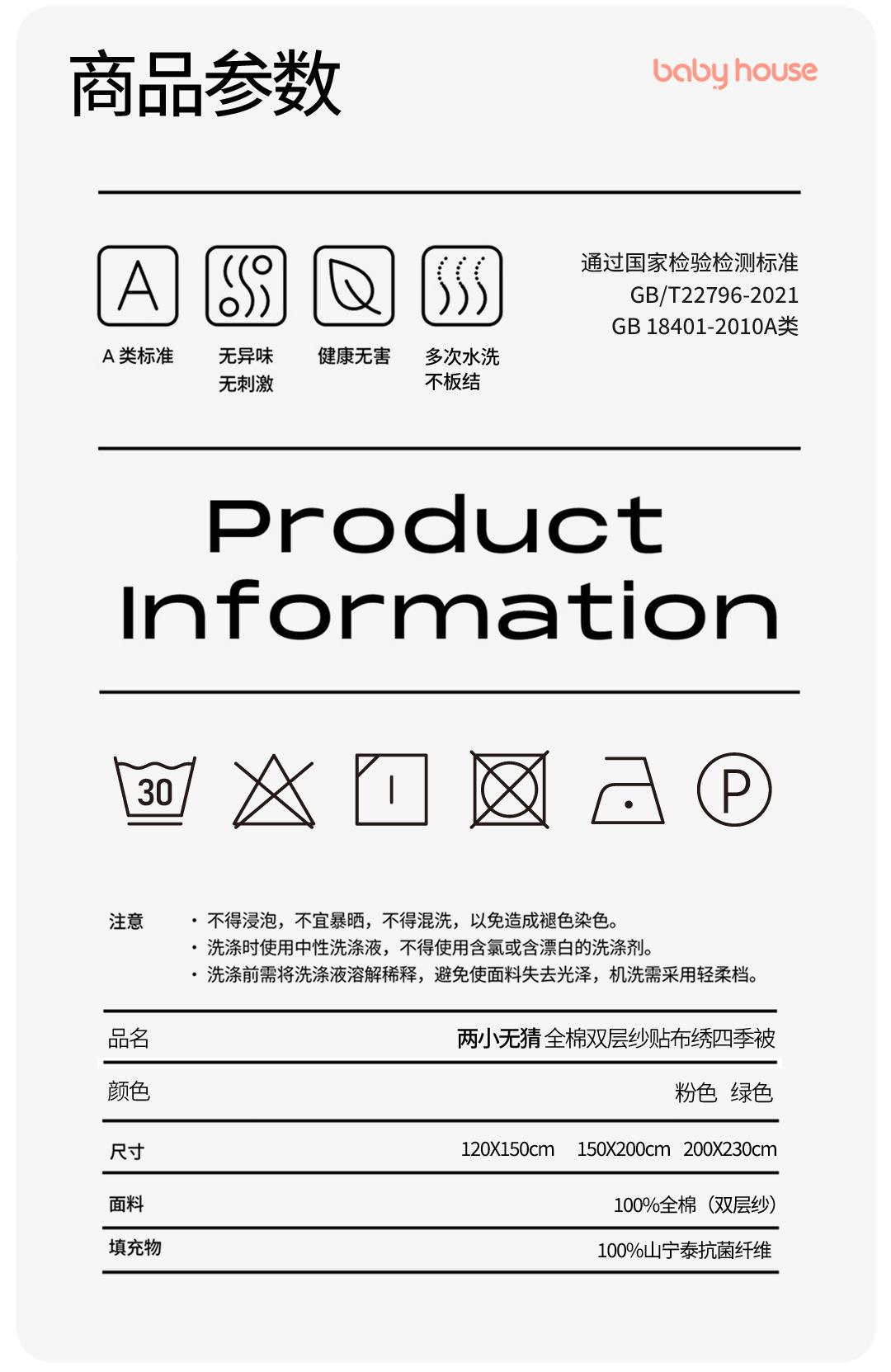 Seleccionado tejido de gasa de doble capa 100% lavado, suave como una nube, con un tacto delicado, brindando a tu piel una experiencia inigualable respetuosa con la piel. Ya sea una cálida noche de primavera o una fresca mañana de otoño, puede hacerte sentir la comodidad justa.