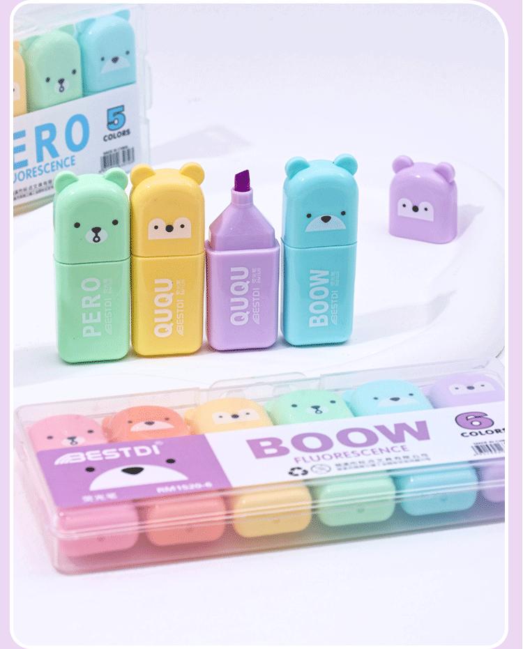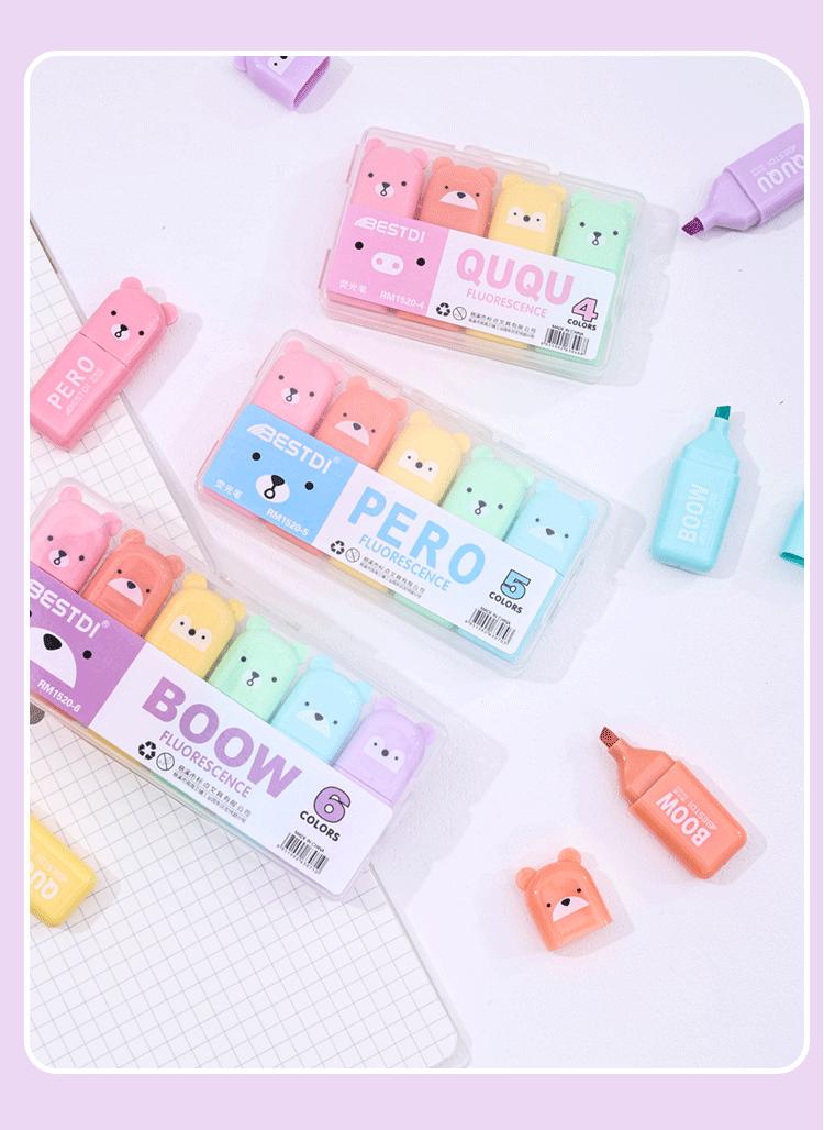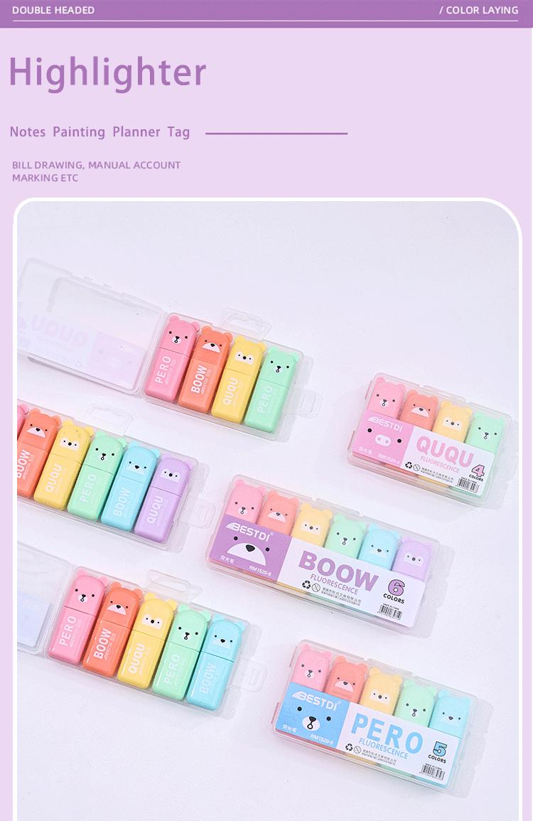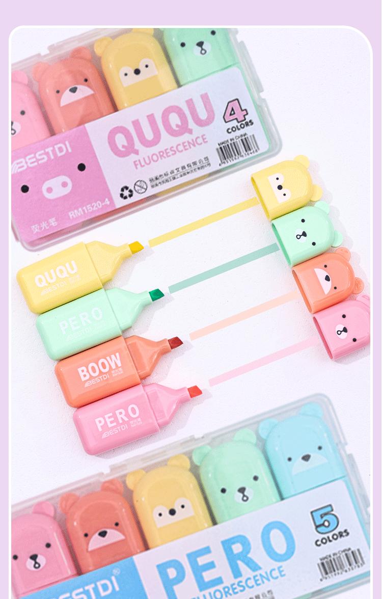 Nuevo Mini Set de Cuatro Resaltadores de Dibujos Animados Creativos Macaron Tamaño Pequeño Resaltadores para Marcar Puntos Clave en el Aula para Estudiantes