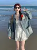 Abrigo Chaqueta de Mezclilla de Hombro Recto 2025 Primavera Nueva Moda Casual Versátil Diseño Sensorial Chaqueta de Mezclilla Color de la Imagen Algodón