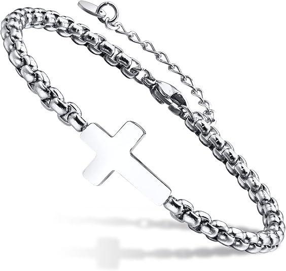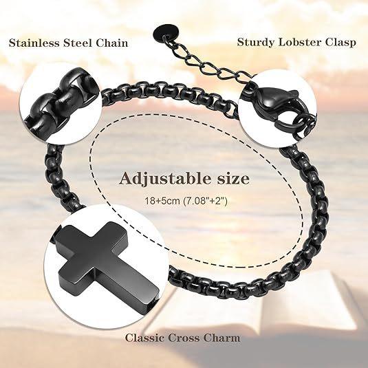 Pulsera de Cruz Europea y Americana de Venta Caliente para Exportación Suministro de Joyería Venta al por Mayor Personalizada Pulsera de Cruz de Acero Inoxidable Pulsera Caballero Santo