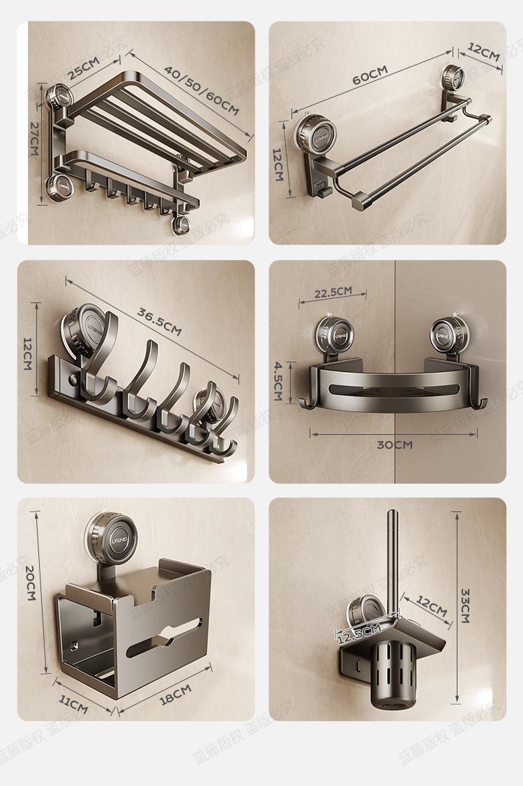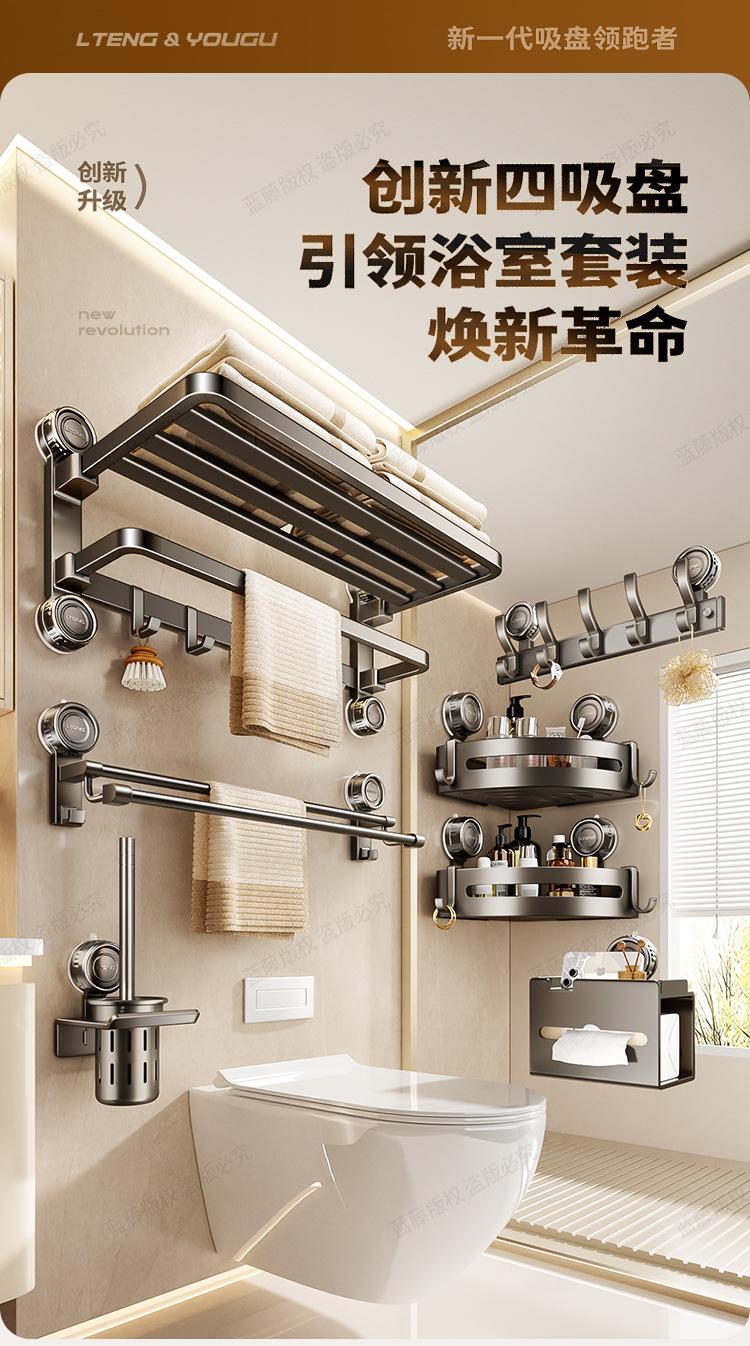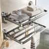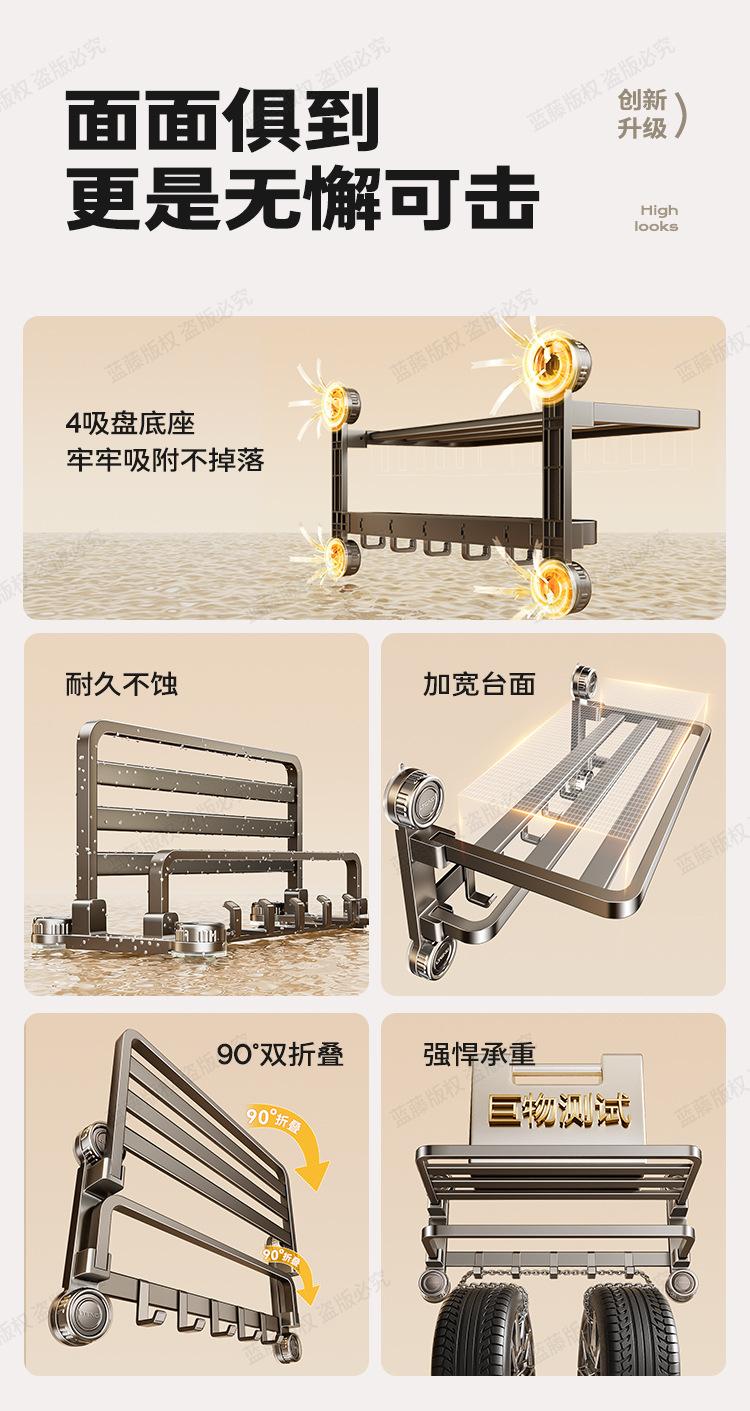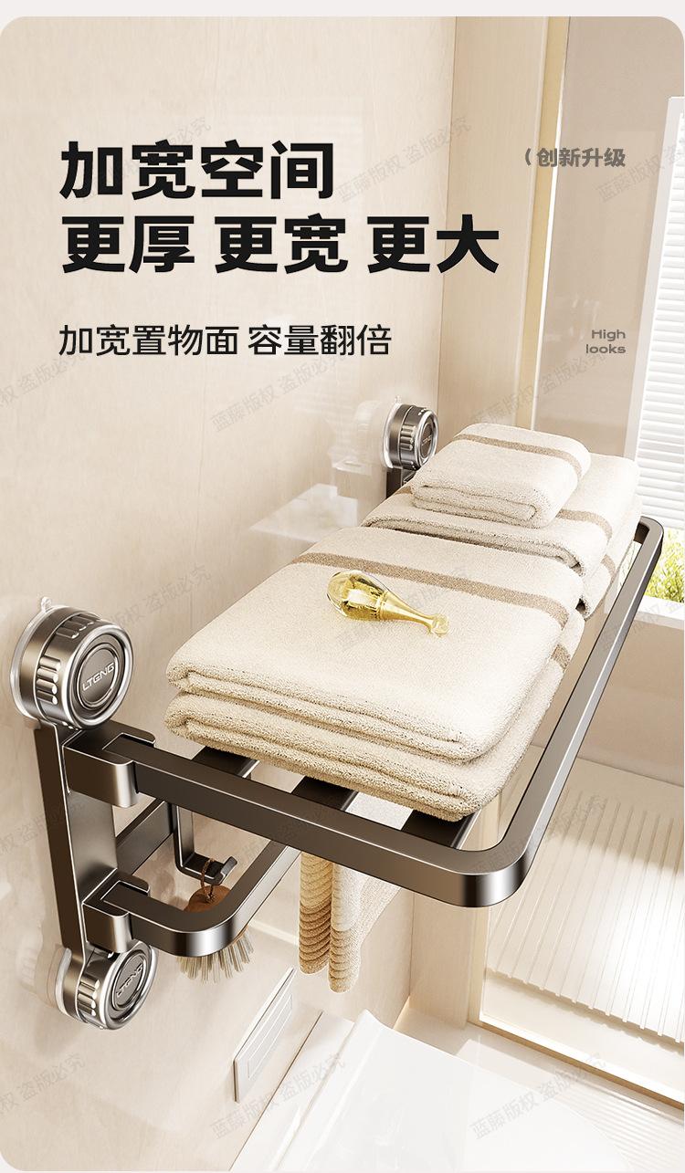 Estante para toallas con ventosa electrochapado en color plomo para baño, sin perforación, estante de almacenamiento para baño, toallero plegable, juego de pared