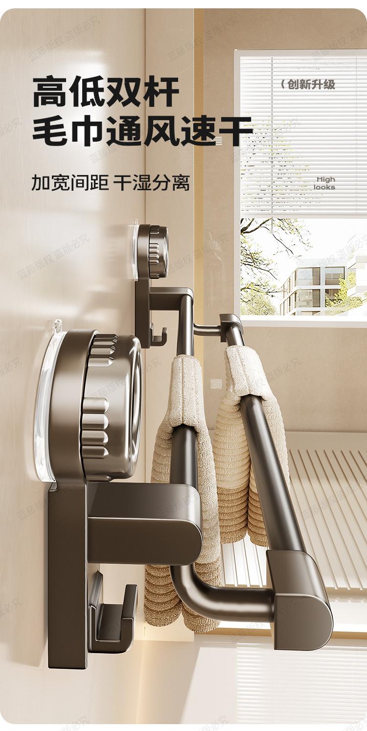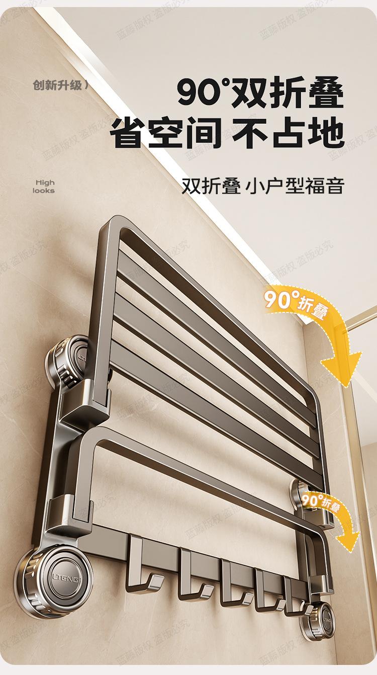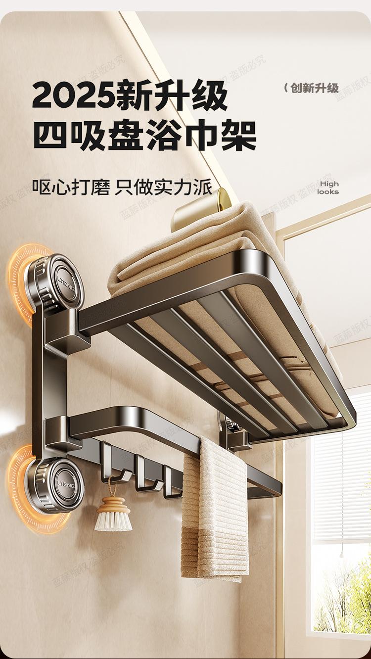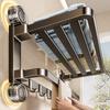 Gunmetal-Innovative Four-Suction Cup Folding Towel Rack 40cm, Gunmetal - Innovative Four-Suction Cup Folding T...