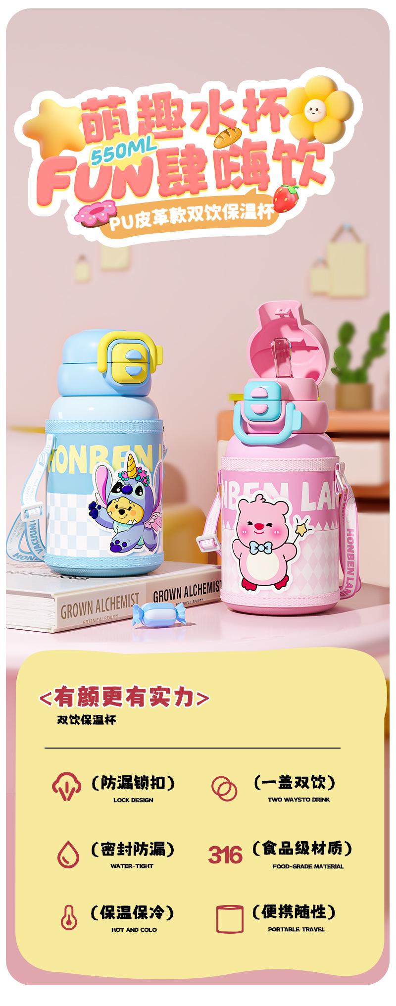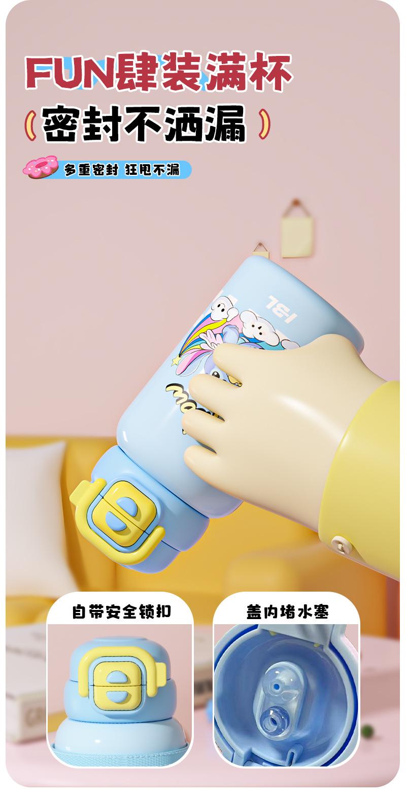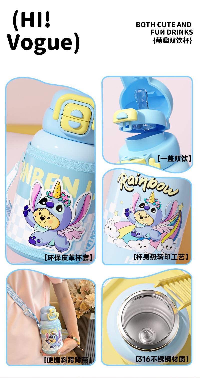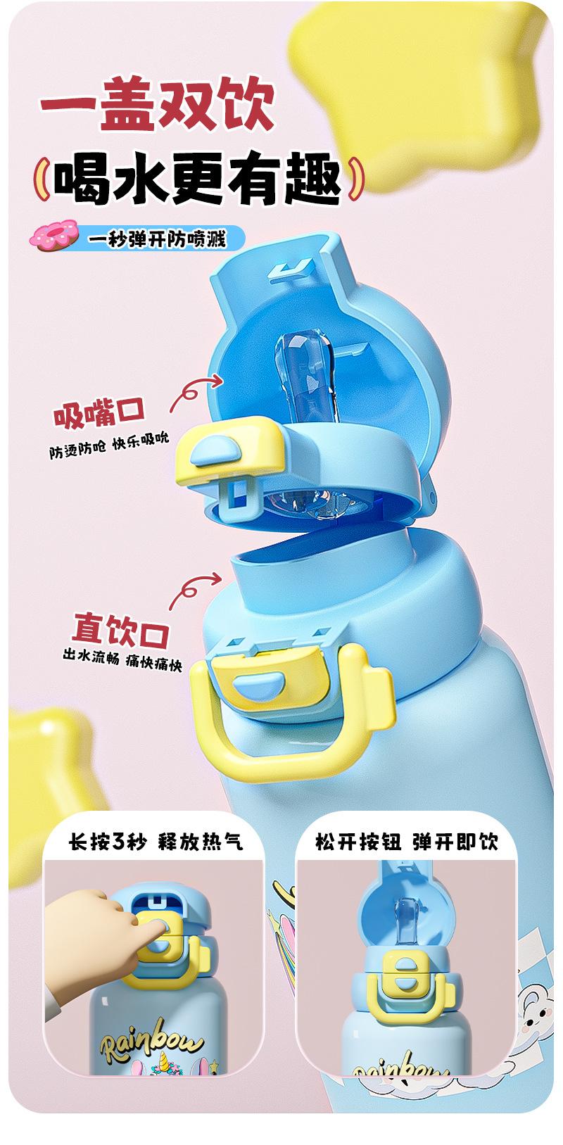 Taza Infantil Aislada de Dibujos Animados de Alto Valor Acero Inoxidable 316 Taza Pop-Up de Doble Bebida Viaje al Aire Libre con Correa Vaso con Pajita