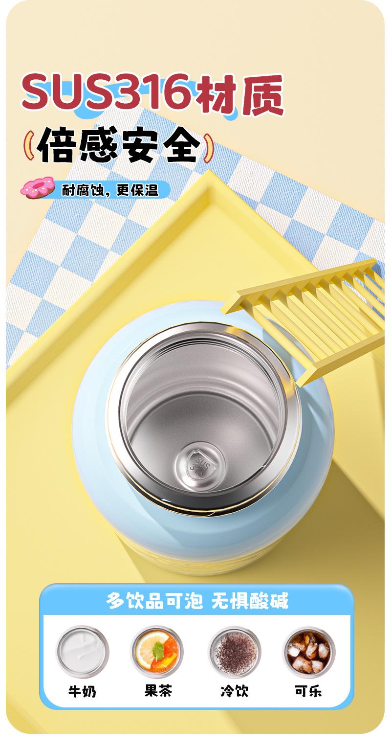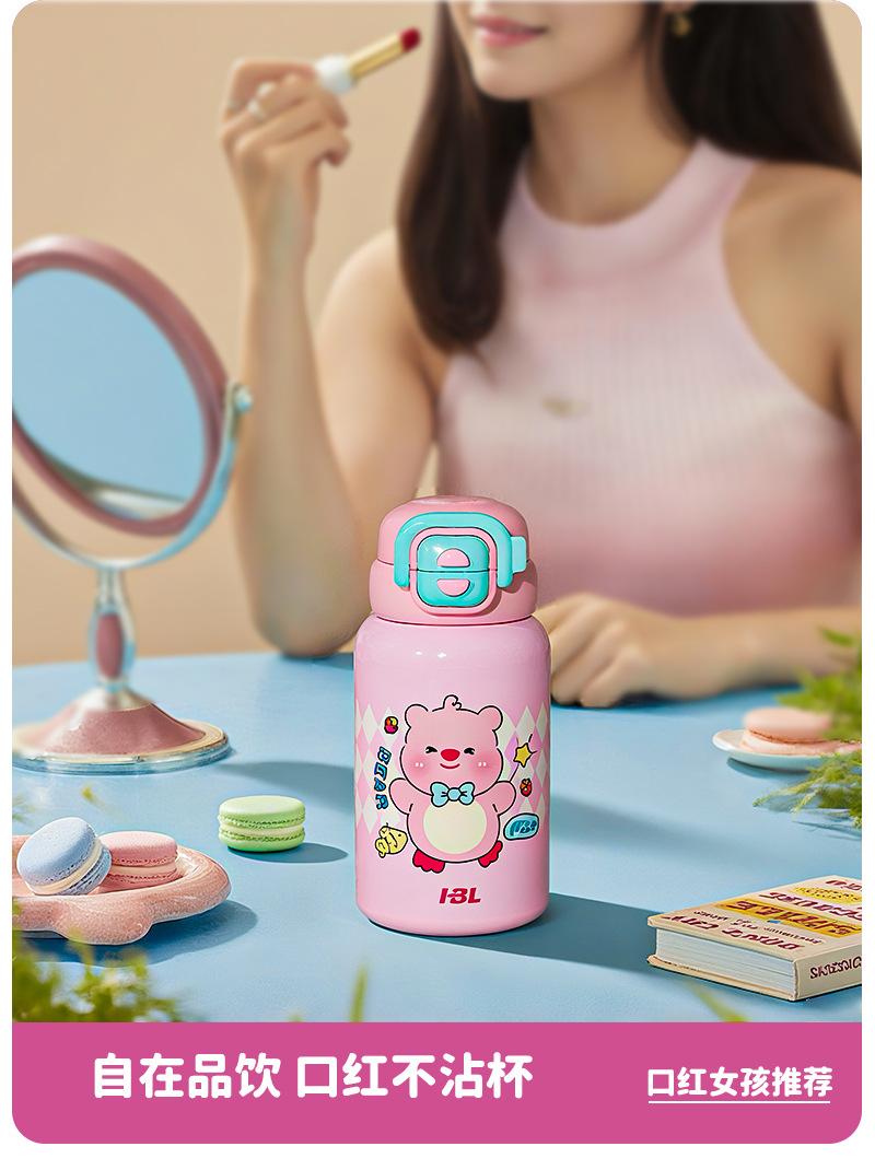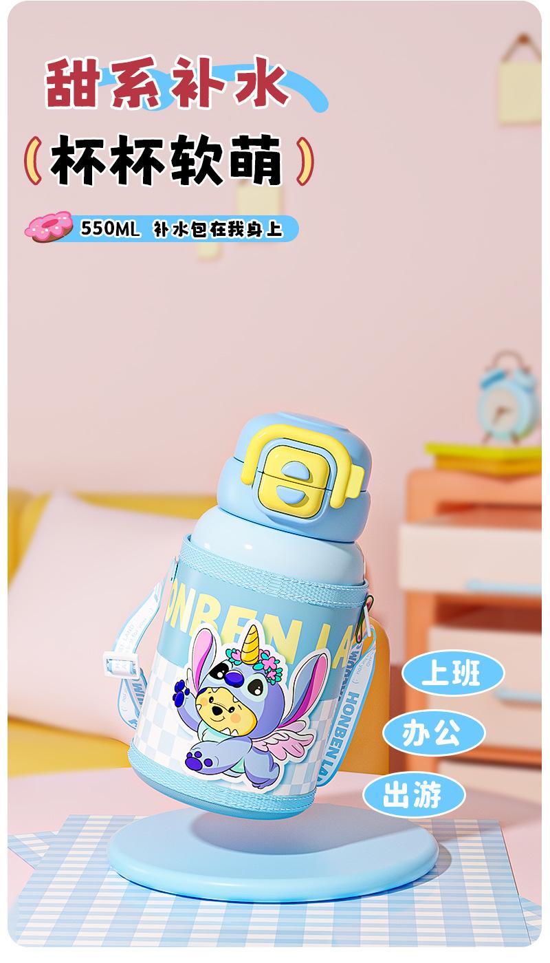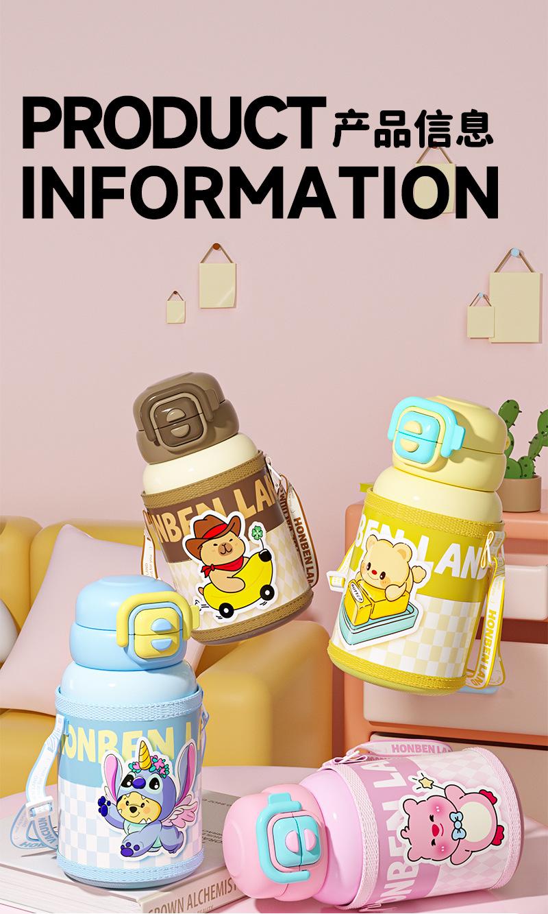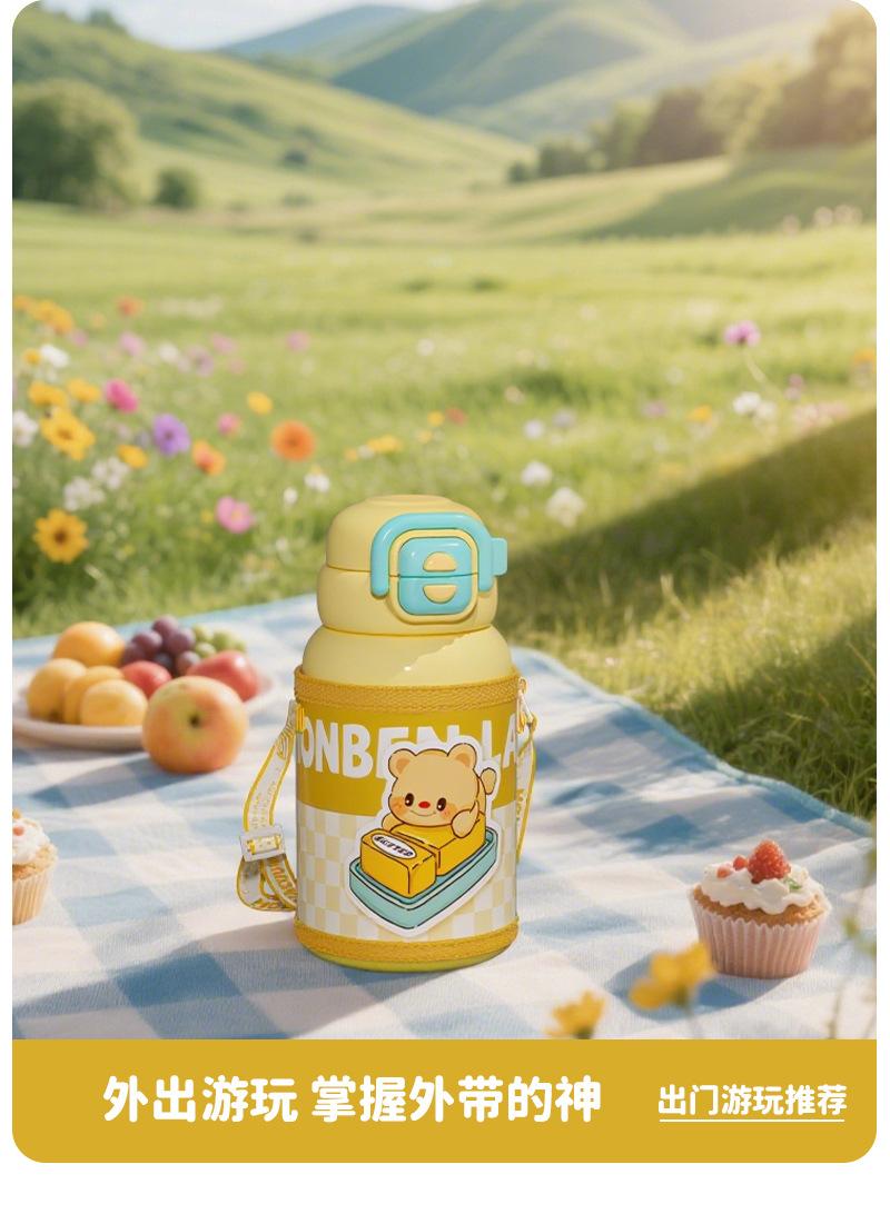 Taza Infantil Aislada de Dibujos Animados de Alto Valor Acero Inoxidable 316 Taza Pop-Up de Doble Bebida Viaje al Aire Libre con Correa Vaso con Pajita