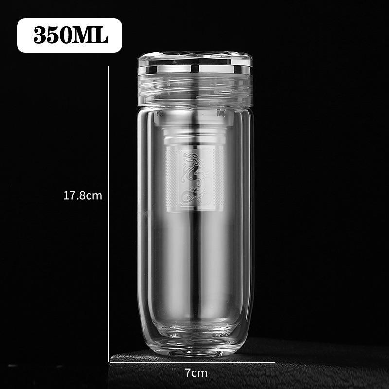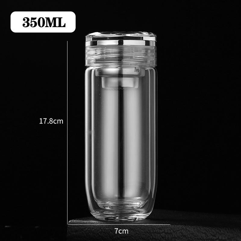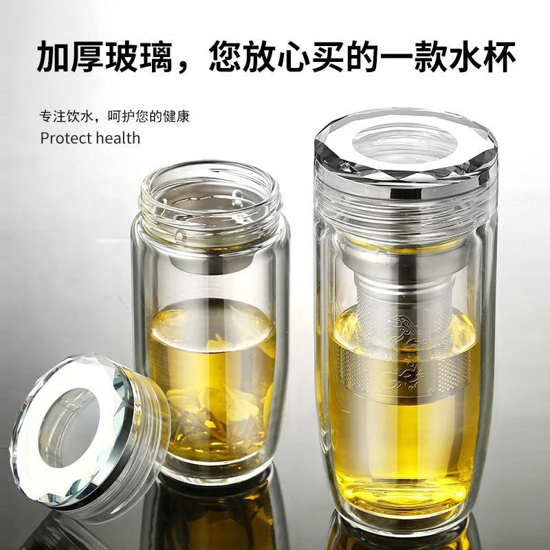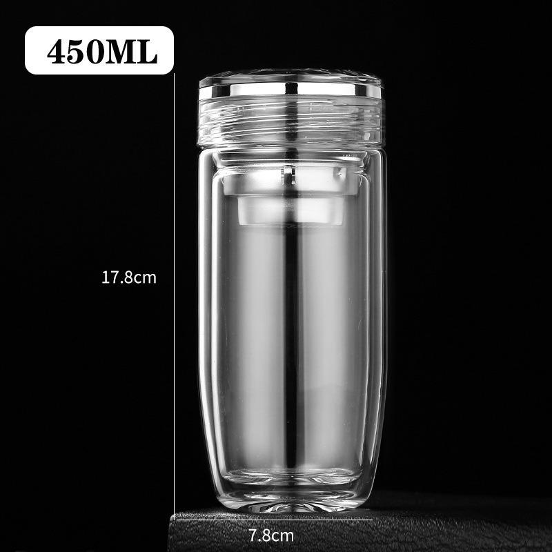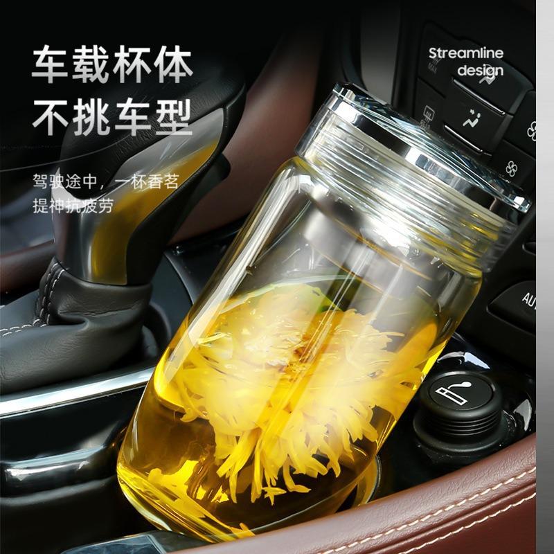 Taza de vidrio transparente de doble capa con tapa, taza de té, taza de té para negocios, taza aislada para coche, taza de huevo, taza para separación de té y agua