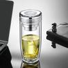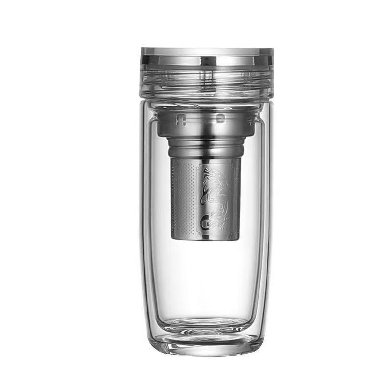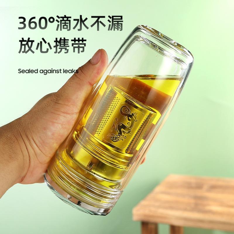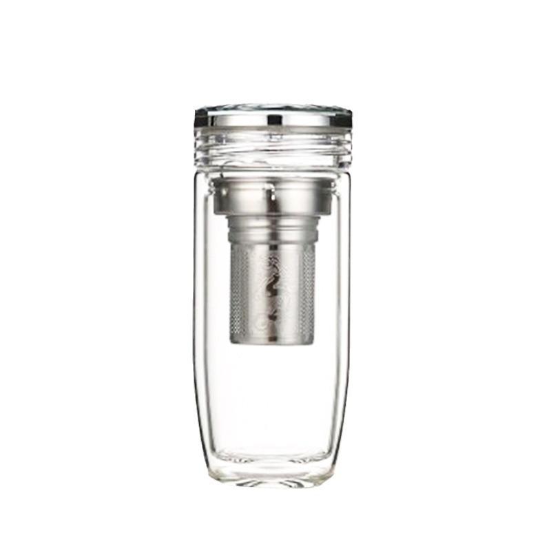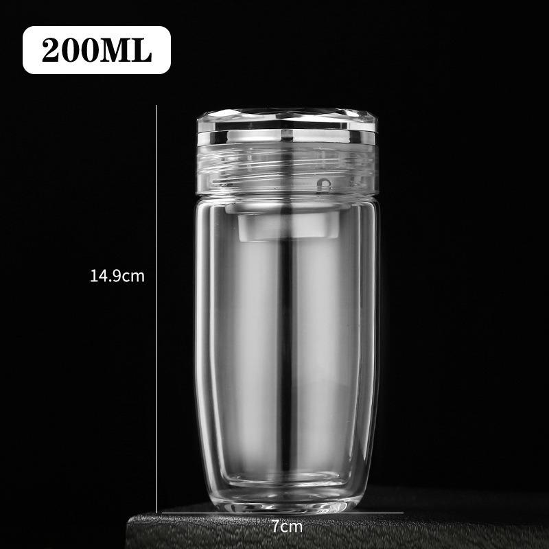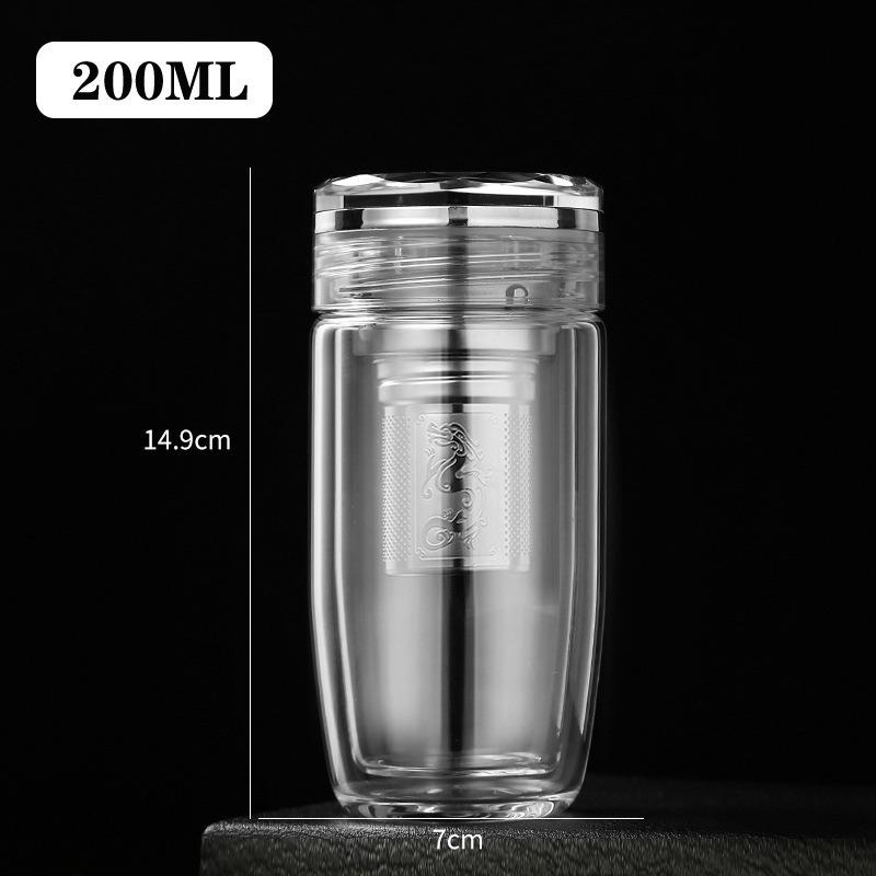 Taza de vidrio transparente de doble capa con tapa, taza de té, taza de té para negocios, taza aislada para coche, taza de huevo, taza para separación de té y agua