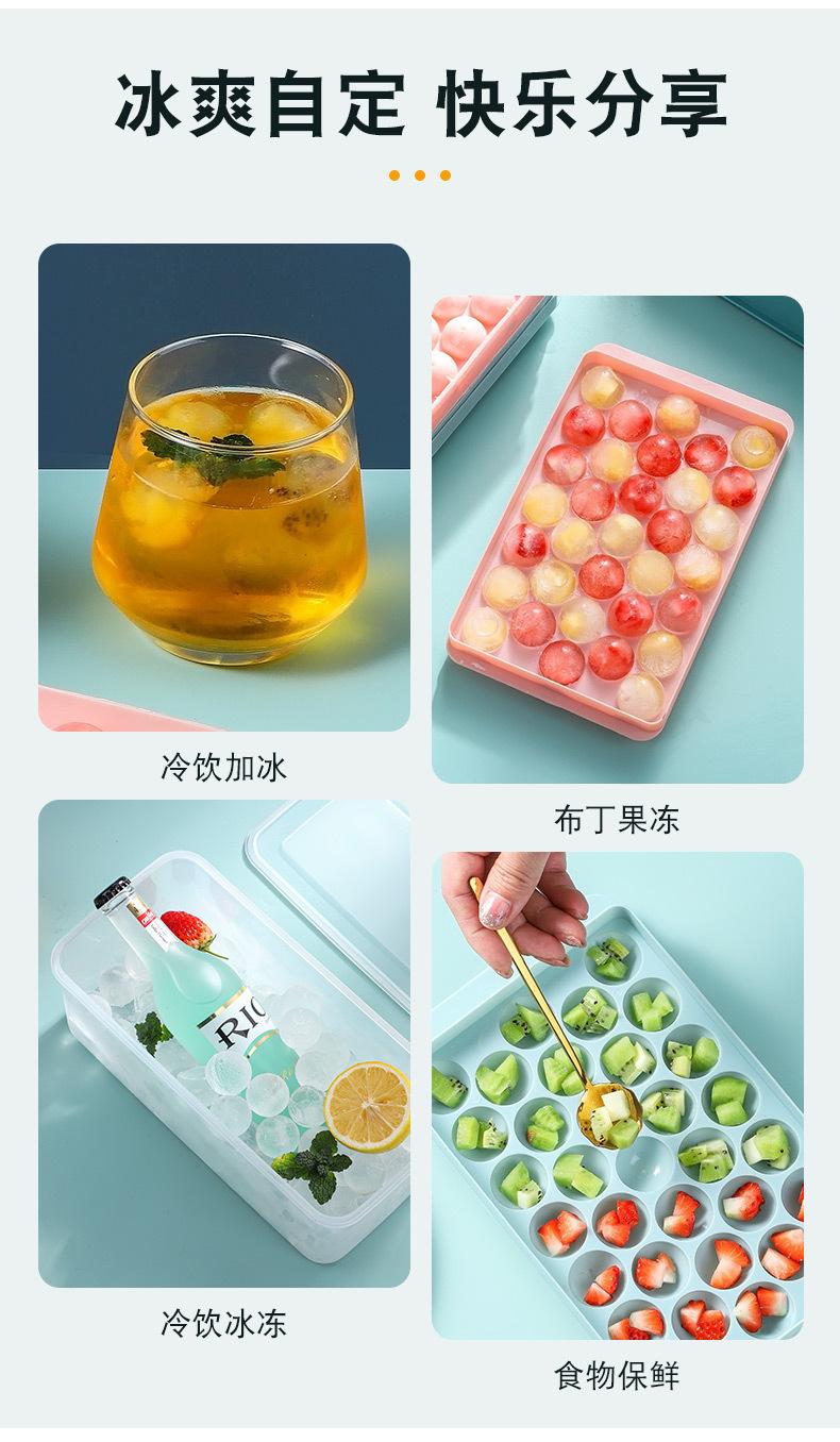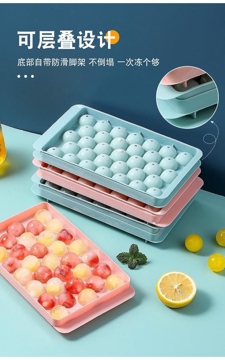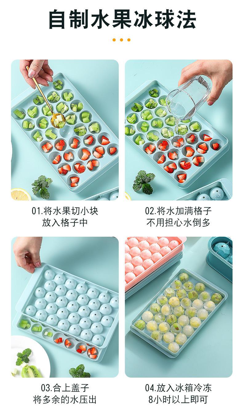 Molde casero para cubitos de hielo, Bandeja esférica para hielo de grado alimenticio con tapa, Hielera moderna de 33 rejillas, Molde para bolas de hielo