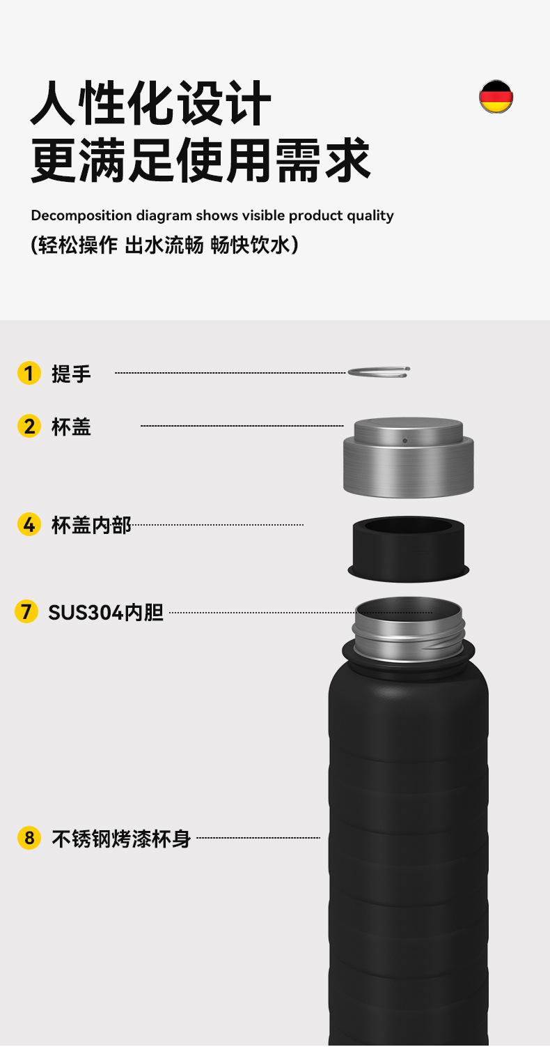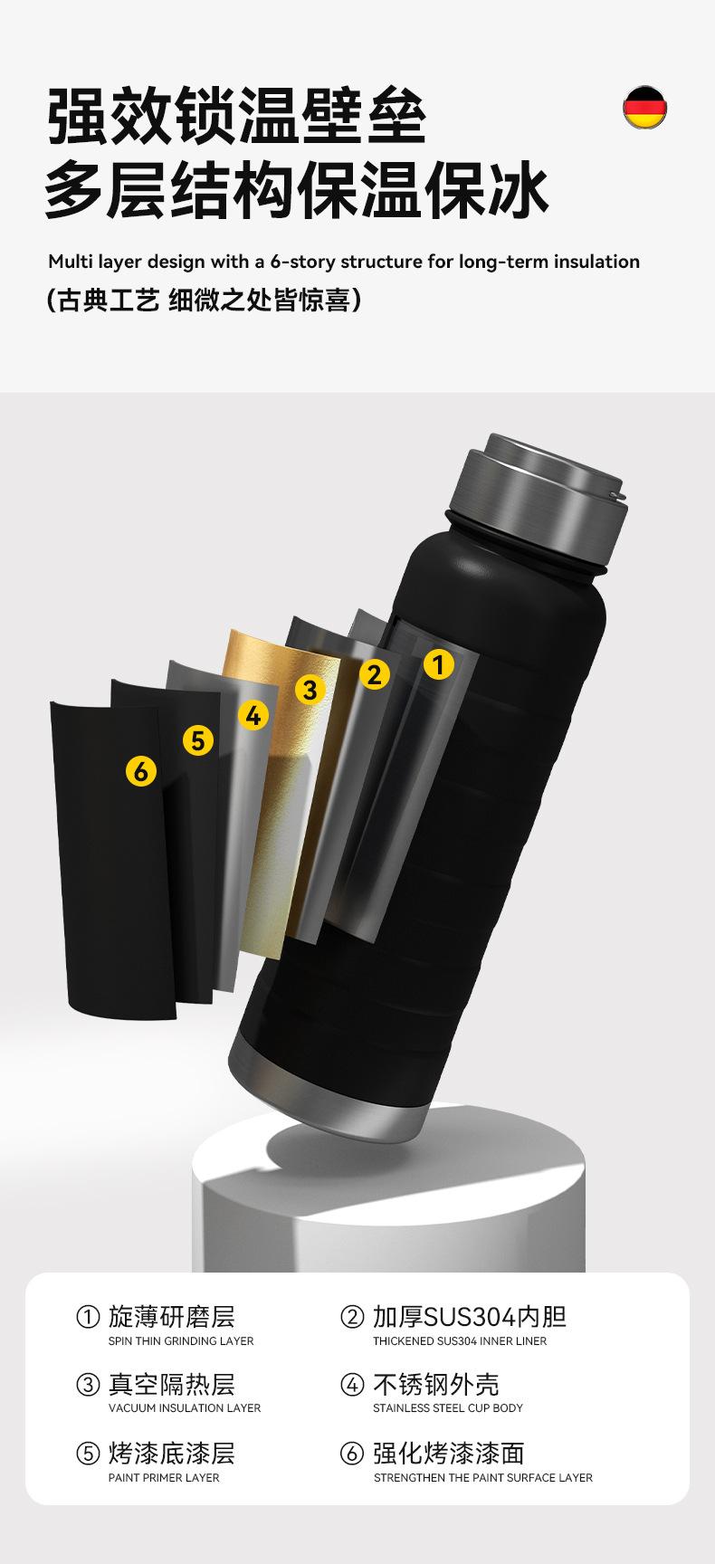 Vaso aislado transfronterizo de gran capacidad, botella de agua deportiva portátil, termo aislado al vacío de acero inoxidable 304, vaso de agua portátil para exteriores