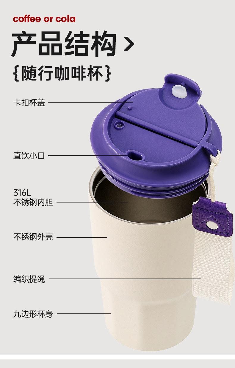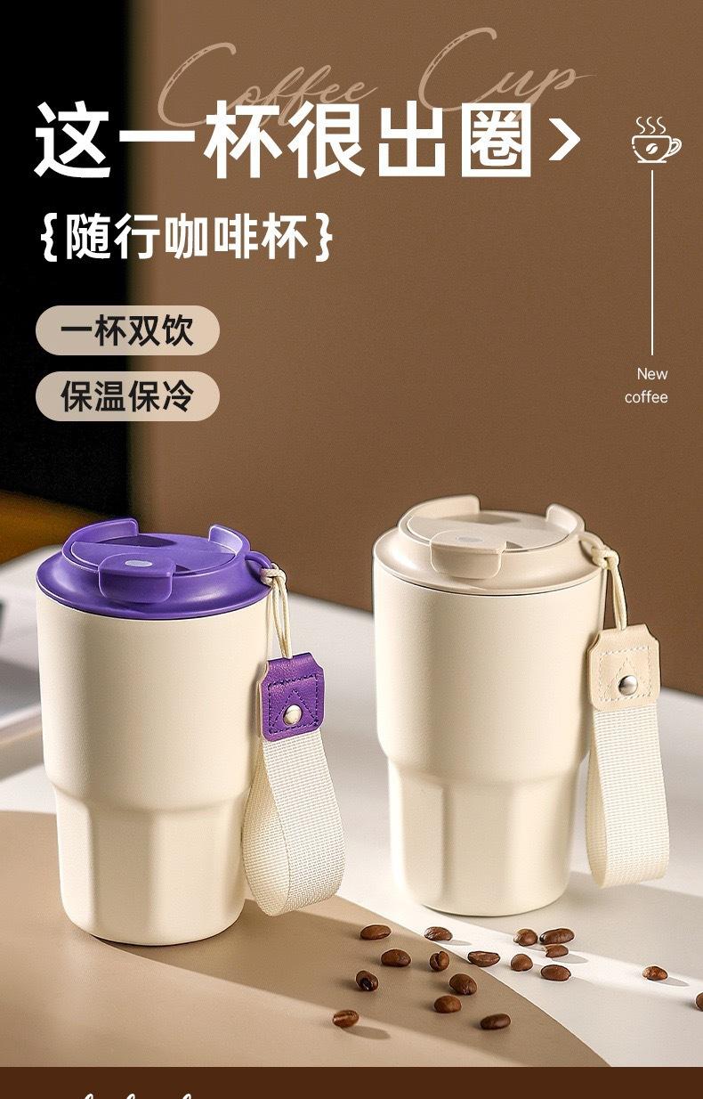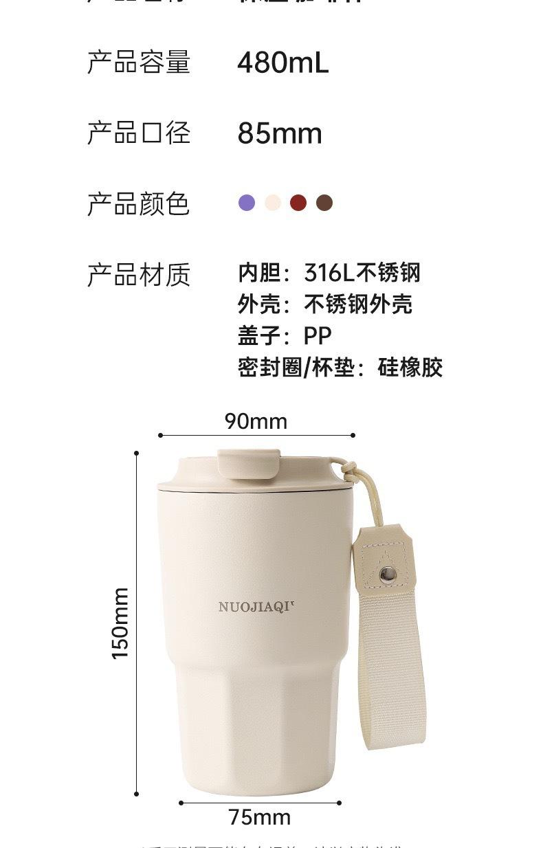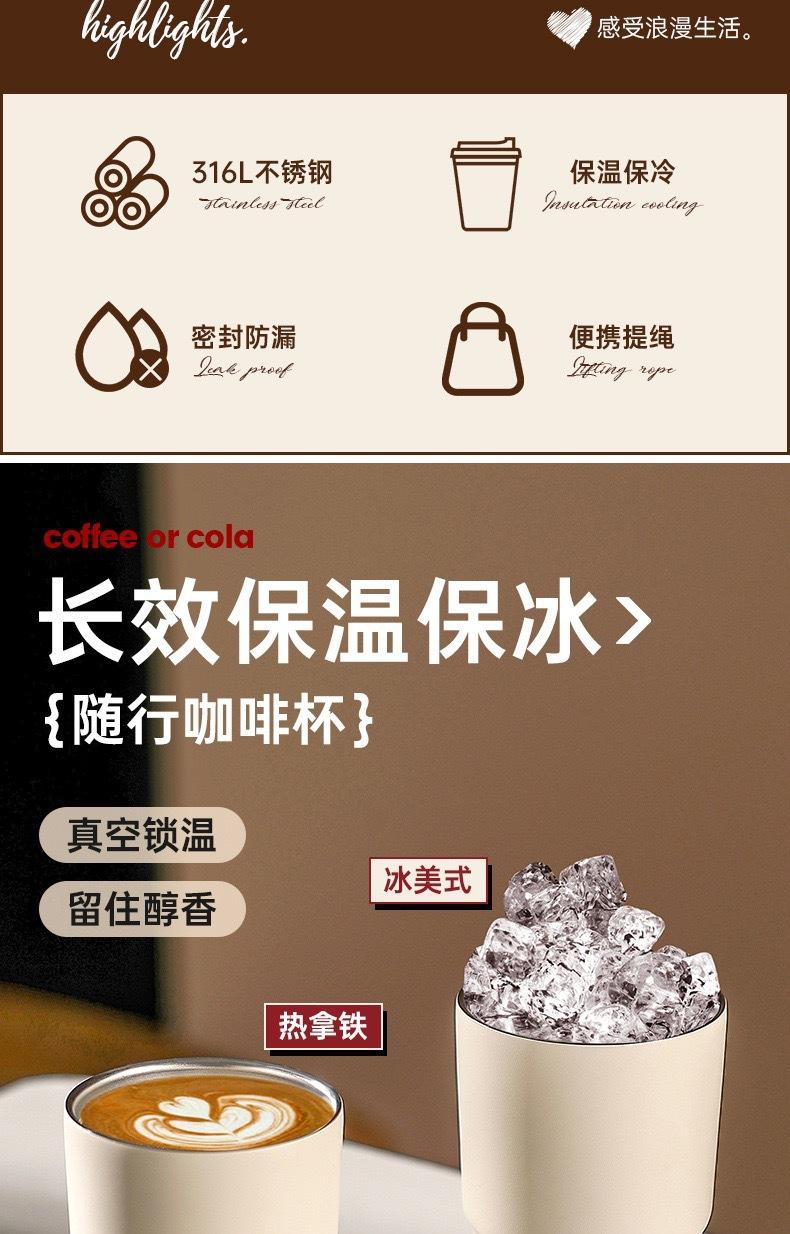 Taza de Viaje Nueva Acero Inoxidable 316 Aislada con Cuerda para Transportar Portátil Doble Bebida Café Sub-Patrón Logo Personalización