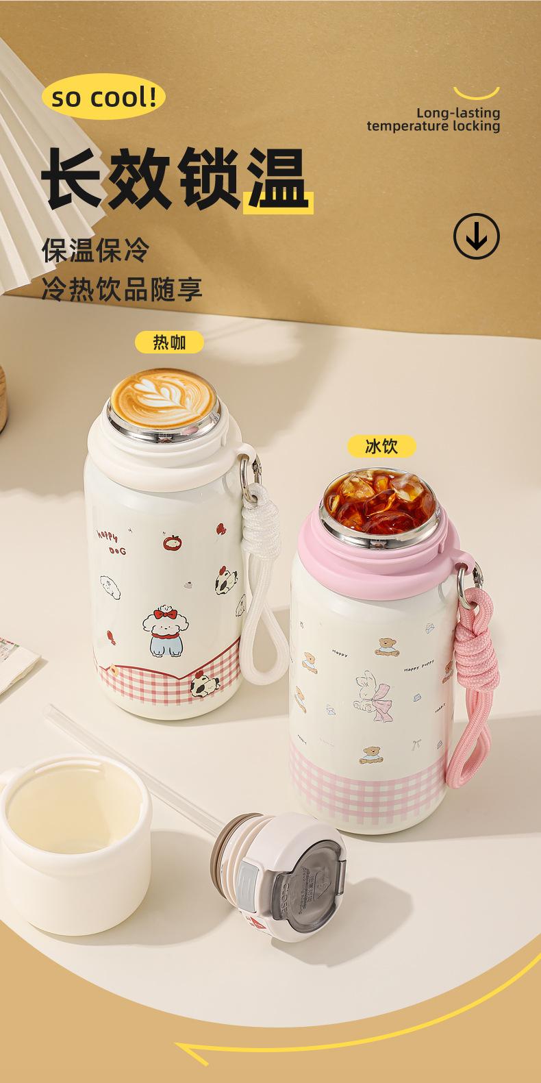 Taza aislada de alto valor estilo ins taza de agua de acero inoxidable 316 para niñas taza con popote de alto valor taza para tres bebidas taza para estudiantes