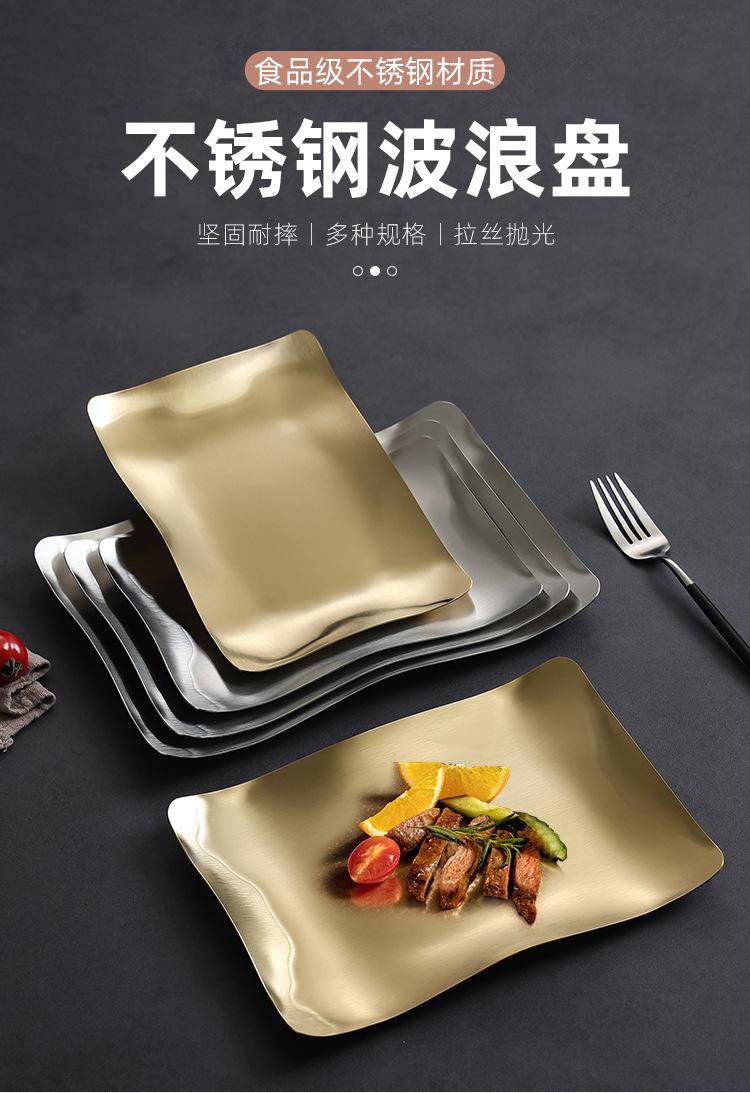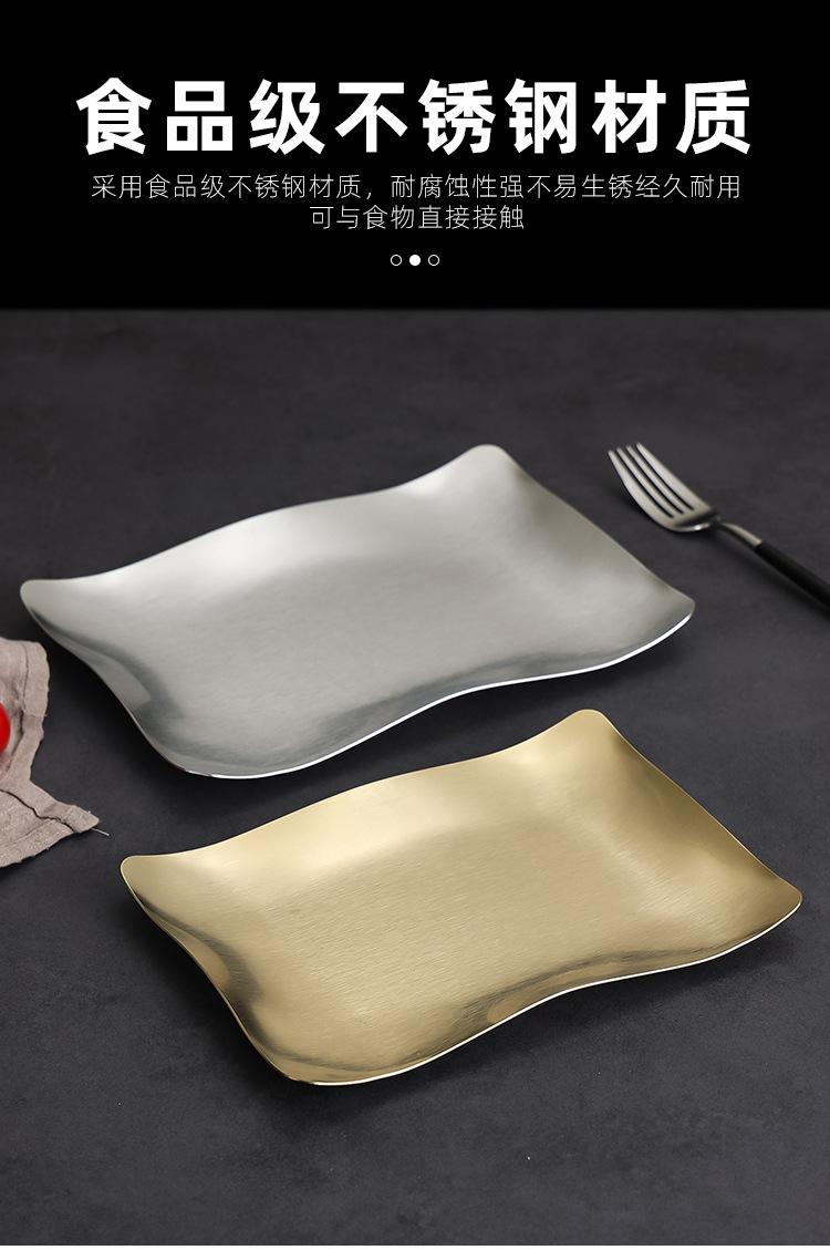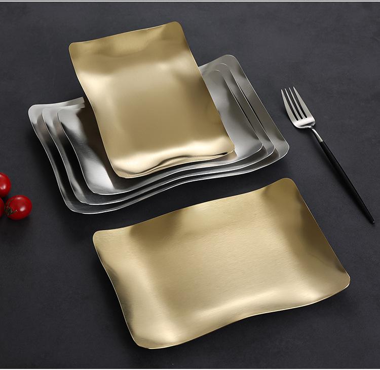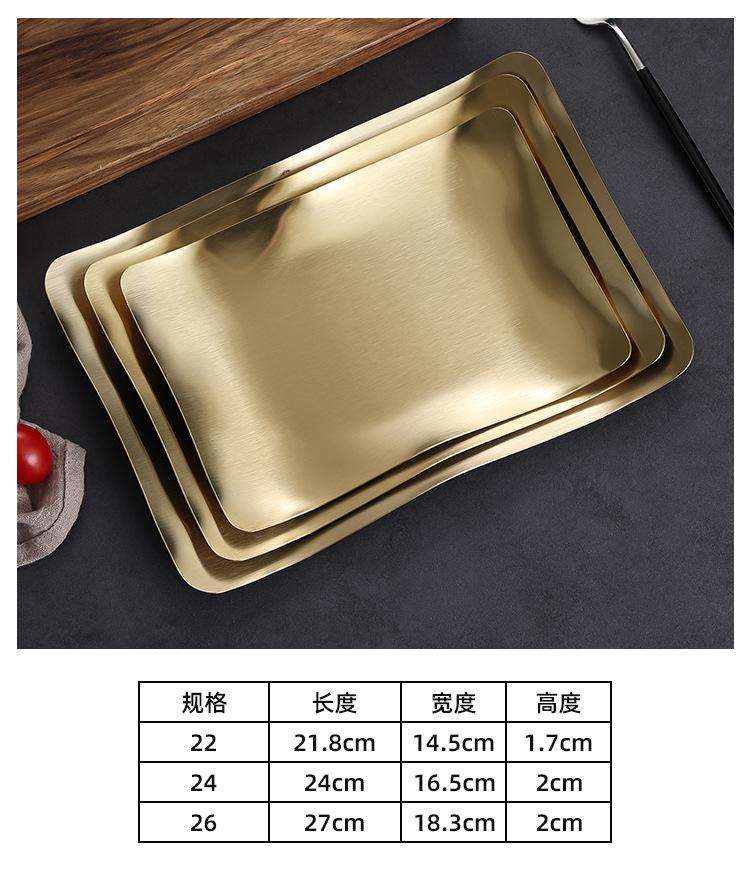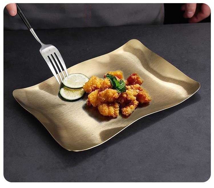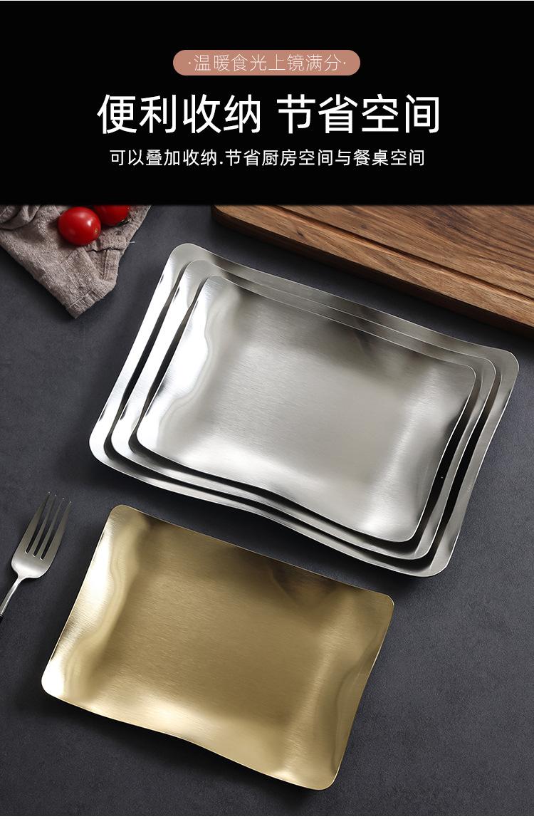 Plato para Barbacoa de Acero Inoxidable Estilo Coreano Plato para Hot Pot Plato para Verduras Plato para Barbacoa Plato para Postre Plato para Snacks Plato Rectangular Dorado Plato Hondo Plato para Cena