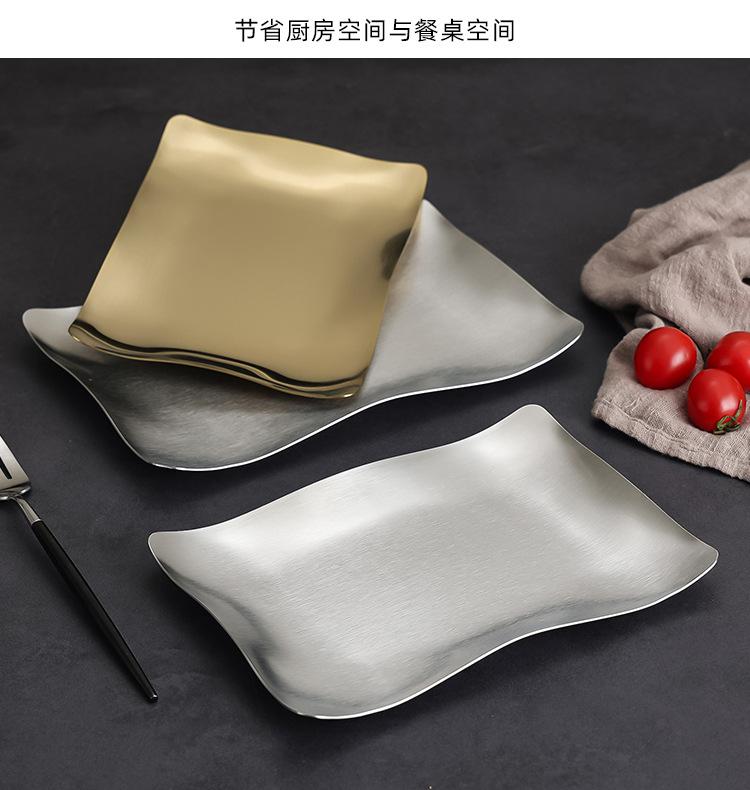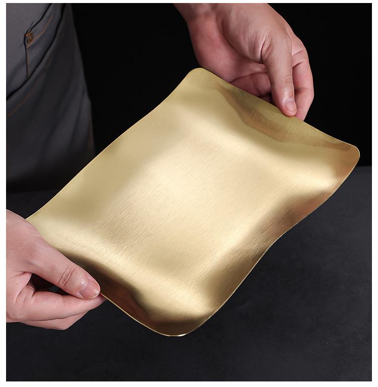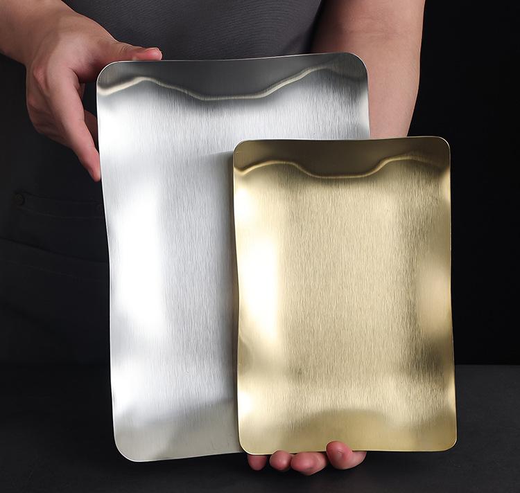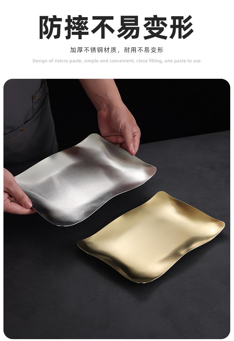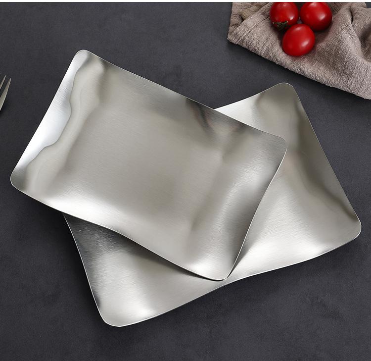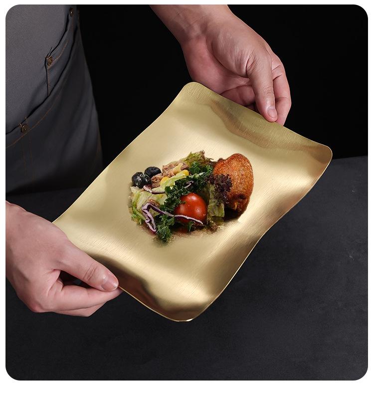 Plato para Barbacoa de Acero Inoxidable Estilo Coreano Plato para Hot Pot Plato para Verduras Plato para Barbacoa Plato para Postre Plato para Snacks Plato Rectangular Dorado Plato Hondo Plato para Cena