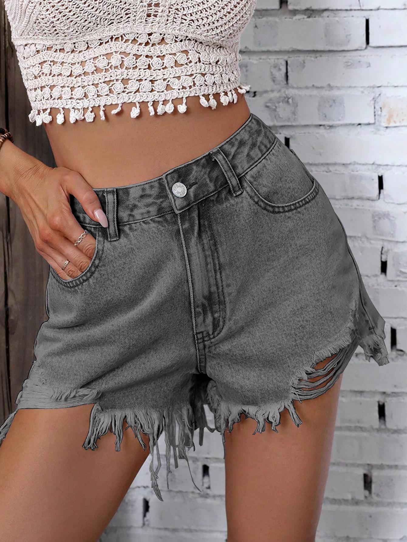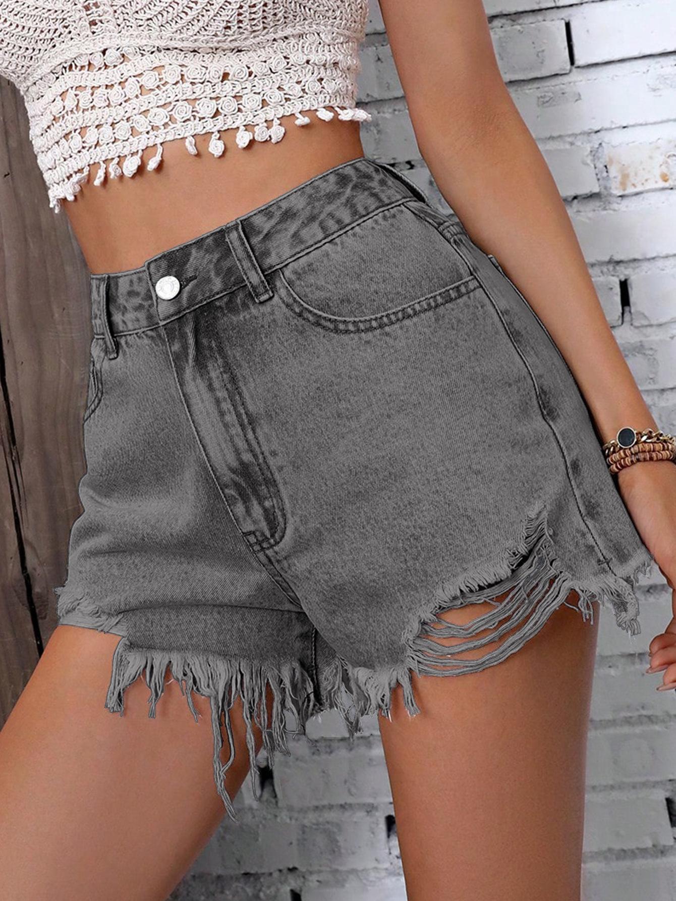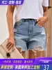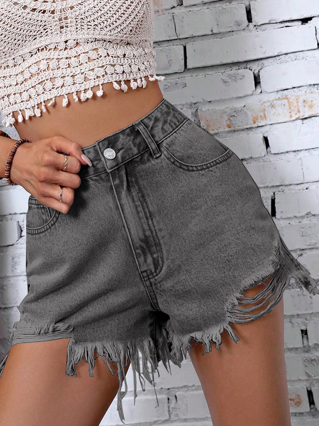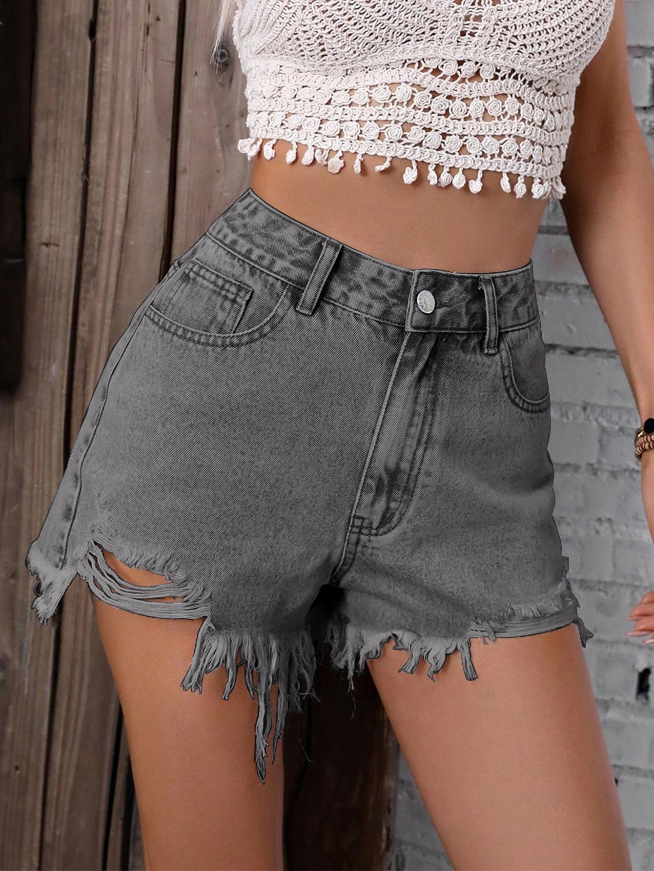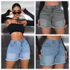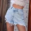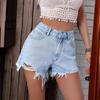 Amazon Cross-Border Ins de Mujer Nuevo Casual Cintura Alta Bajo Deshilachado Ripped Shorts de Mezclilla