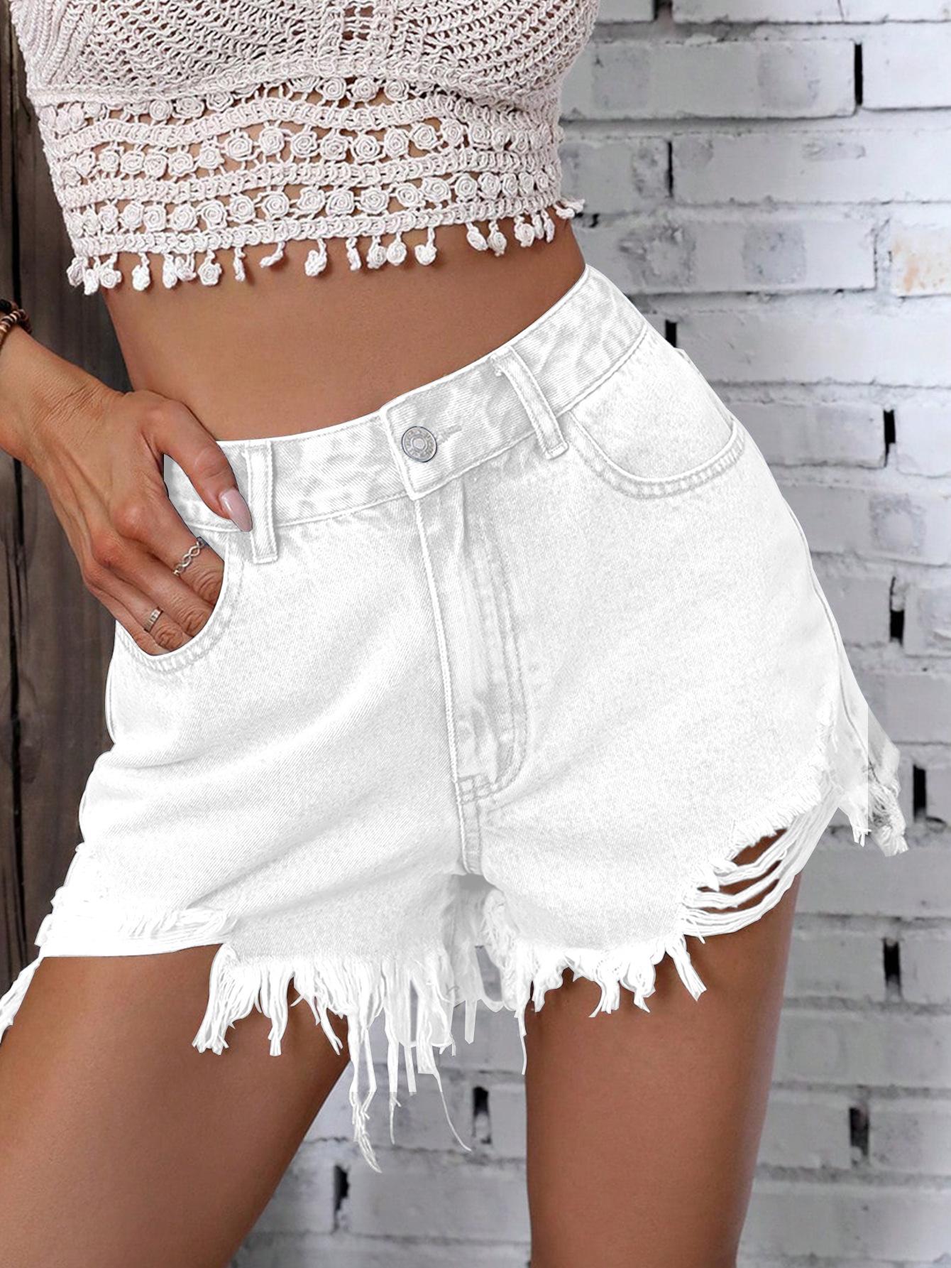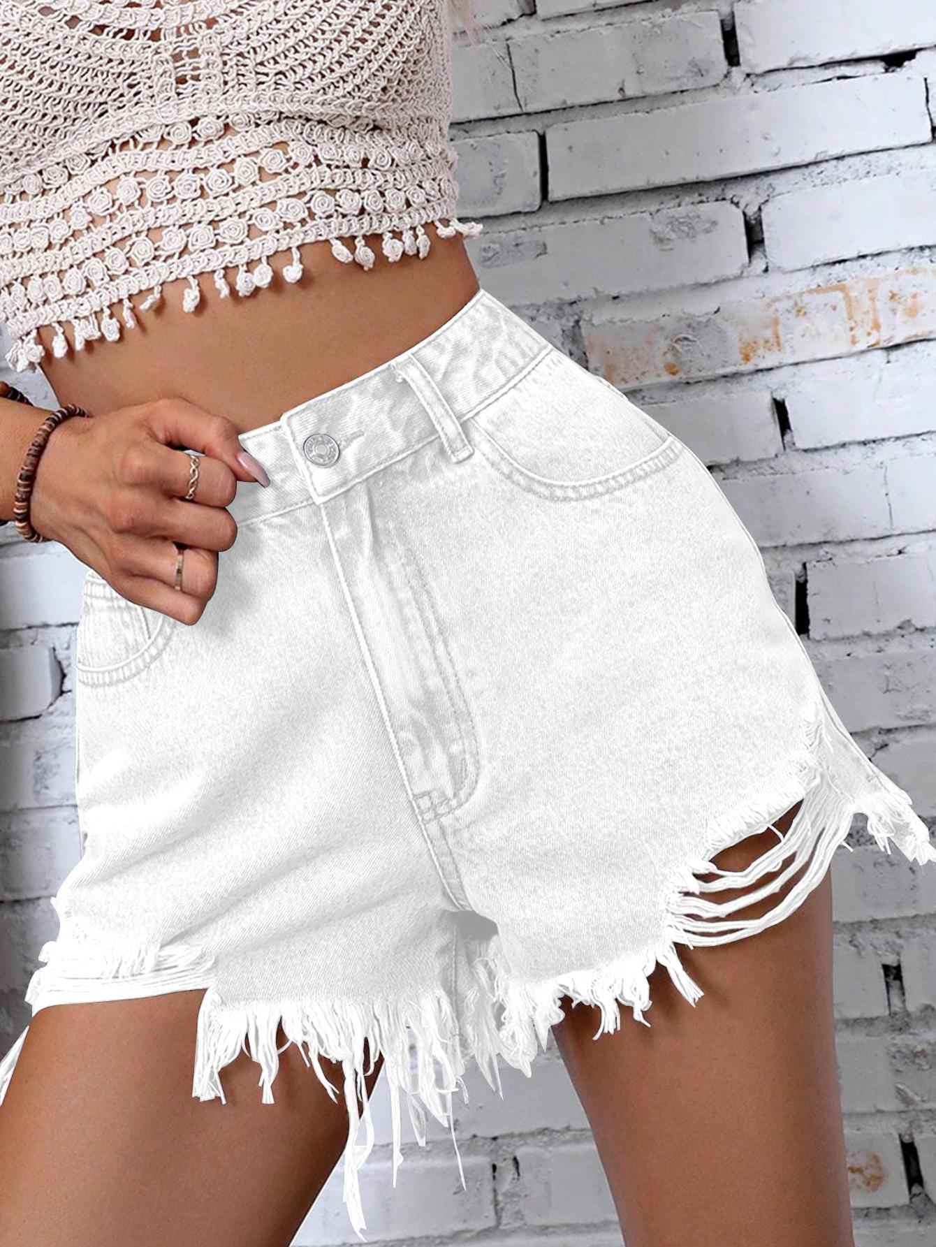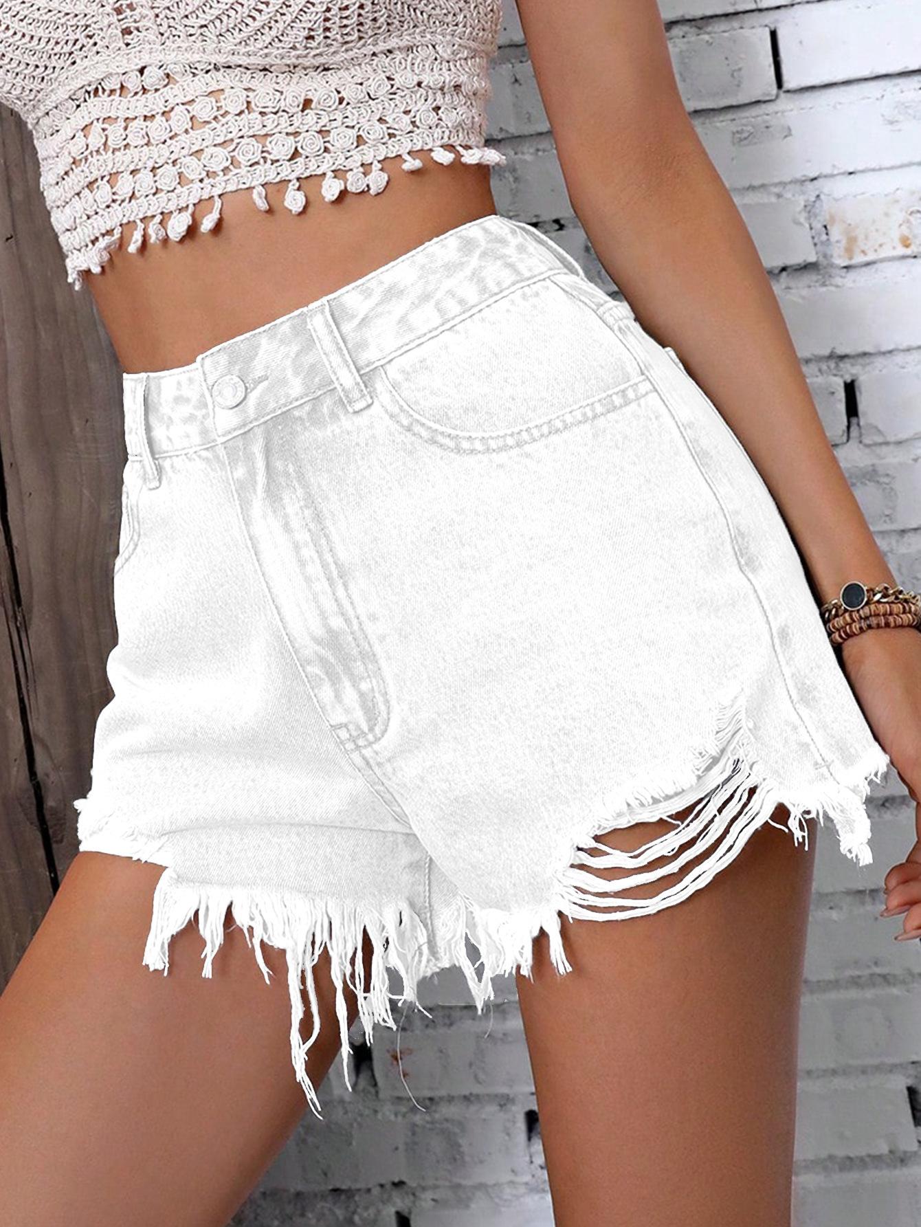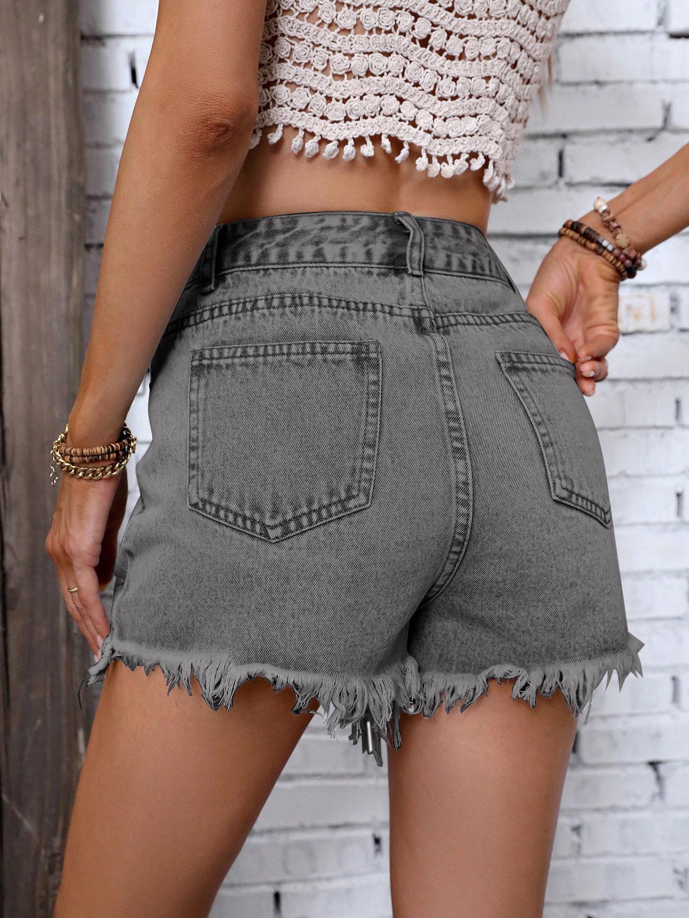 Amazon Cross-Border Ins de Mujer Nuevo Casual Cintura Alta Bajo Deshilachado Ripped Shorts de Mezclilla