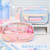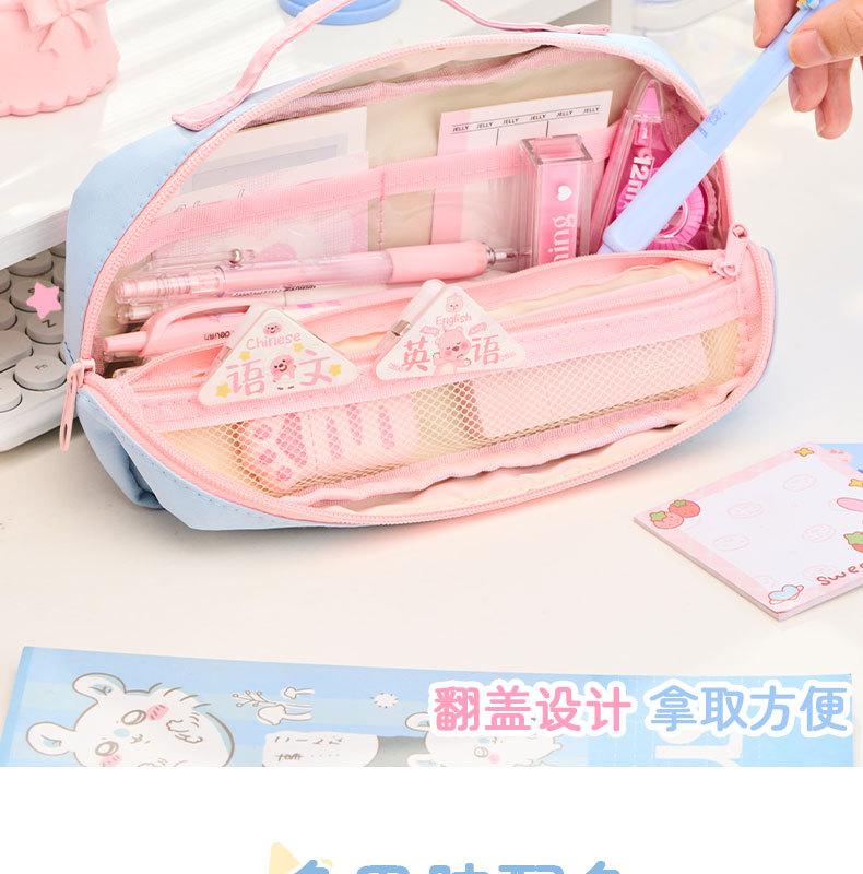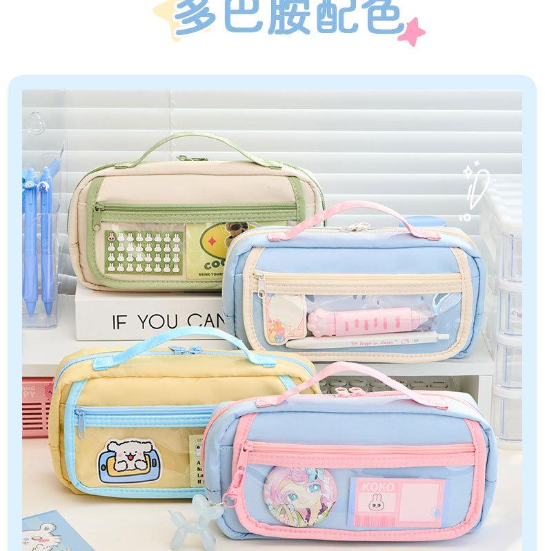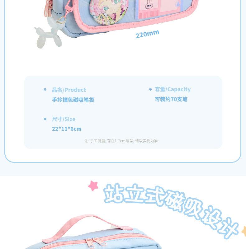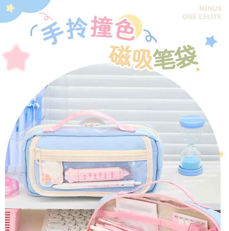 Estuche para lápices magnético fresco con bloques de color, de mano, con solapa, de gran apertura, caja de papelería, simple de alto valor, estuche para lápices de estudiante