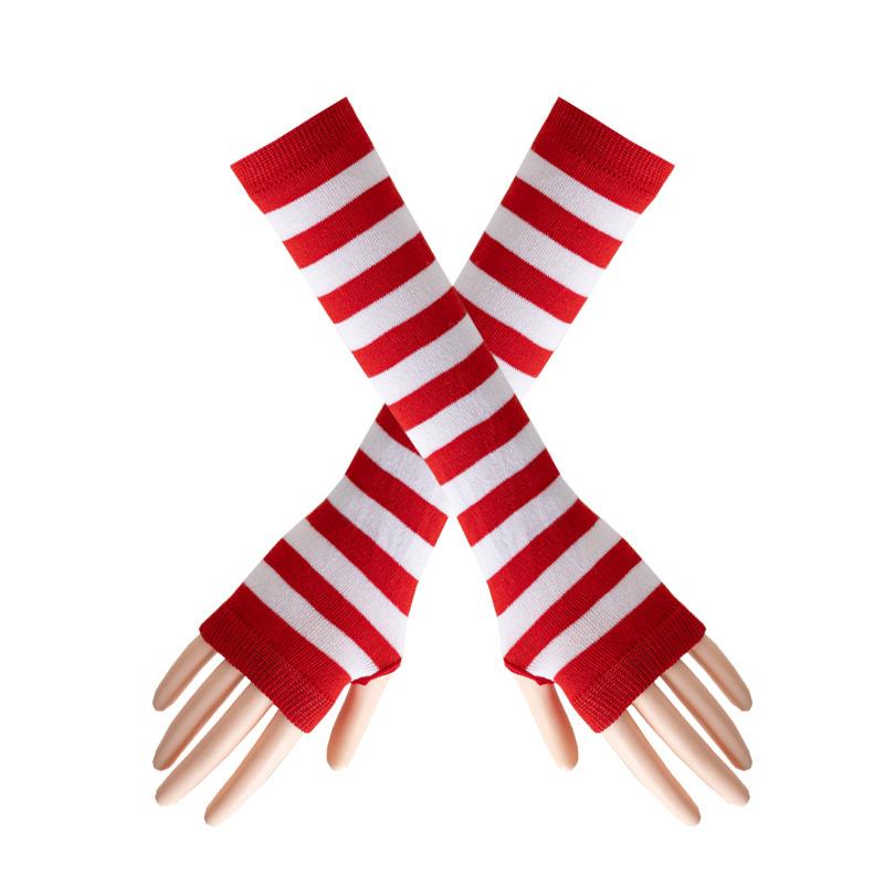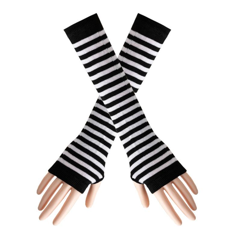 Guantes Largos Estilo Coreano Transfronterizo Manga para Brazo Cosplay Estilo Japonés Anime Rayas Blancas y Negras Largos de Algodón sin Dedos Guantes de Muñeca