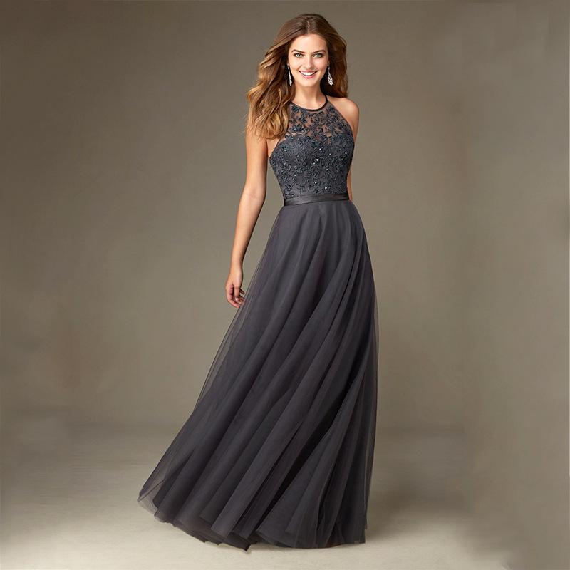 Otoño 2025 Amazon Vestido de Novia Dama de Honor Halter Escote Espalda Descubierta Largo Ajustado Moderno y Elegante