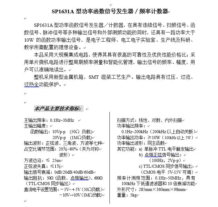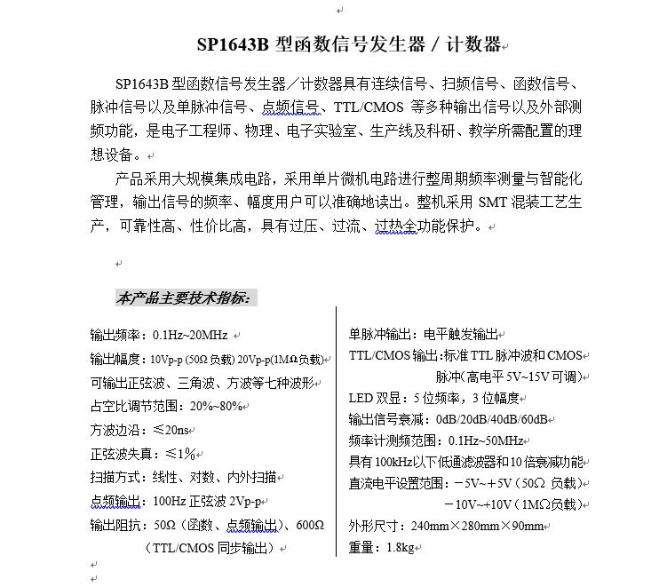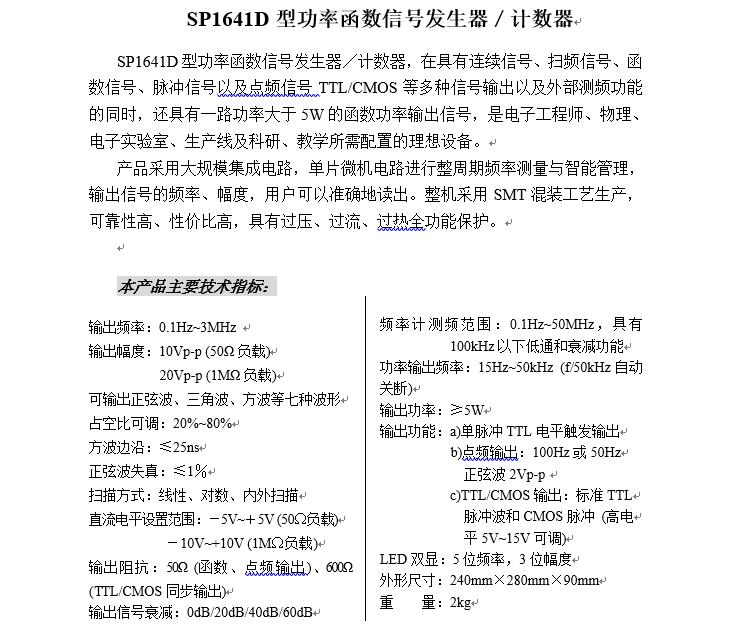 Generador de Señales de Función Shengpu Fuente de Señal Contador Sp1641B/D/1642B/1643B/1631A/F