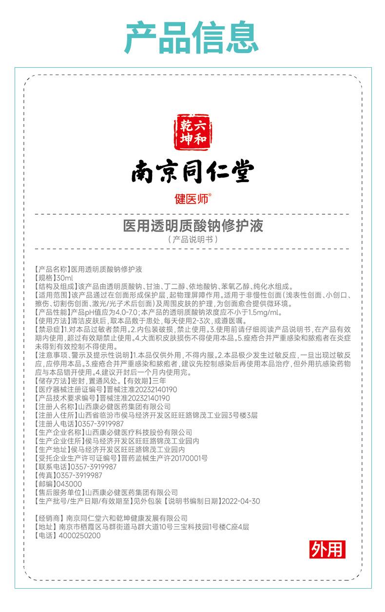 Nanjing Tongrentang Liuhe Qiankun Médico Hialuronato de Sodio Solución Reparadora Fabricante Punto Venta al Mayoreo Primera Generación