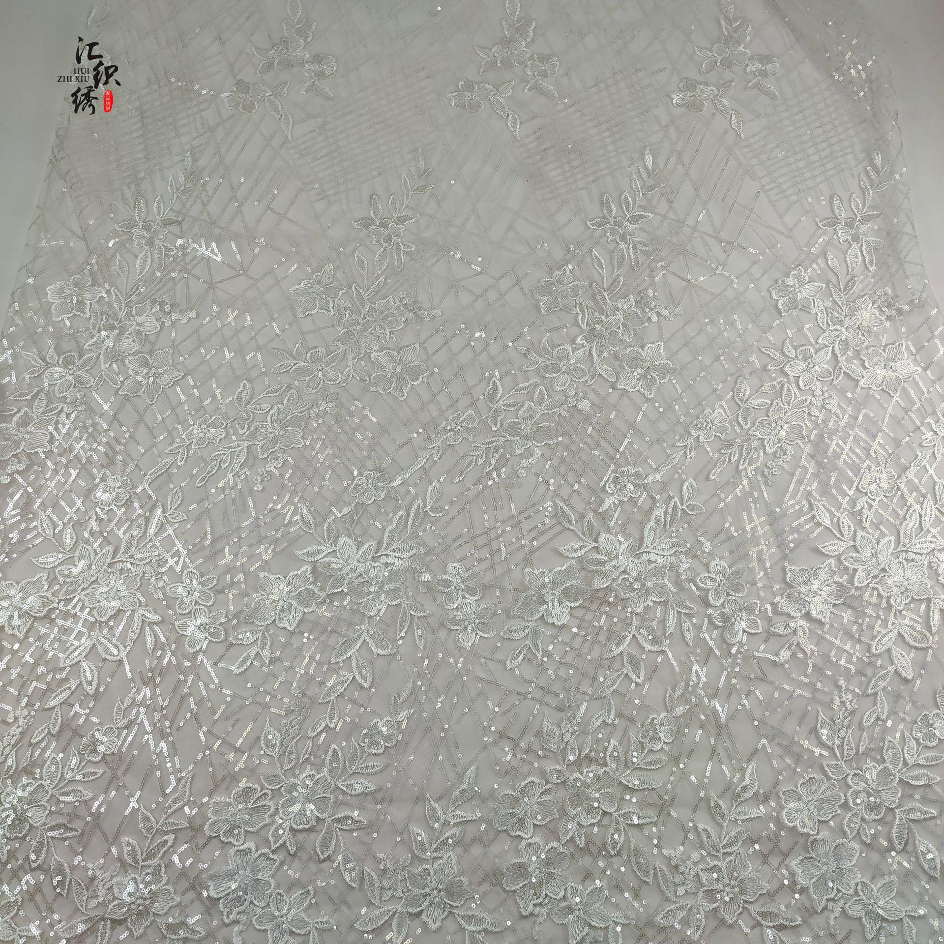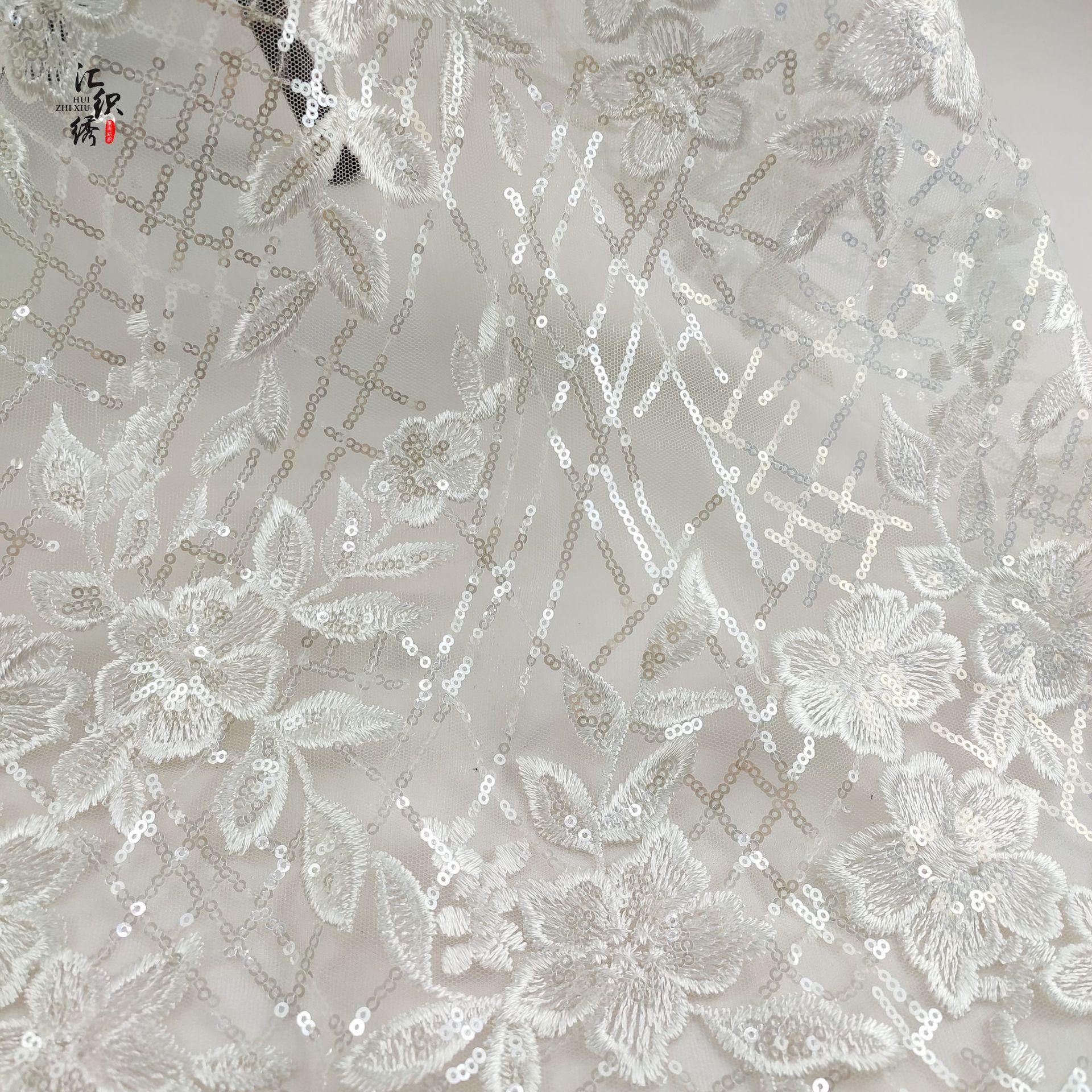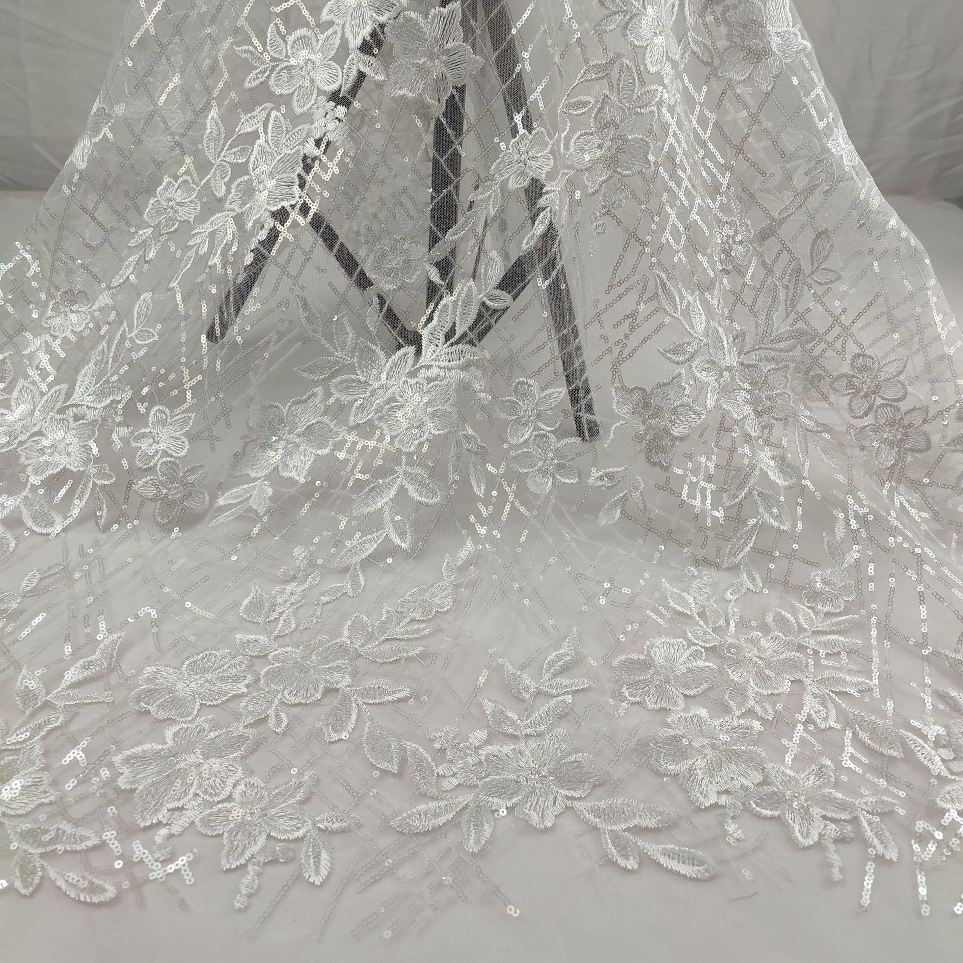 2023 Lentejuela Poliéster Ligero Bordado Rama Cuentas Tela Bordada Vestido Cabeza Hilo Tela Vestido de Novia Venta al por Mayor