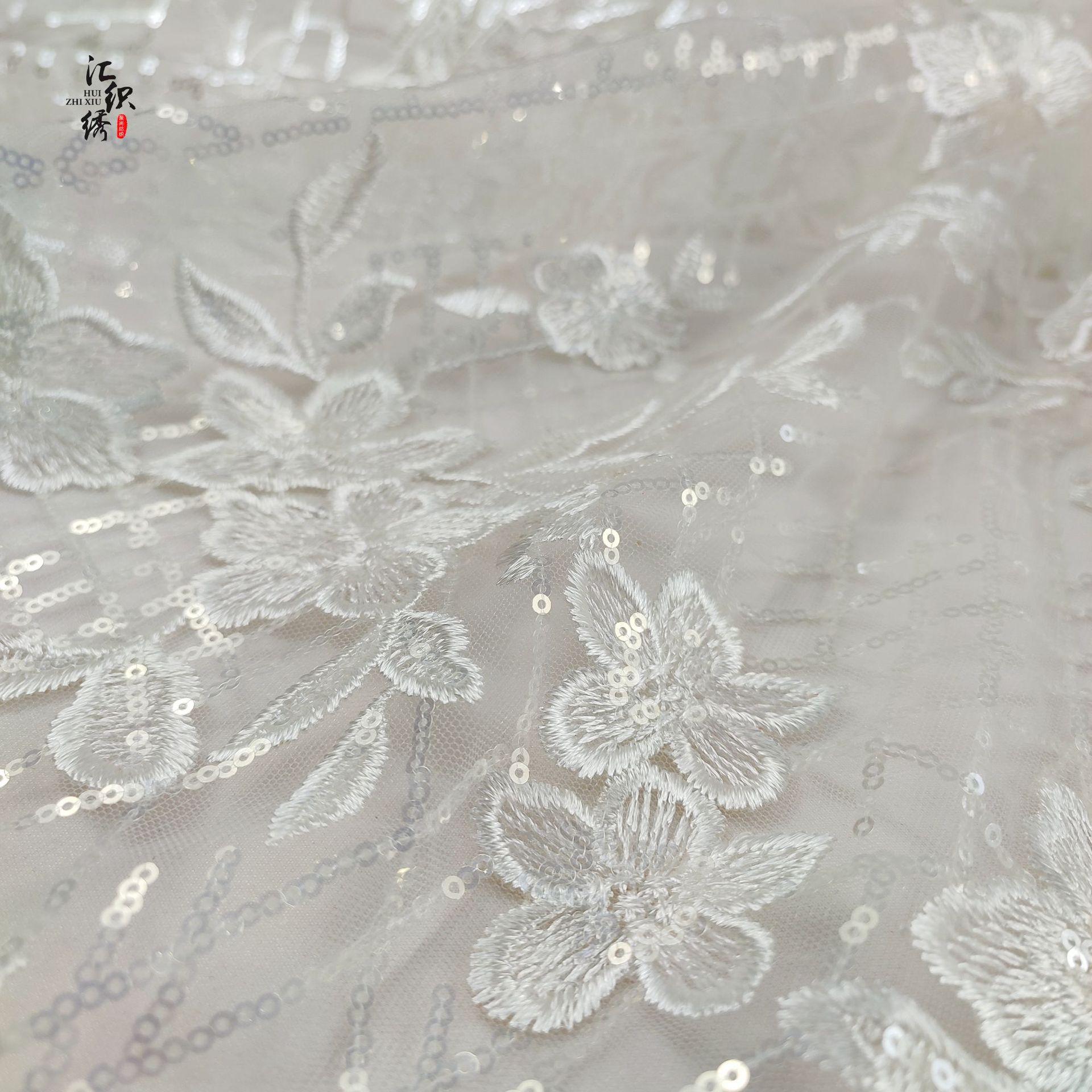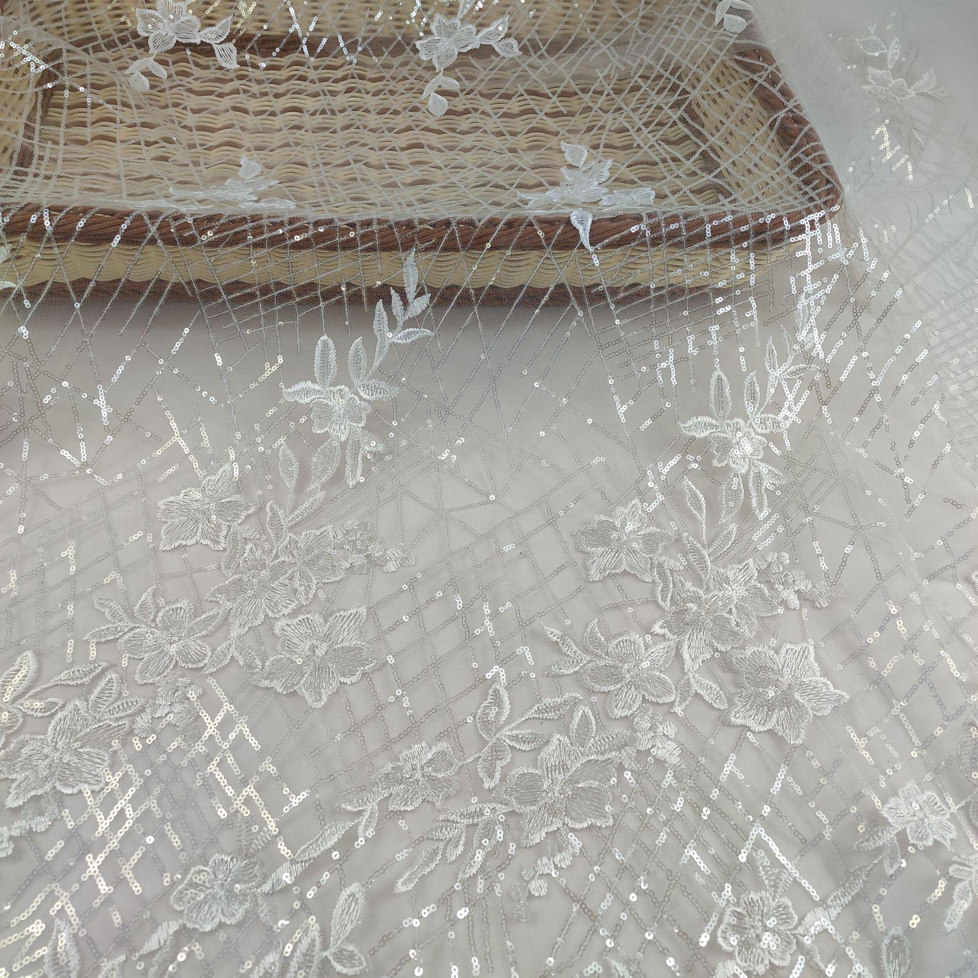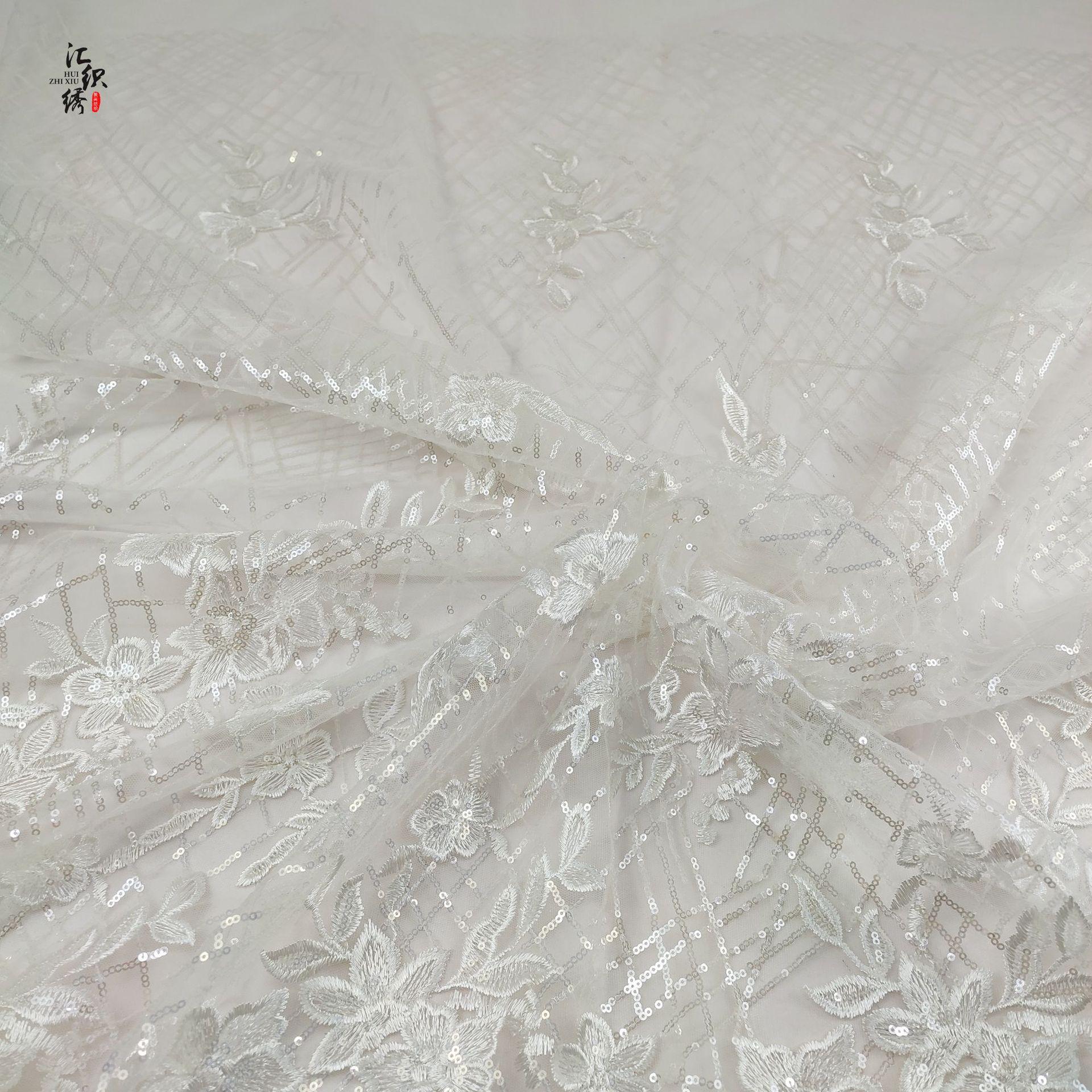 2023 Lentejuela Poliéster Ligero Bordado Rama Cuentas Tela Bordada Vestido Cabeza Hilo Tela Vestido de Novia Venta al por Mayor