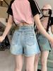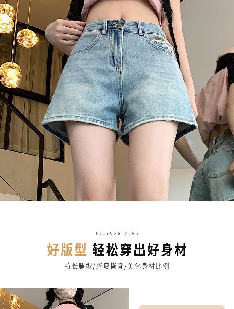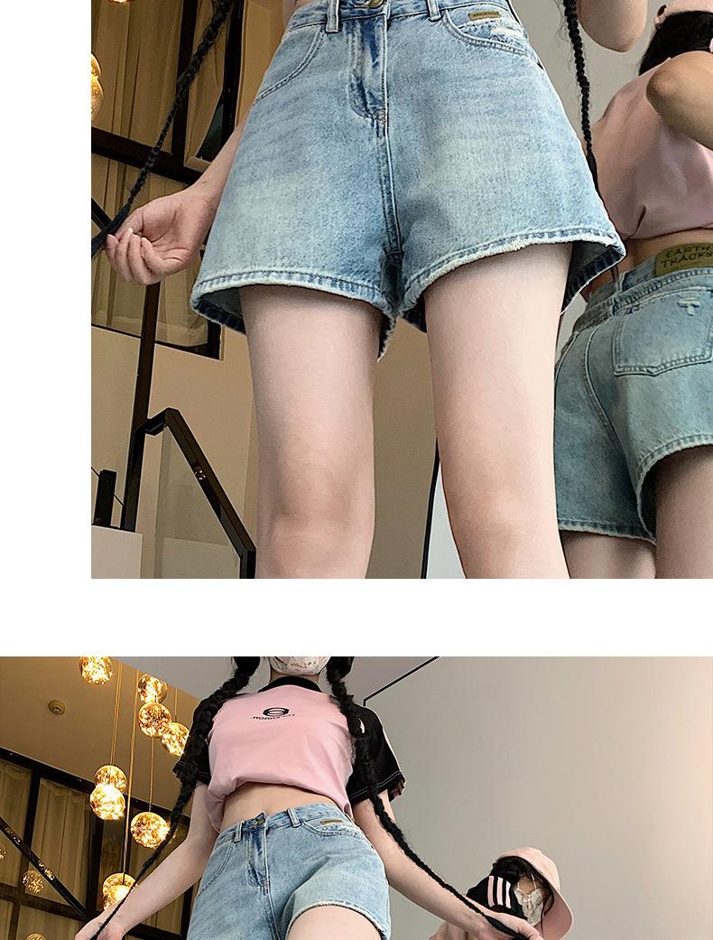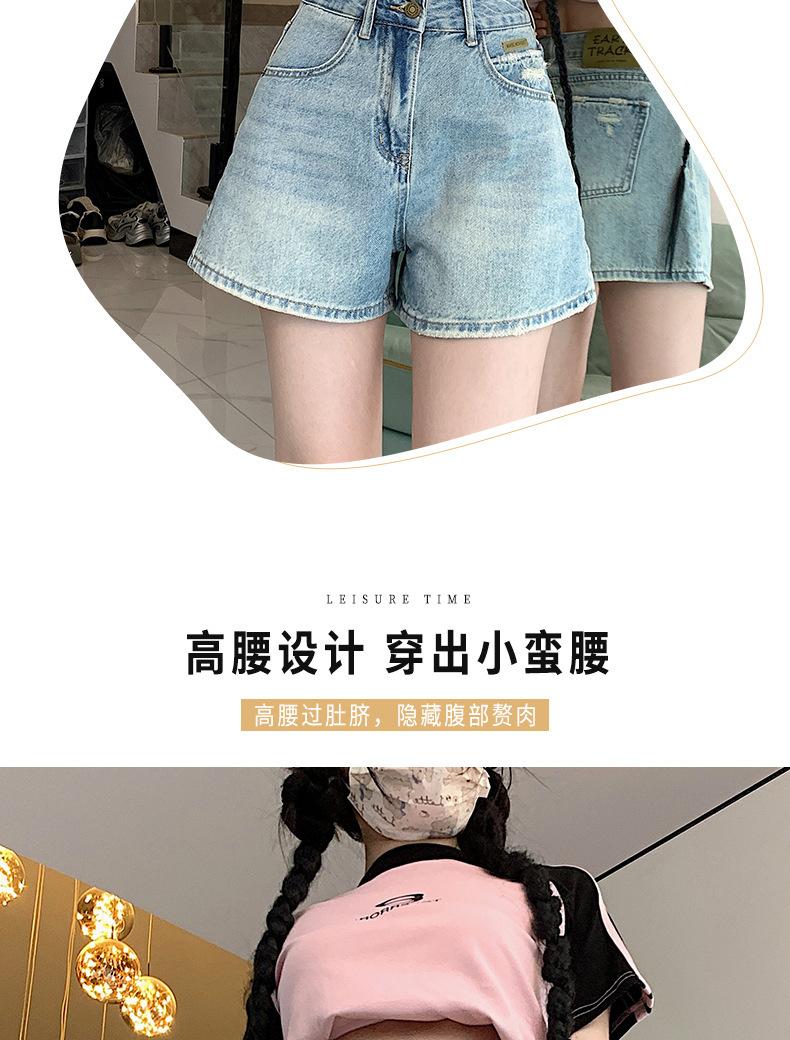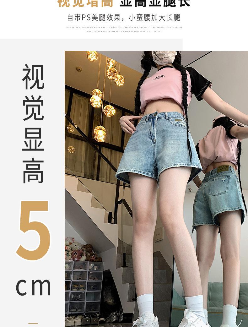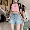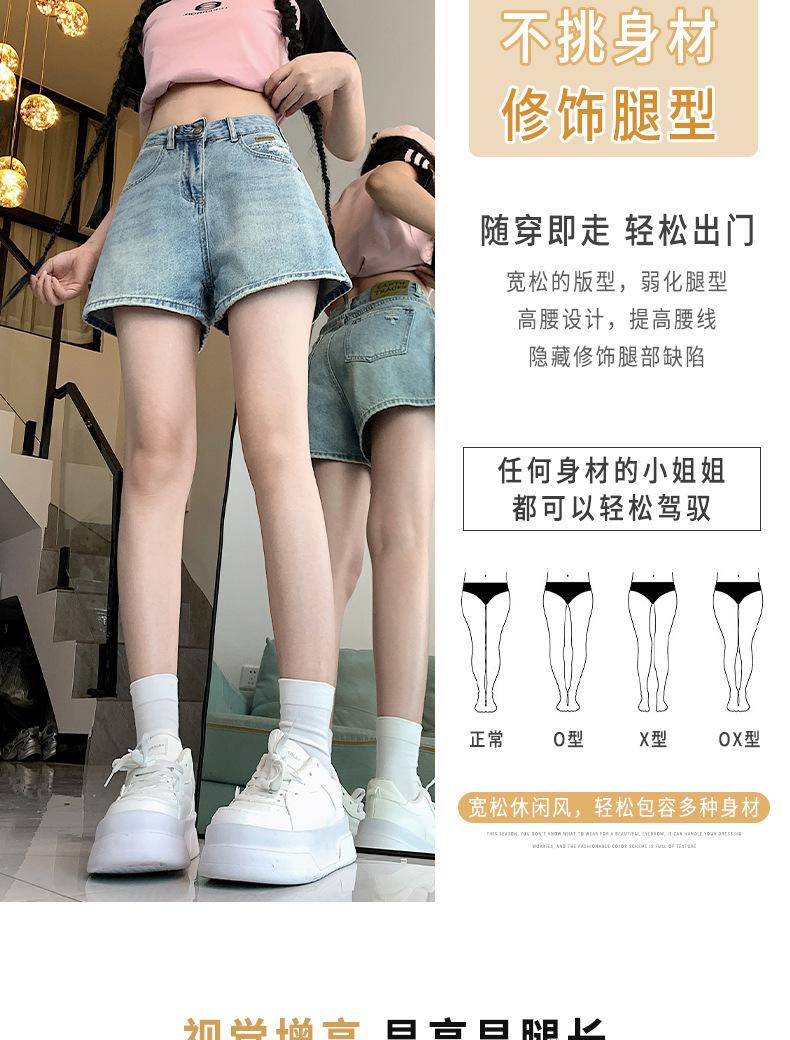 Shorts de mezclilla para mujer 2024 Nuevo verano Cintura alta Petite Adelgazantes Línea A Retro Versátil Pierna ancha Pantalones cortos