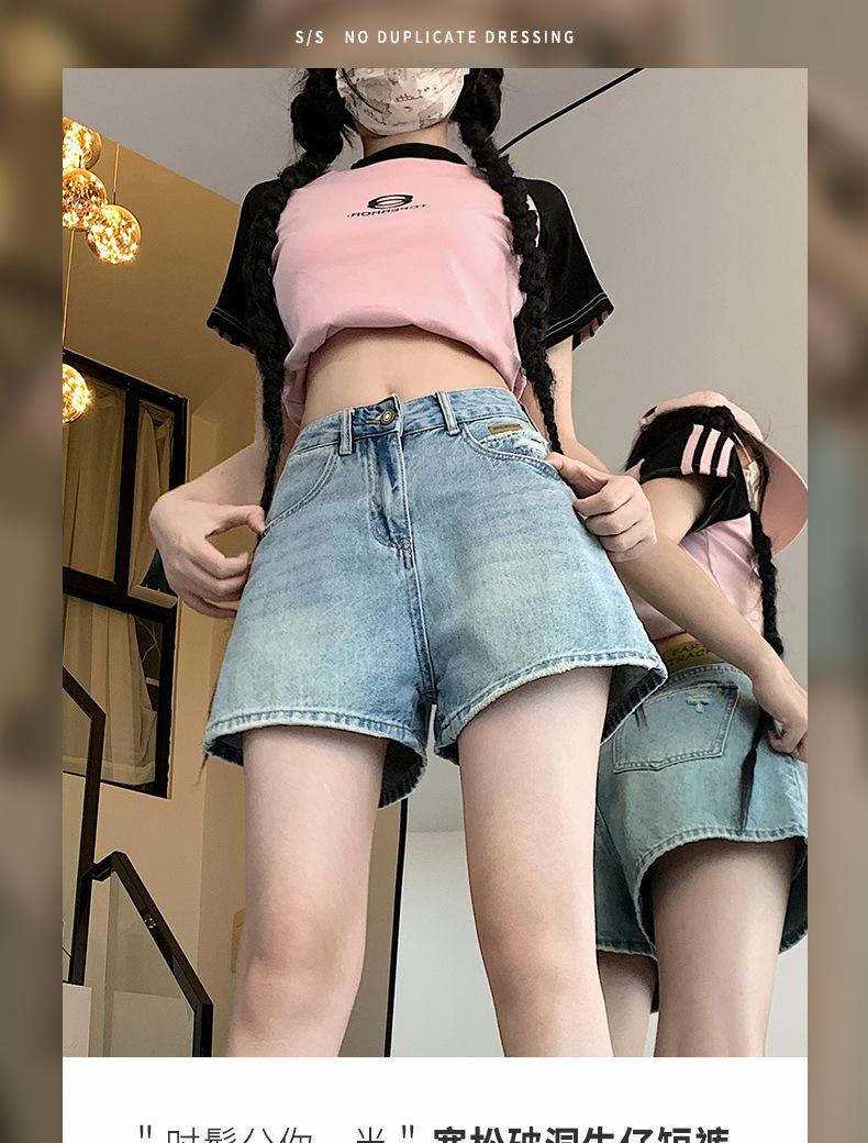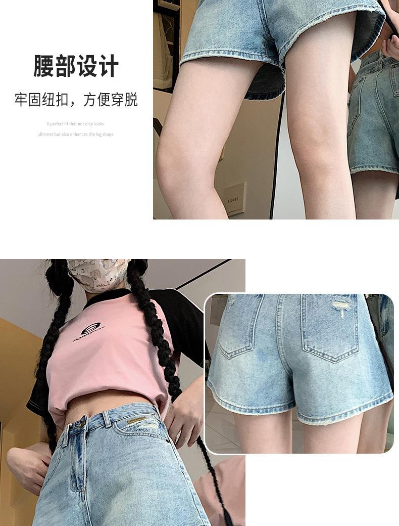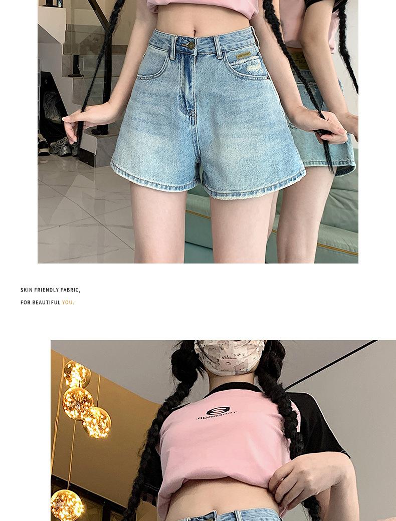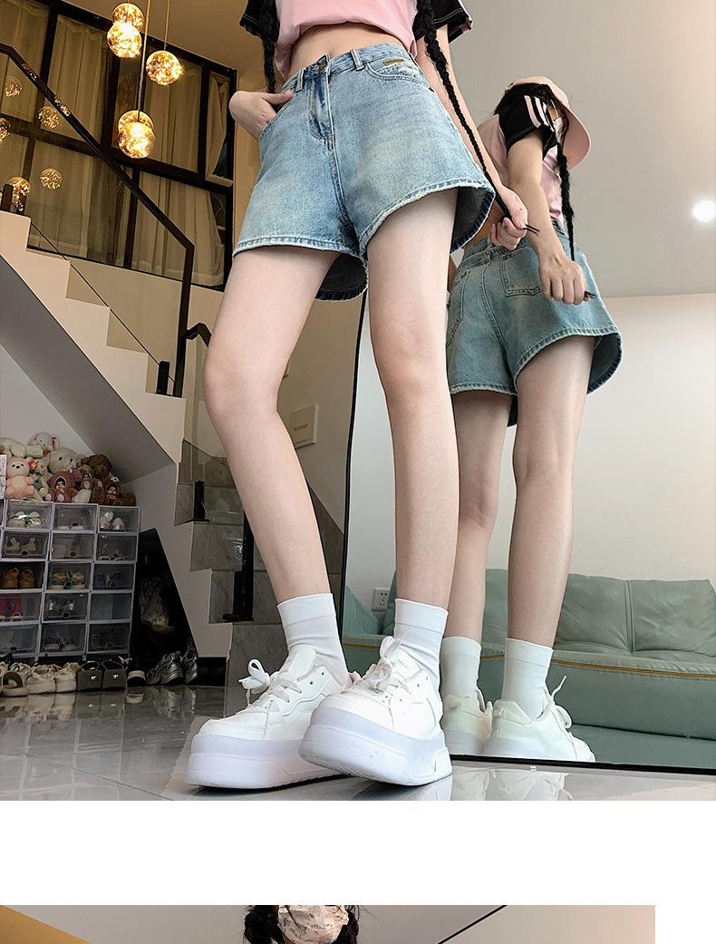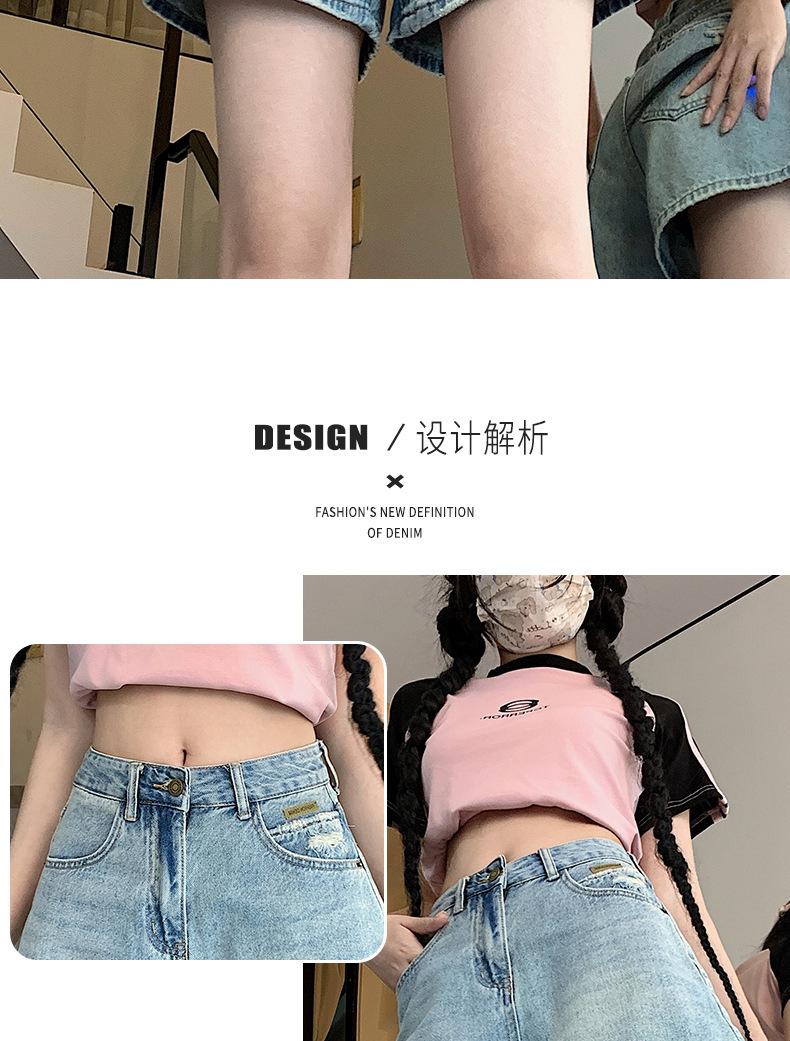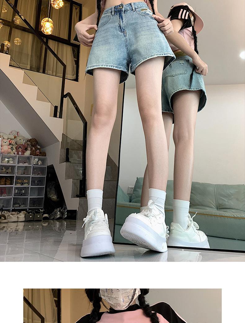 Shorts de mezclilla para mujer 2024 Nuevo verano Cintura alta Petite Adelgazantes Línea A Retro Versátil Pierna ancha Pantalones cortos
