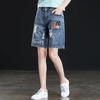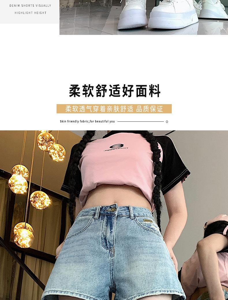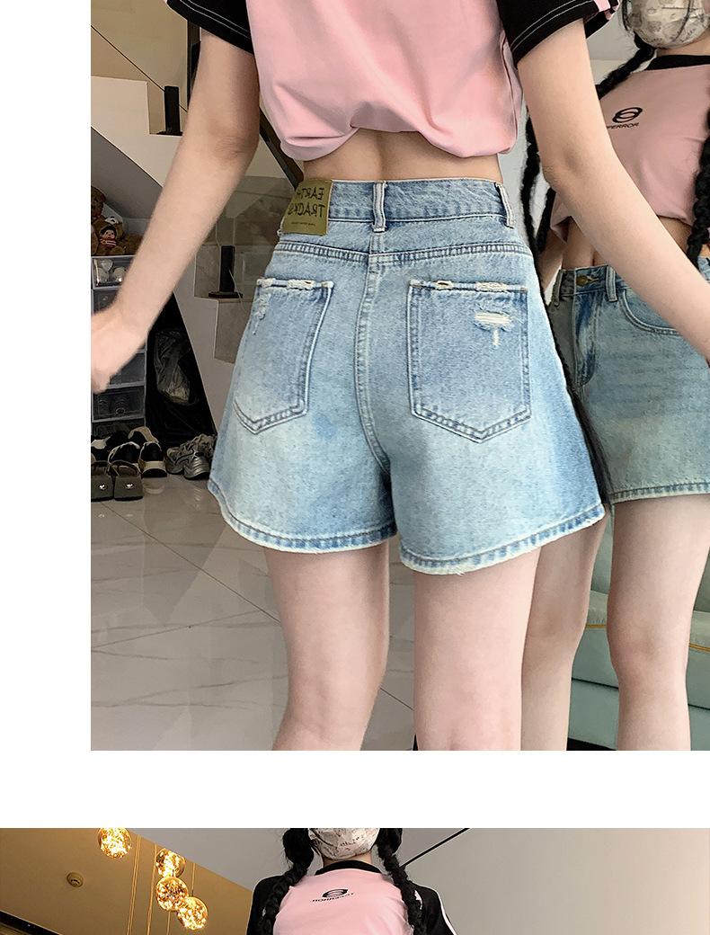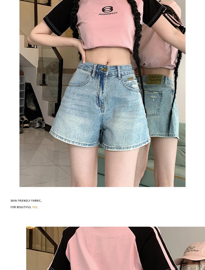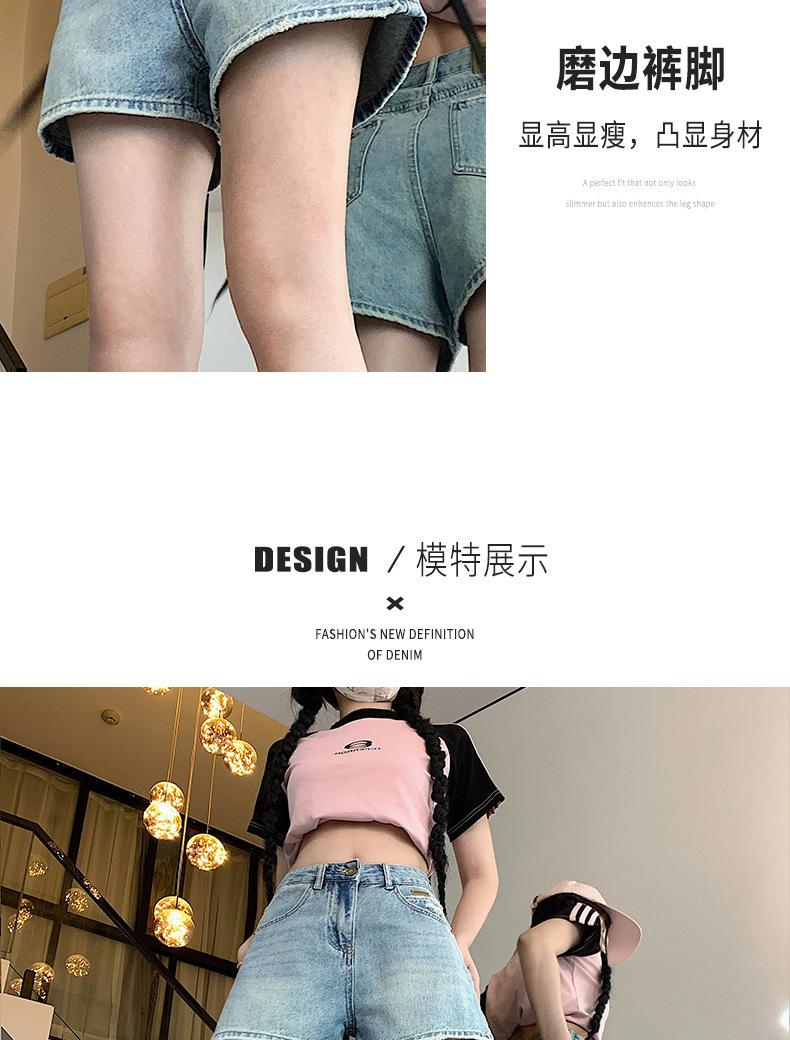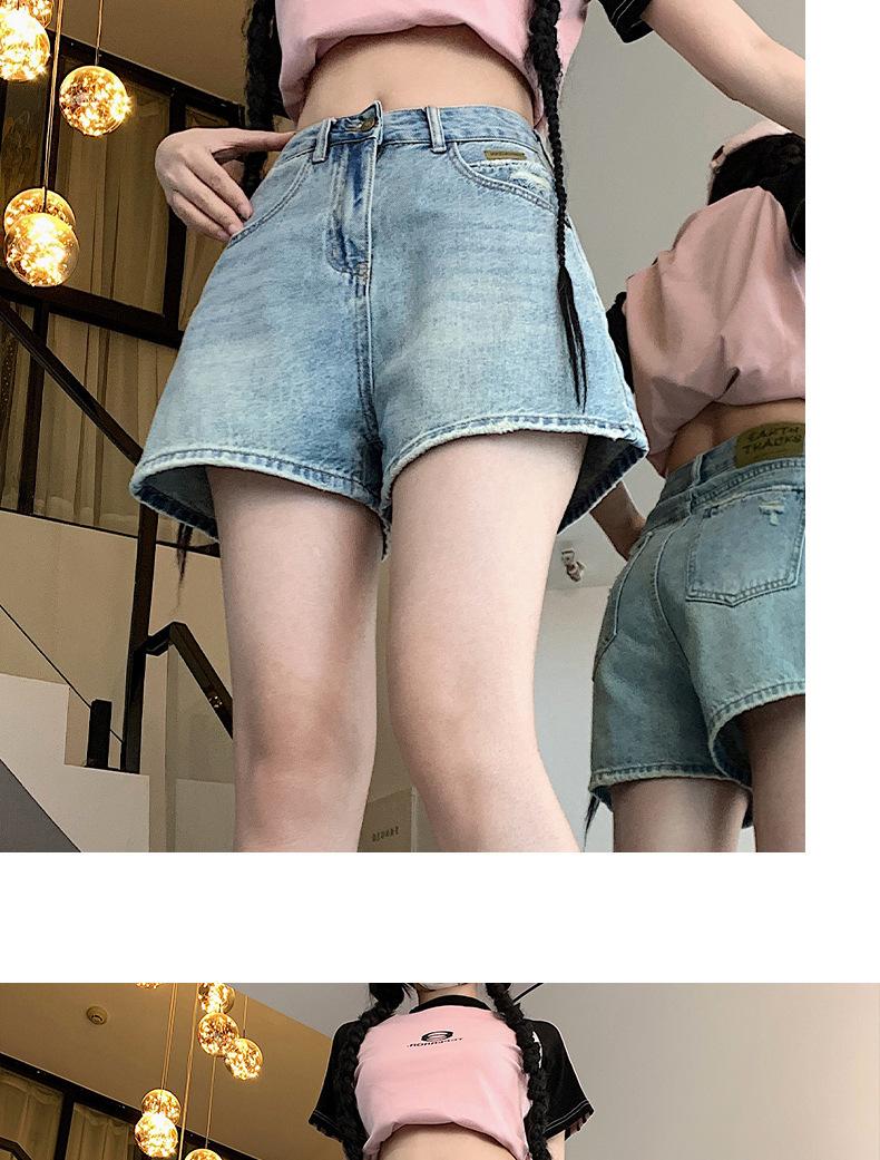 Shorts de mezclilla para mujer 2024 Nuevo verano Cintura alta Petite Adelgazantes Línea A Retro Versátil Pierna ancha Pantalones cortos