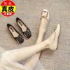 Zapatos de Cuero Pequeños para Mujer 2023 Verano Nuevo Estilo Británico Suela Blanda Zapatos de Una Capa Primavera y Otoño Uso Bidireccional Fondo Plano Mocasines con Hebilla de Caballo para Mujer
