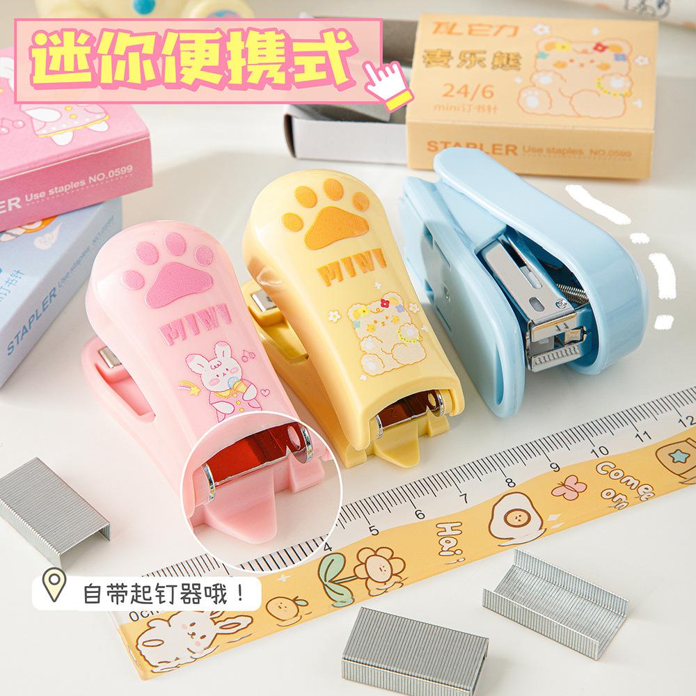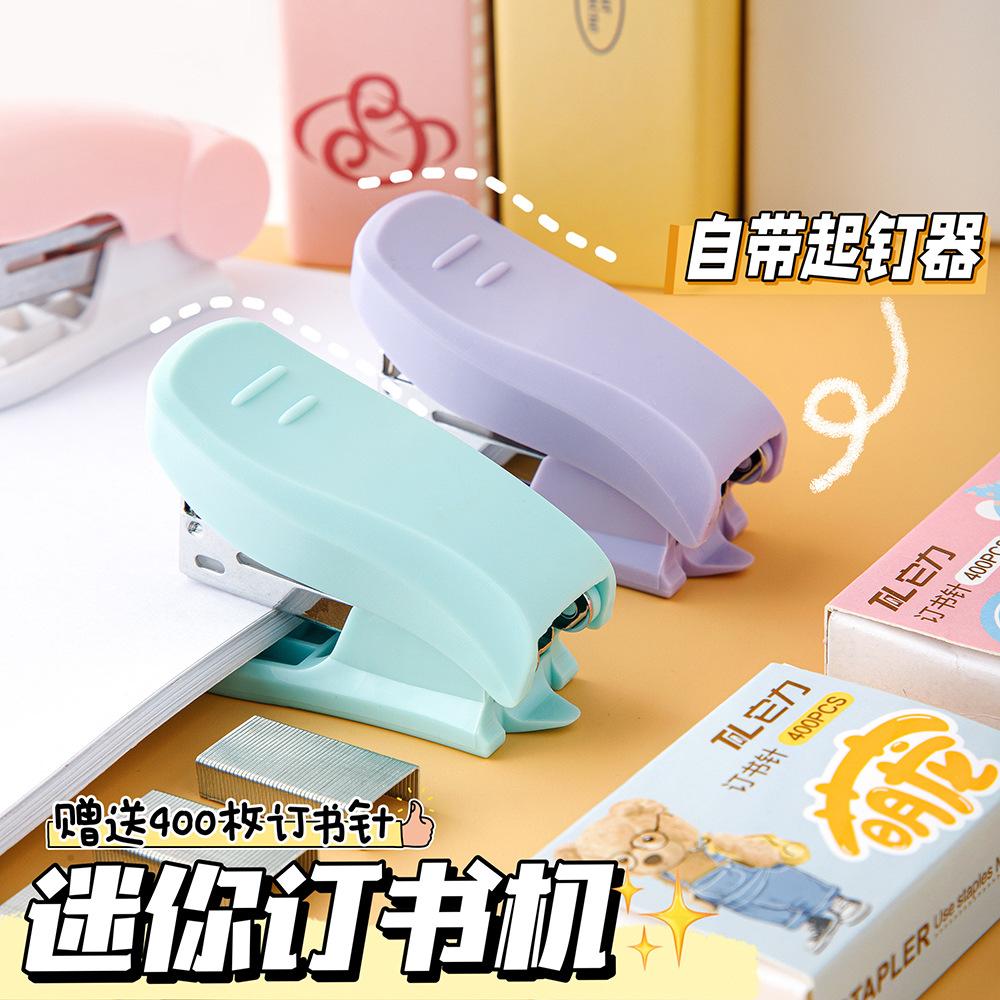 Grapadora de Dibujos Animados Mini tamaño pequeño traje Lindo Papelería para Estudiantes Grapadora Multifuncional Grapadora para Papel de Prueba