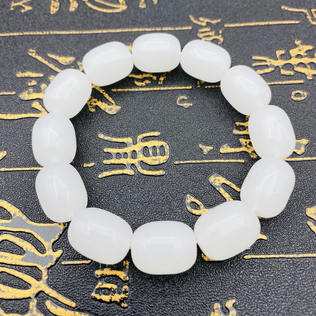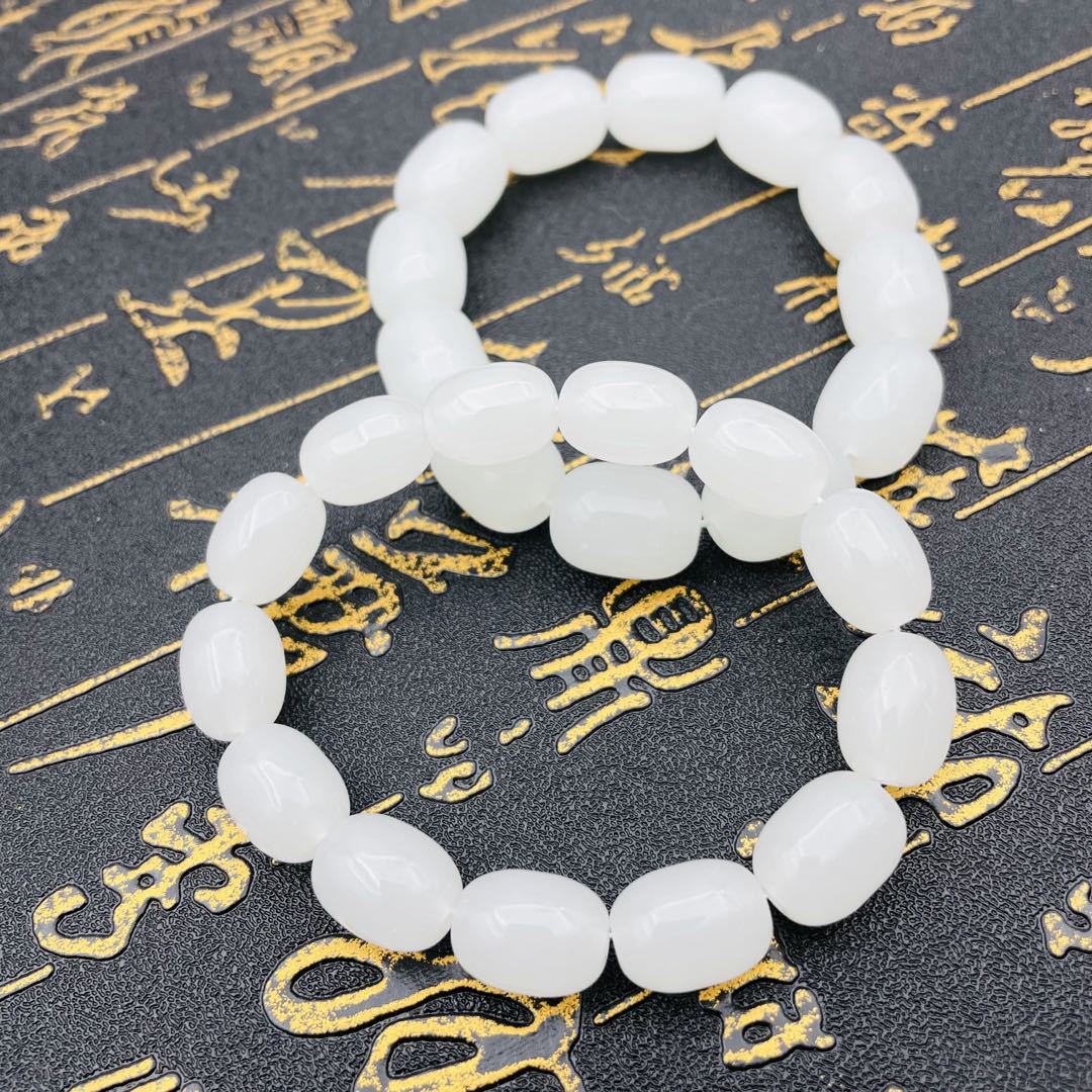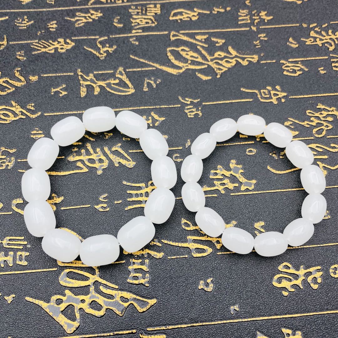 8cm white jade bracelet, 10cm white jade bracelet, 12cm white jade bracelet, 10x14 white jade bucket bead brac...