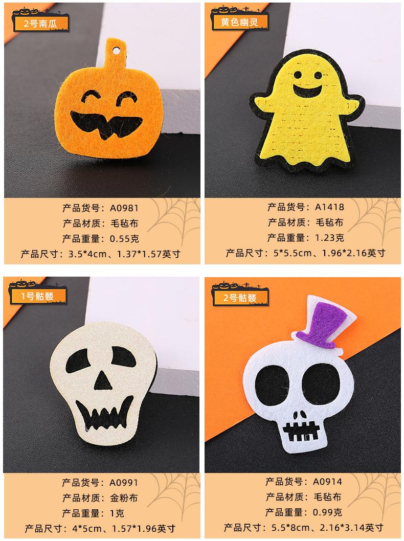 Decoración de Halloween fantasma accesorios parche cabeza de calabaza adornos colgantes decoraciones de esqueleto pegatinas de tela comercio exterior mayoreo spot