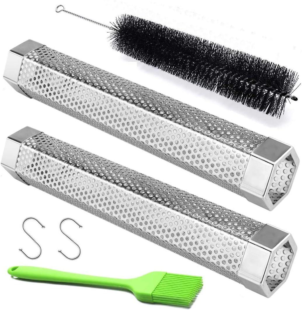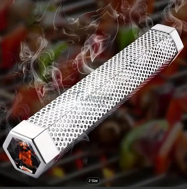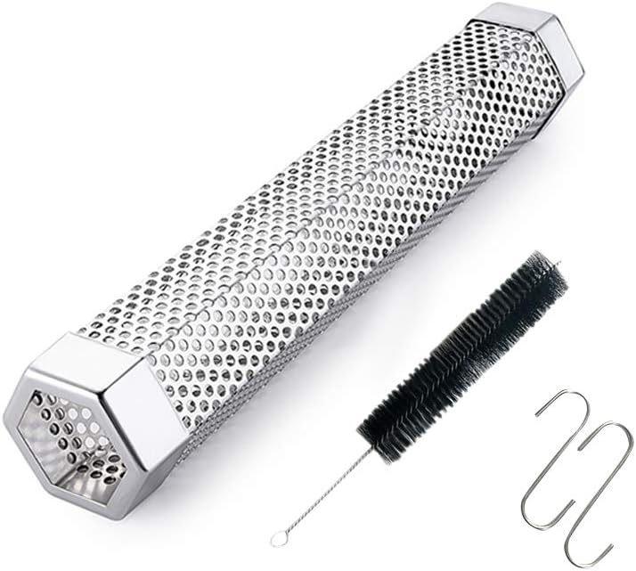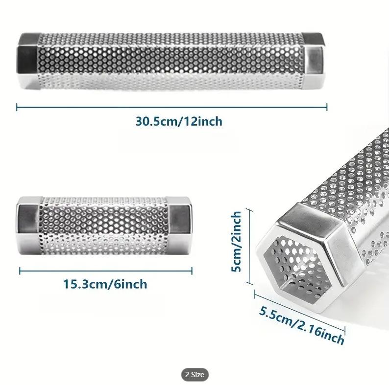 Tubo ahumador hexagonal de 12 pulgadas para exteriores, barbacoa, carbón, ahumado, malla, acero inoxidable 304, tubo de malla filtrante de agujeros redondos