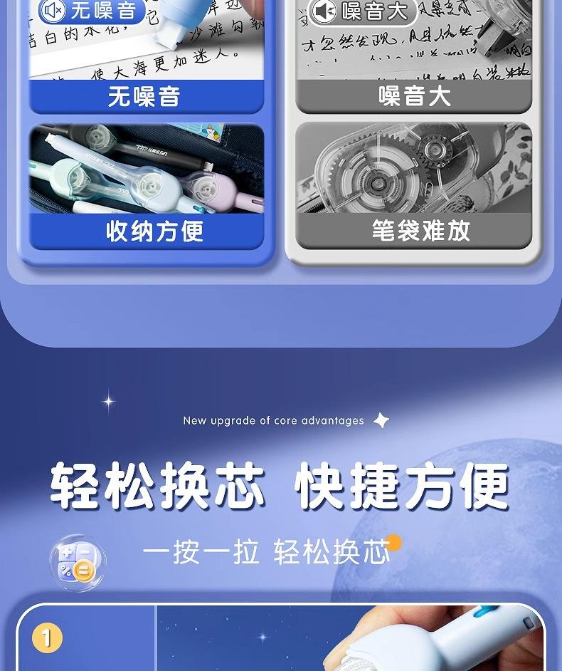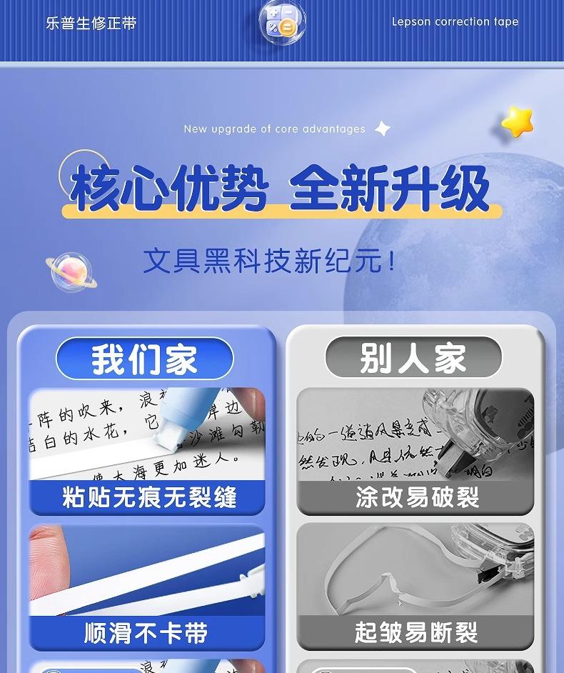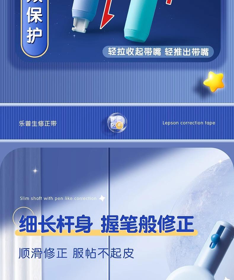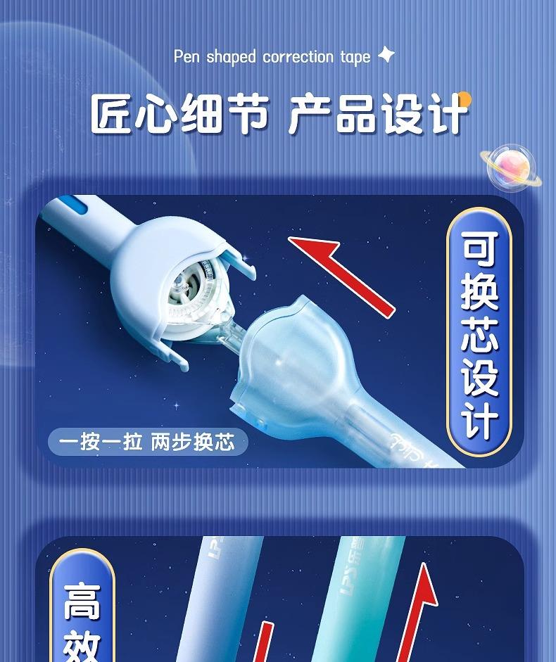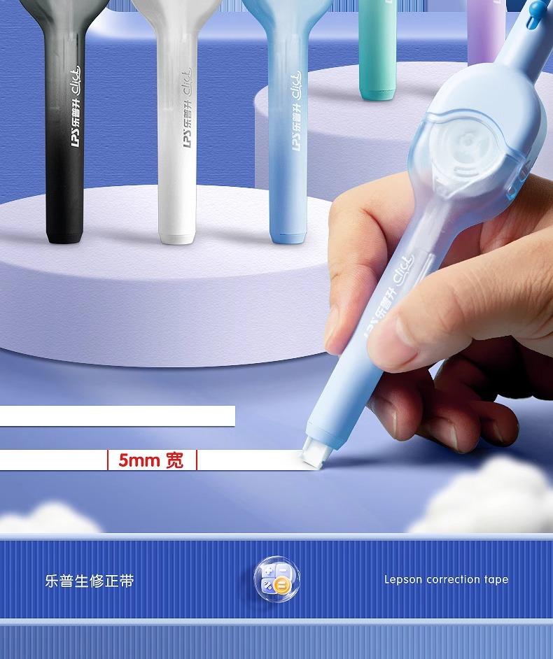 Cinta correctora LePasheng Push Pen para estudiantes, cinta correctora portátil con núcleo reemplazable, cinta correctora de alto valor de color