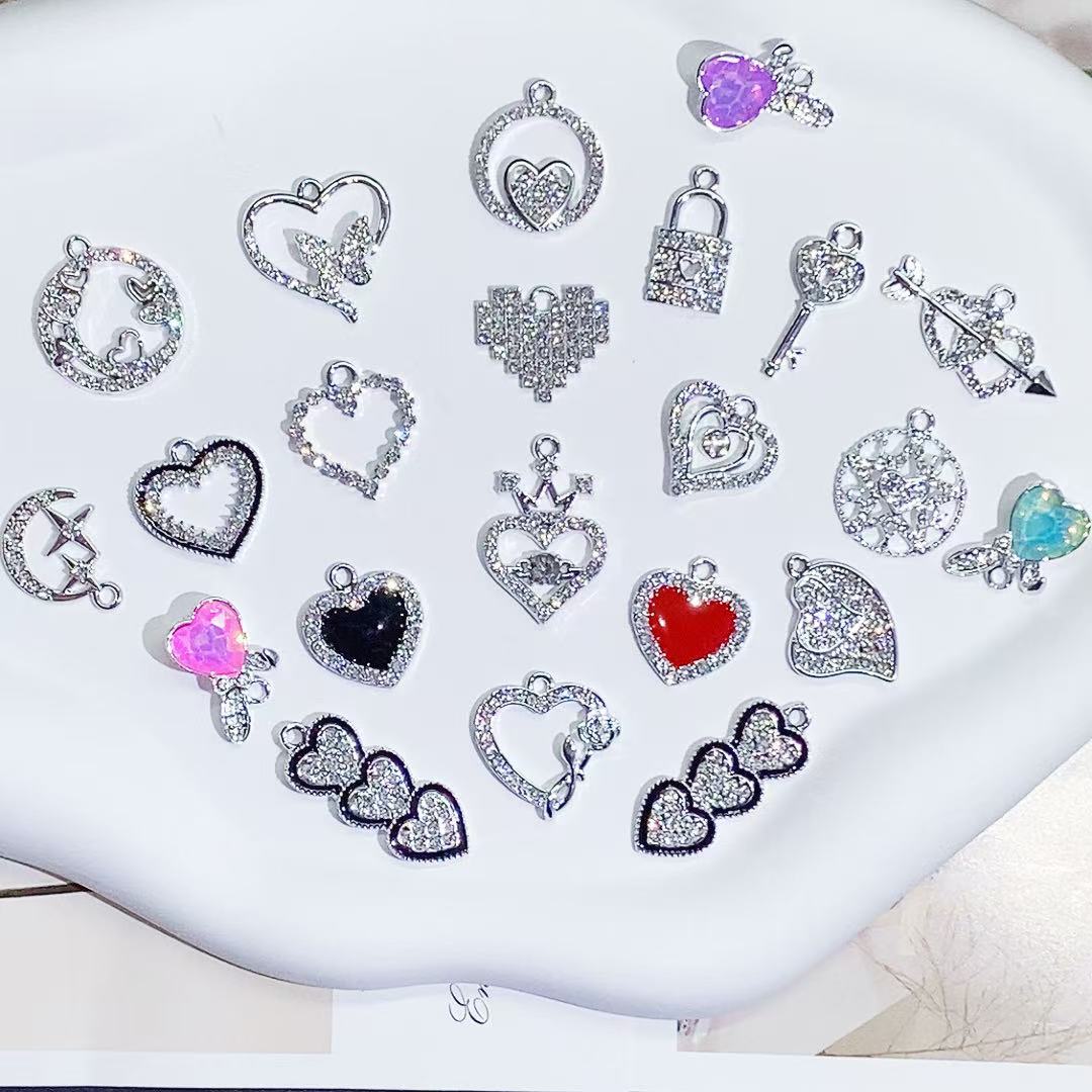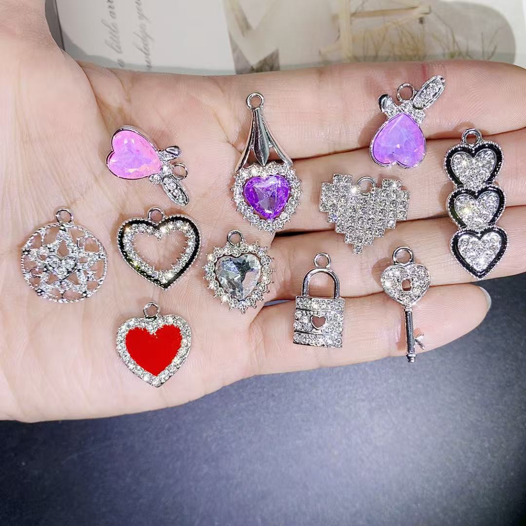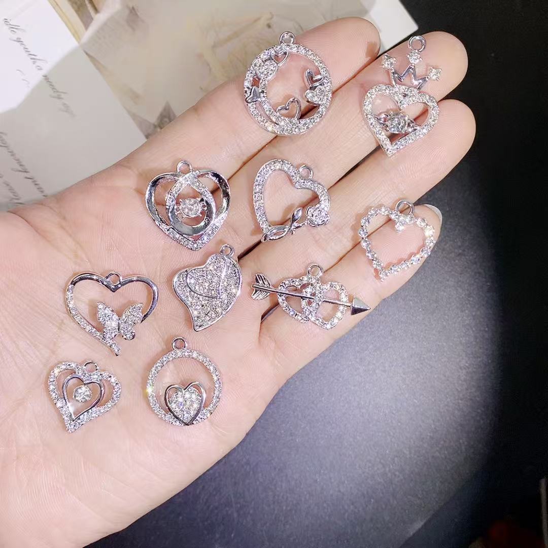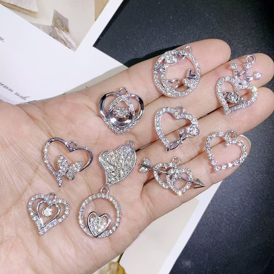 Moda Serie Corazón Diamante Completo Colgantes Pequeños DIY Hecho a Mano Aretes Collar Pulsera Colgante Material para Joyería Accesorios