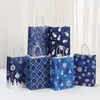 Bolsa de Regalo Navideño Azul Copo de Nieve Muñeco de Nieve Campana Papel Kraft Bolsa de Mano para Fiesta Bolsa de Regalo Festivo