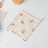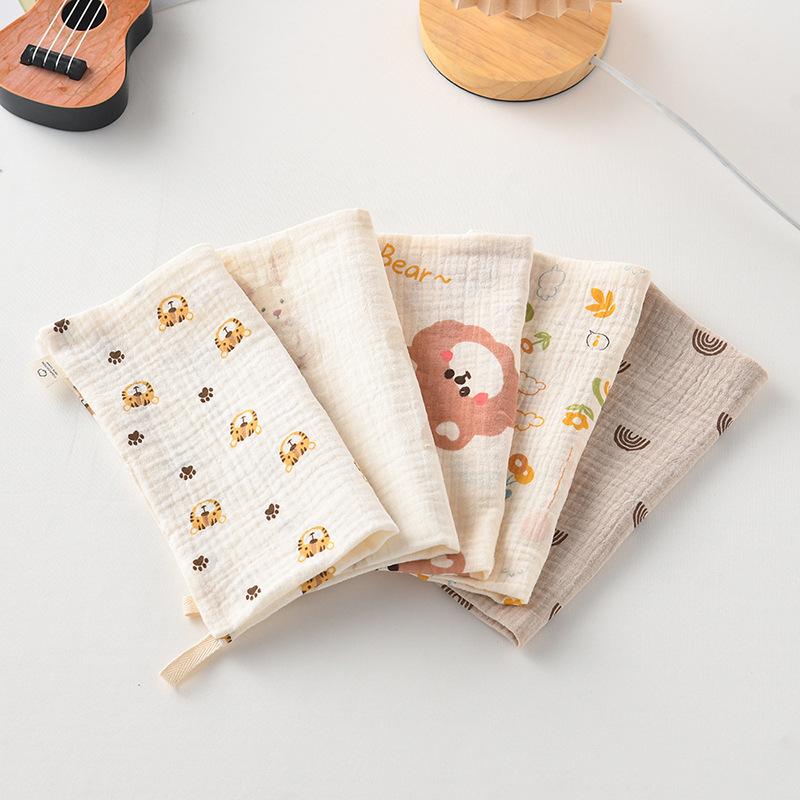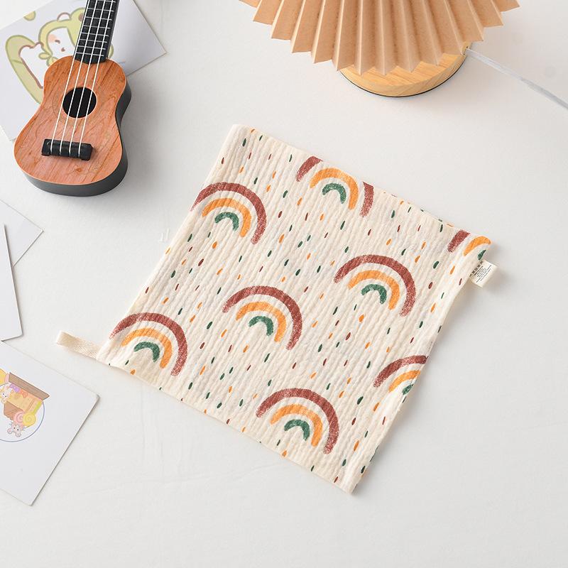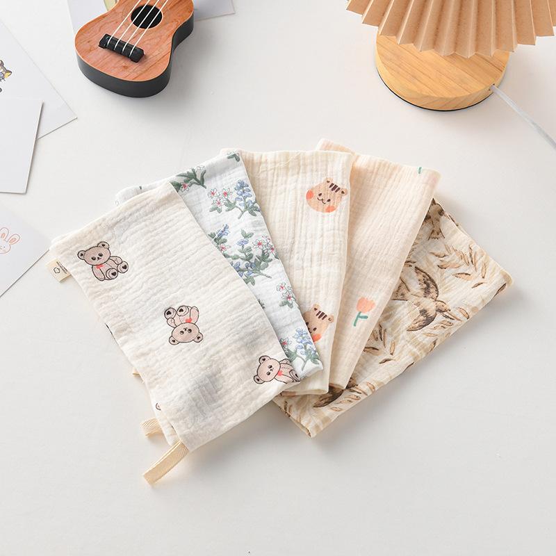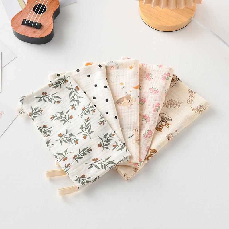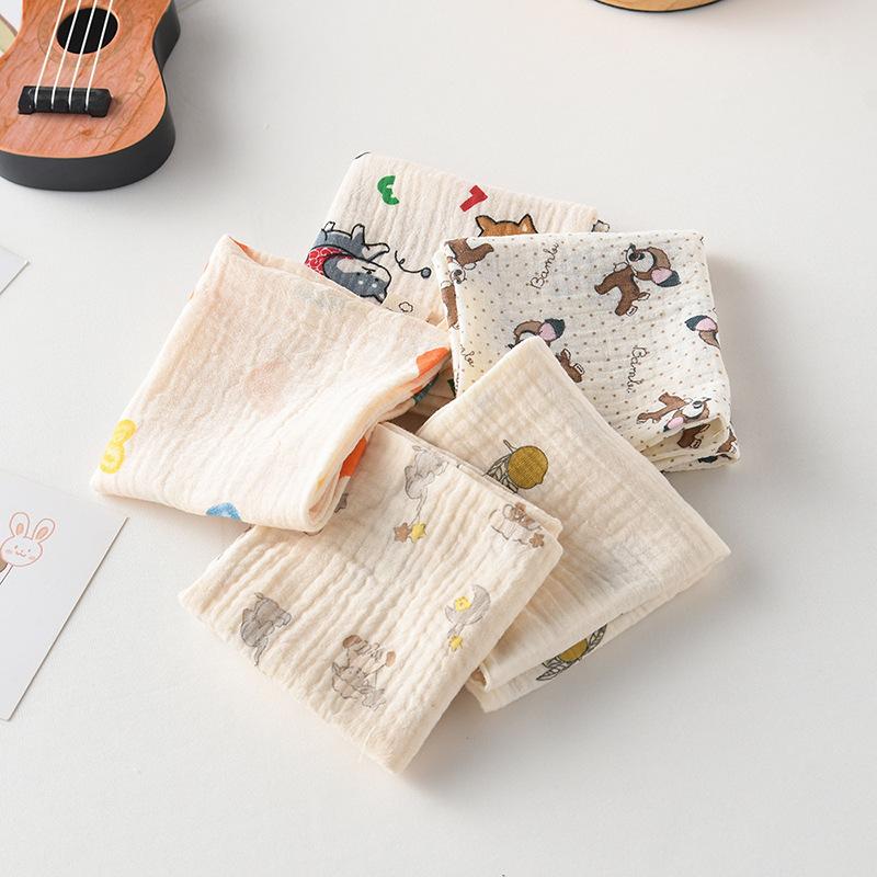 Hecho de gasa crepé de burbujas, es suave, transpirable, inspección de producto terminado, seguro y confiable. Una variedad de estampados están disponibles. Impresión a doble cara, línea de presión interna plegada, cuatro lados sin marcas para un mejor uso, cordón de algodón puro, adecuado para bebés. Se ve muy bien en los bebés, tan lindo, ¡realmente se ve bien en cualquiera! Empaque individual en bolsa con orificio para colgar con cremallera, se puede colgar o exhibir.