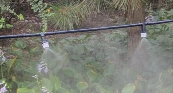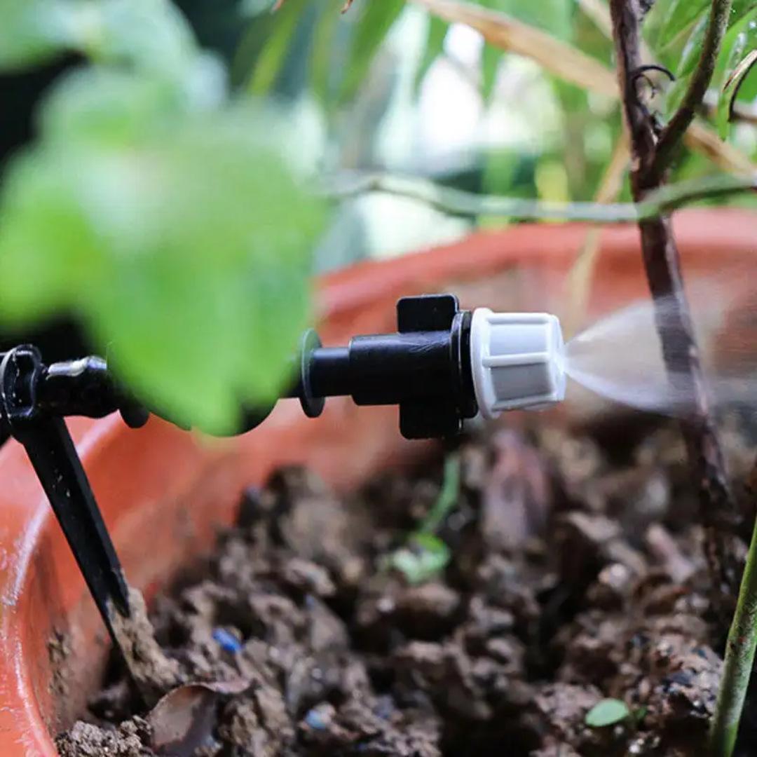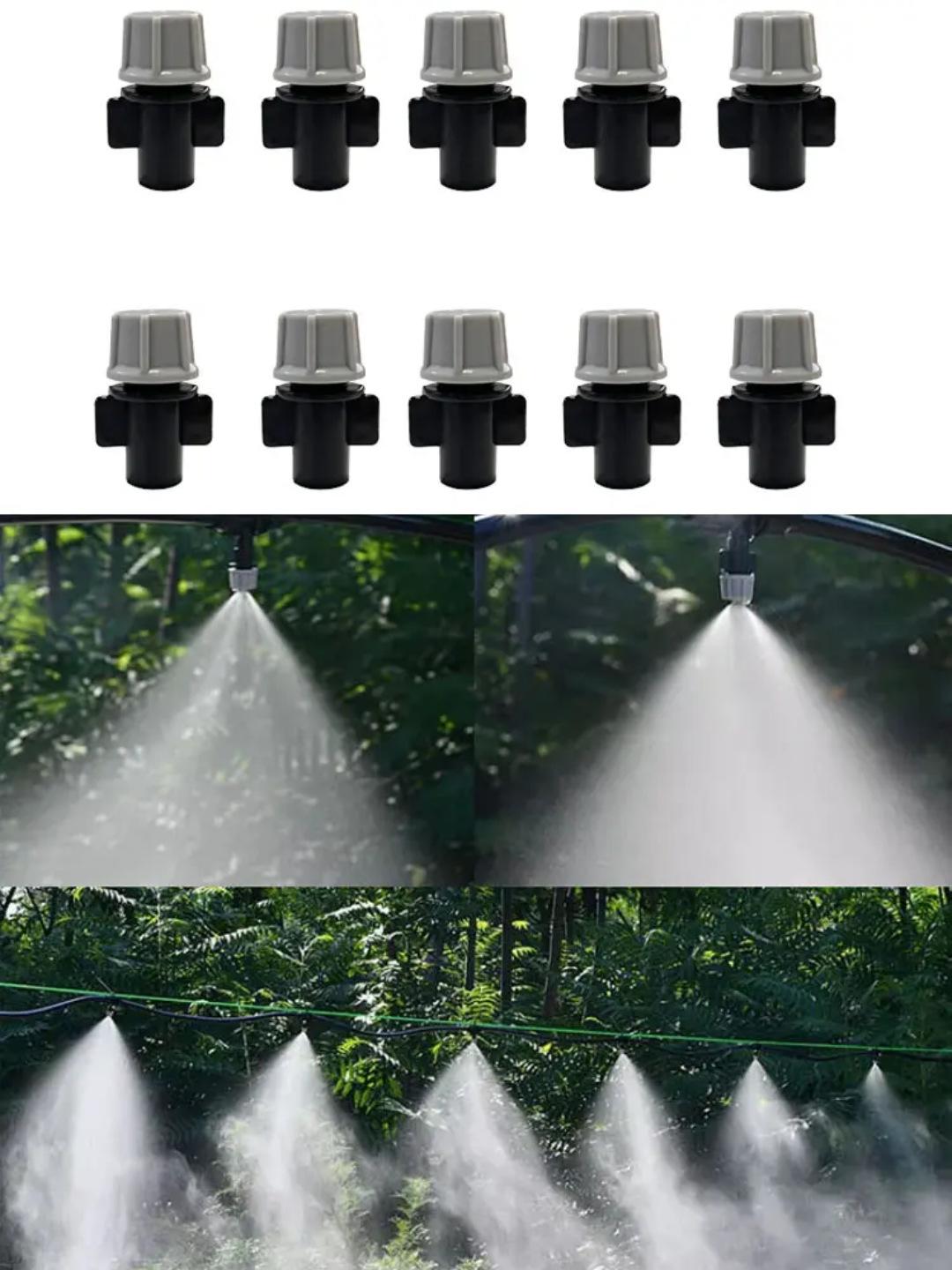 Sistema de riego de jardín con aspersor atomizador gris, dispositivo de riego automático con una sola salida, aspersor de riego por enfriamiento