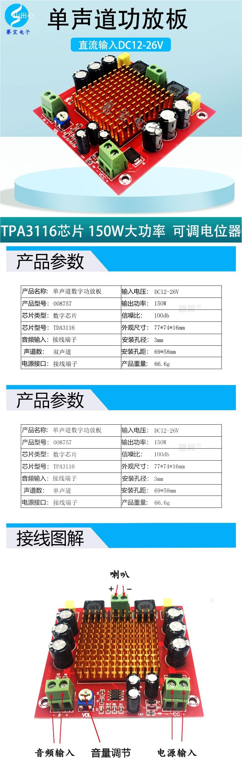 Mono 150w power amplifier board [tpa3116 chip], Tpa3116 mono 100w power amplifier board [dc12-26v], Tpa3116 mo...