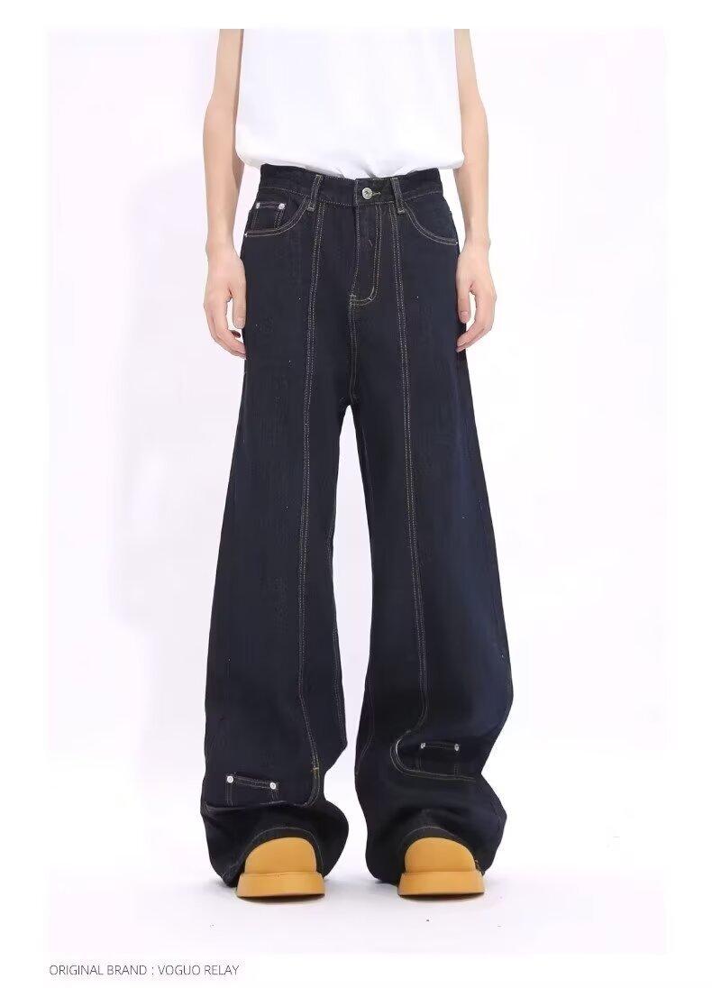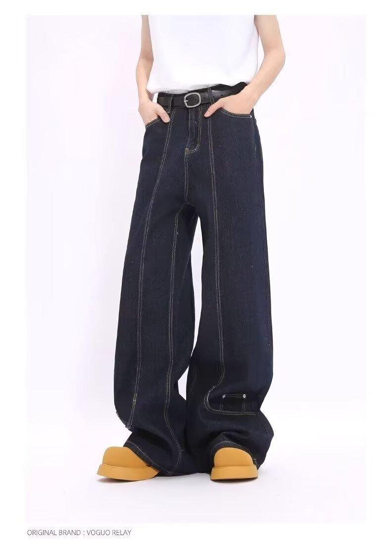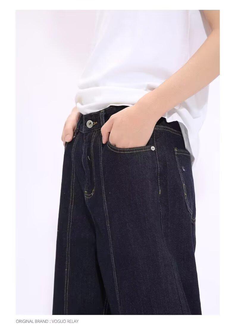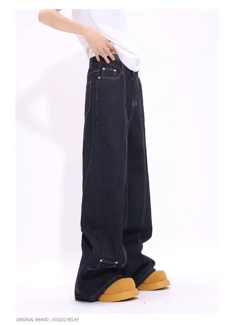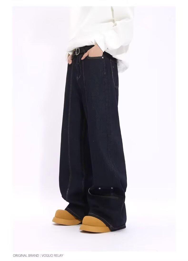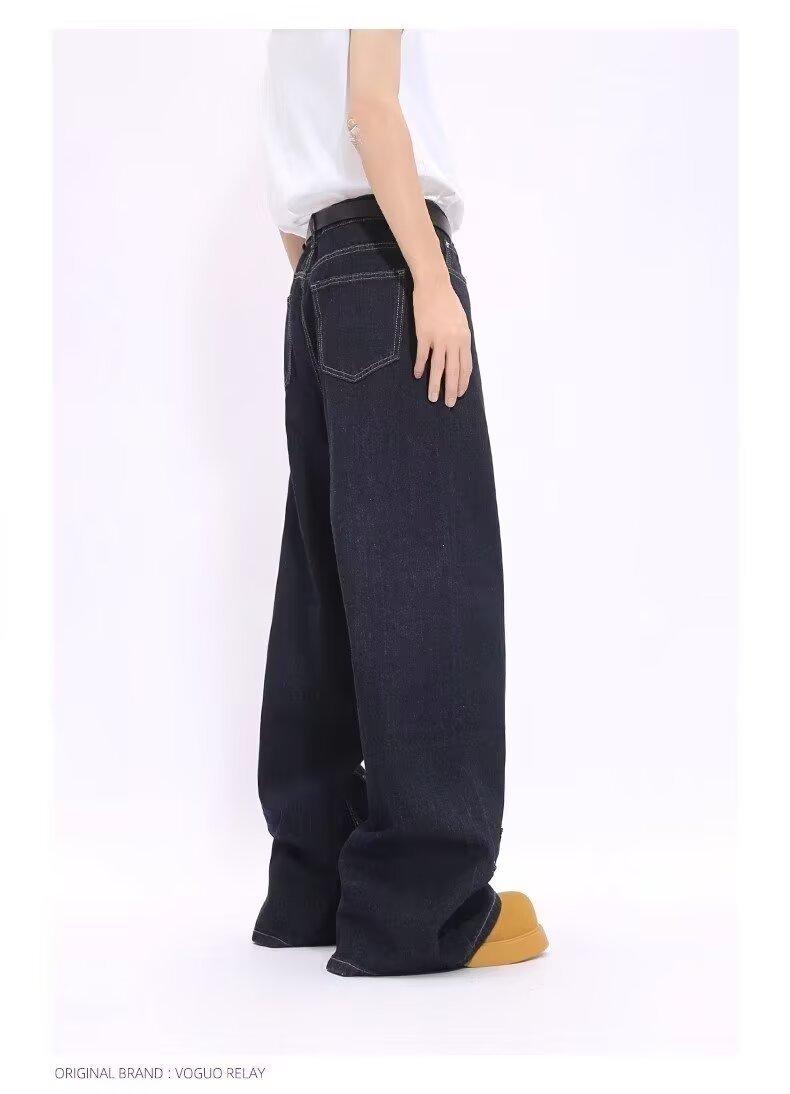 Jeans de Mezclilla Lavada Americano Retro Desgastado de Pierna Recta para Hombre, Diseño de Marca de Moda High Street, Pantalones Largos Holgados de Pierna Ancha para Mujer
