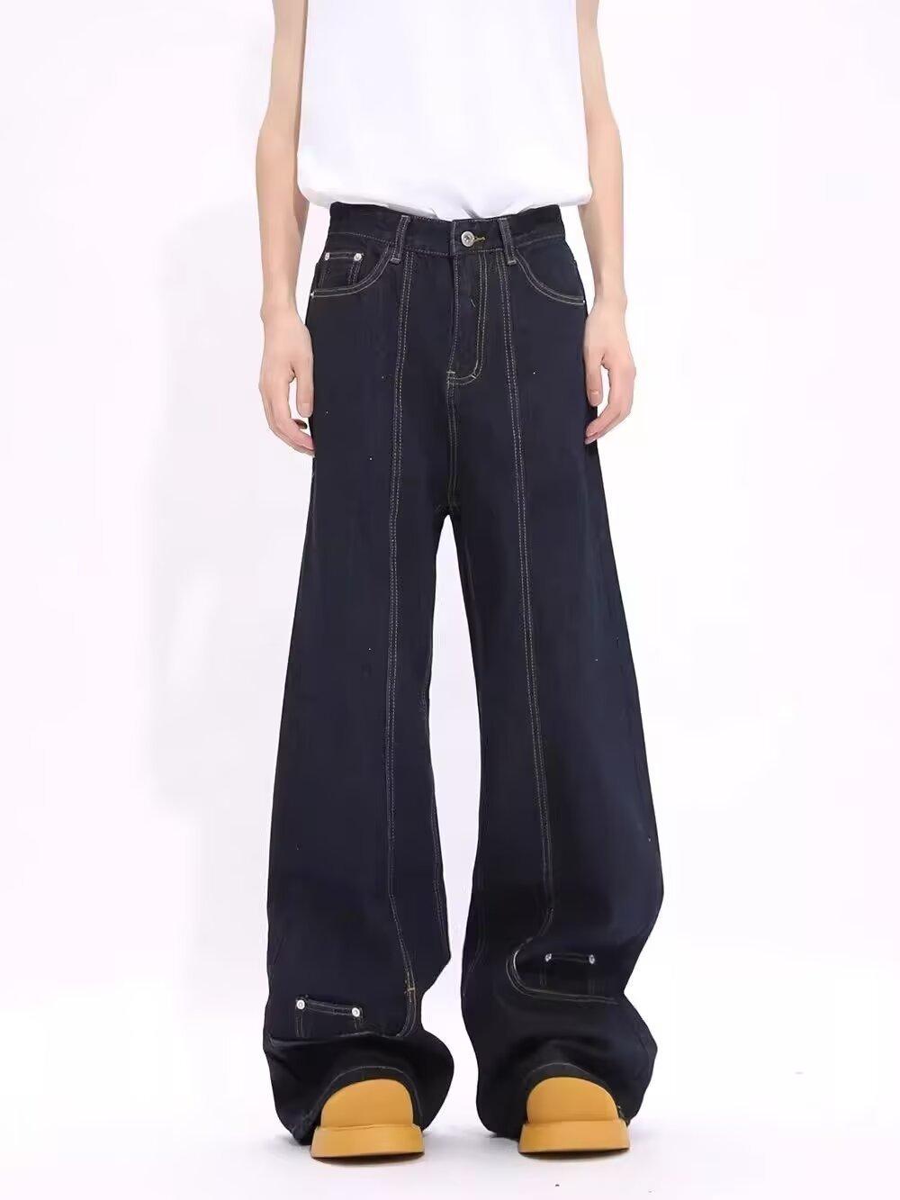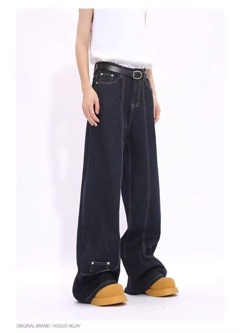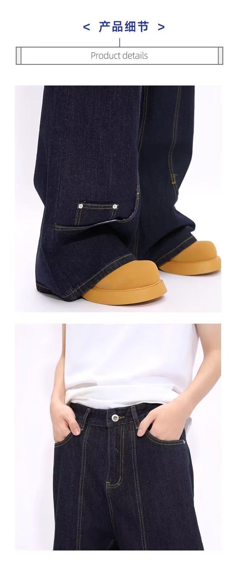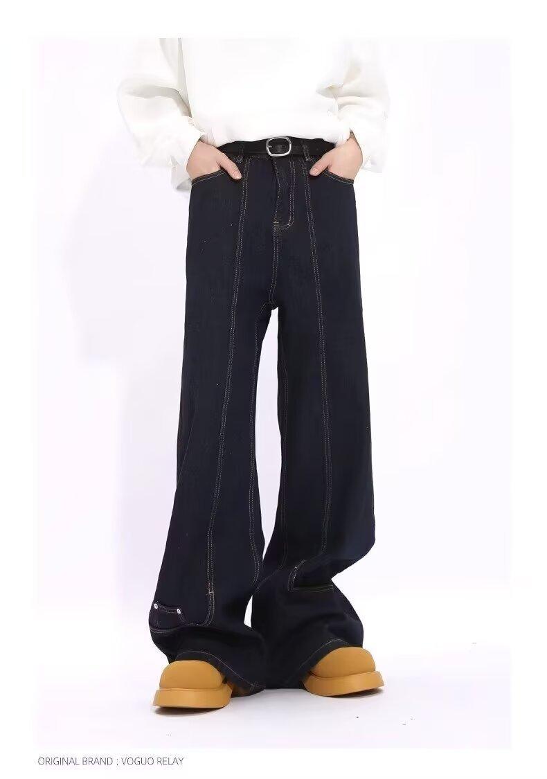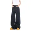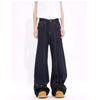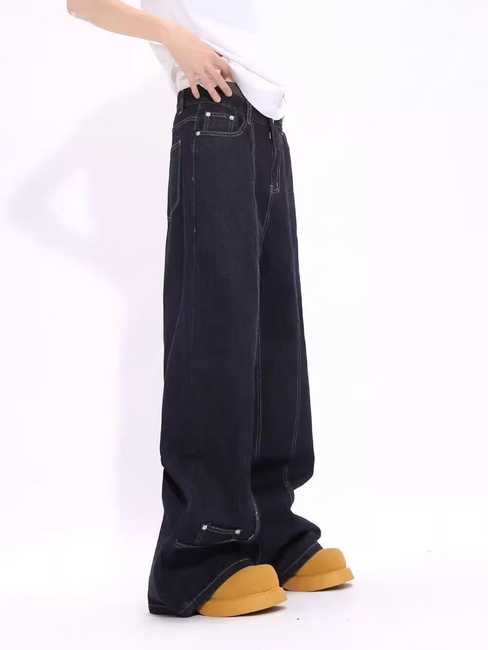 Jeans de Mezclilla Lavada Americano Retro Desgastado de Pierna Recta para Hombre, Diseño de Marca de Moda High Street, Pantalones Largos Holgados de Pierna Ancha para Mujer
