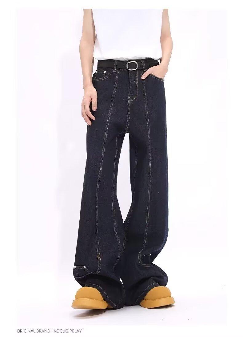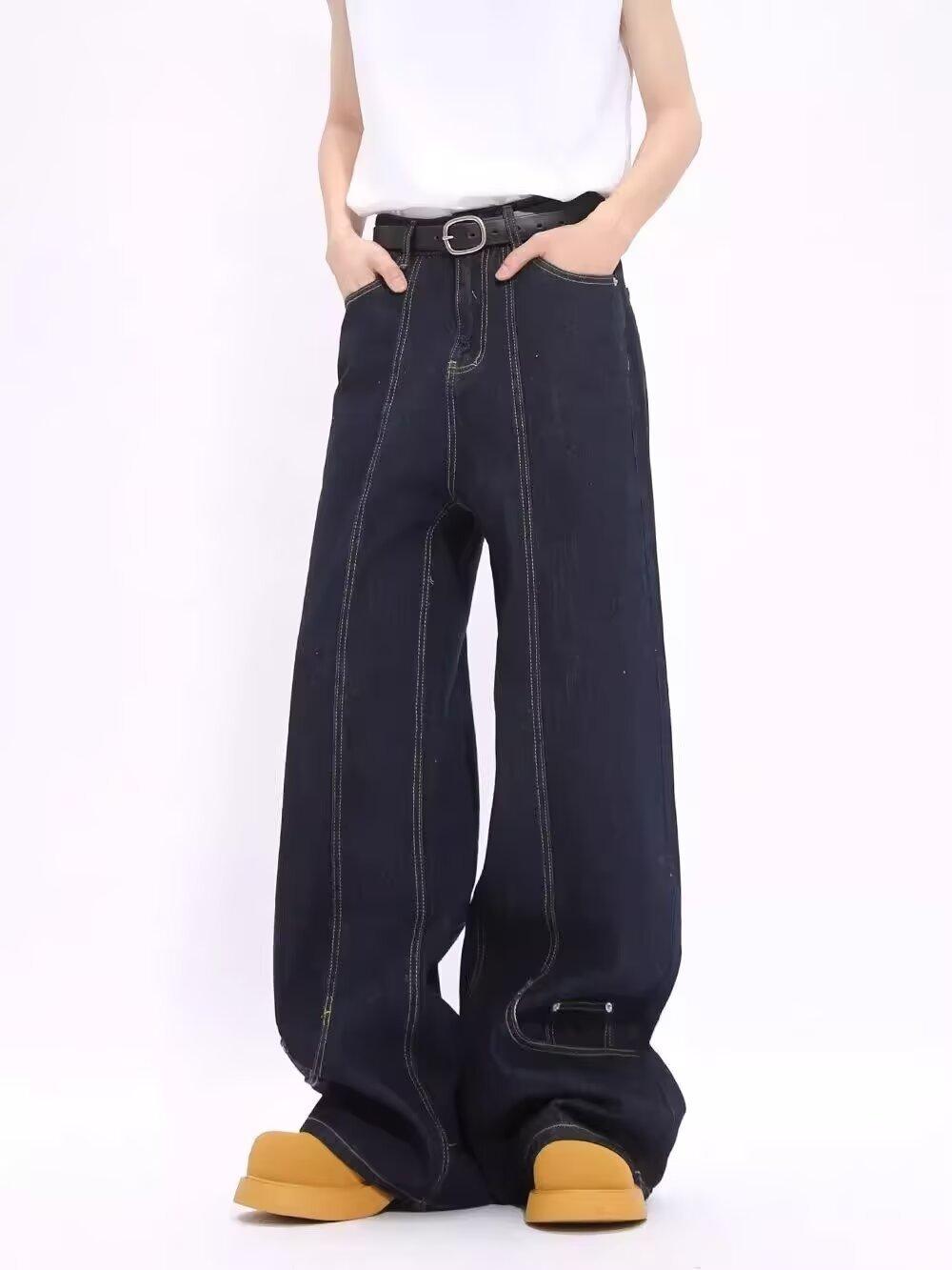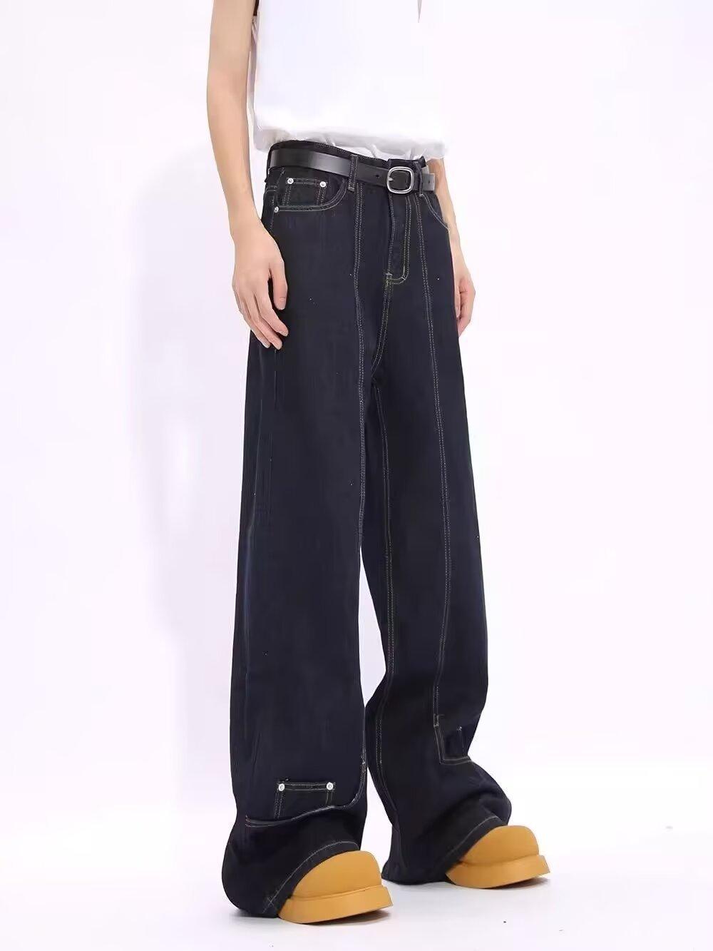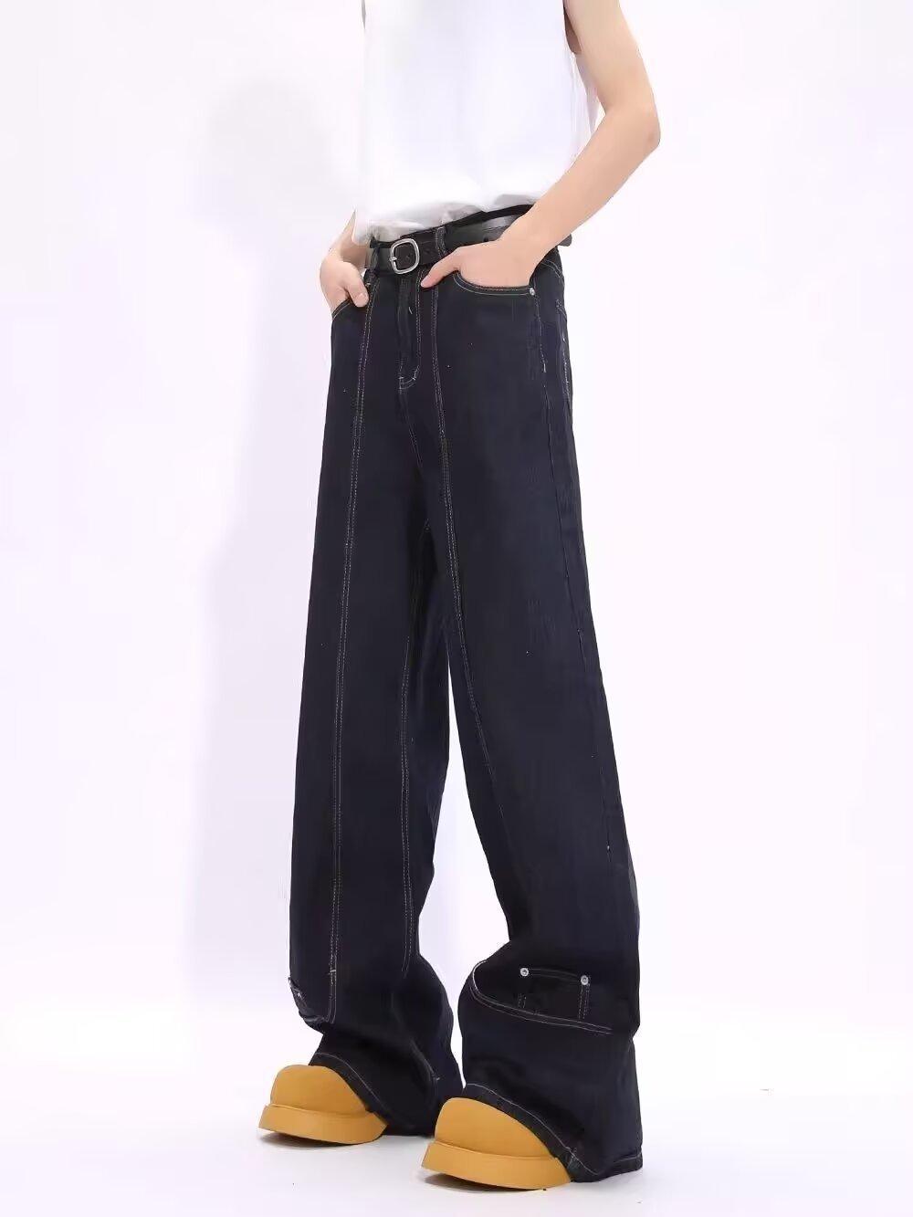 Jeans de Mezclilla Lavada Americano Retro Desgastado de Pierna Recta para Hombre, Diseño de Marca de Moda High Street, Pantalones Largos Holgados de Pierna Ancha para Mujer